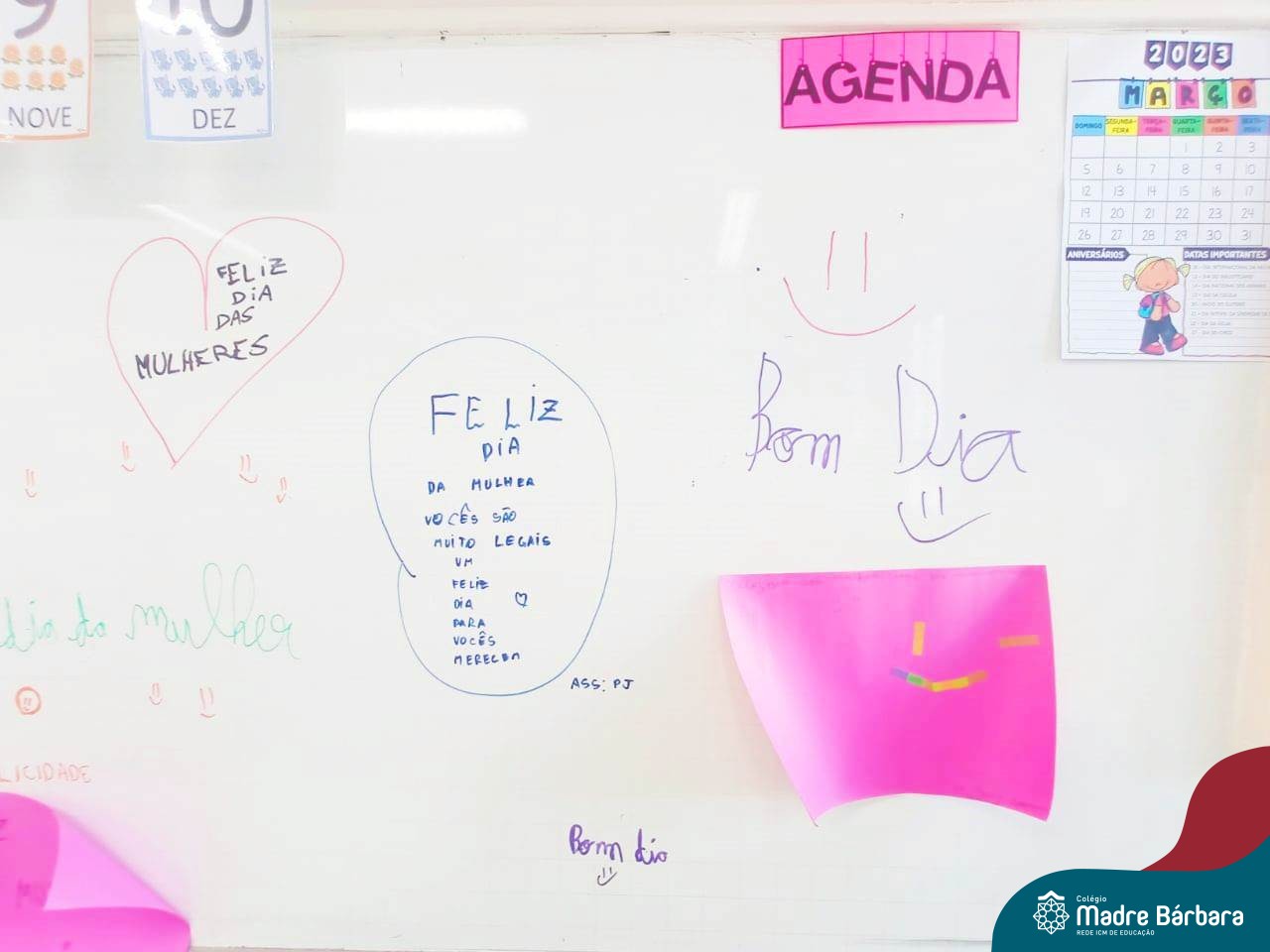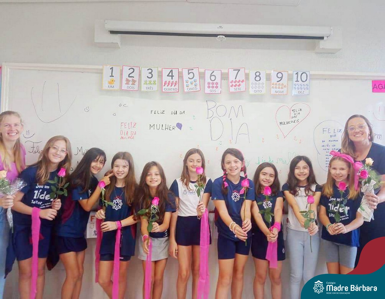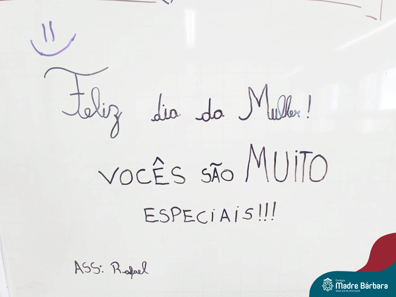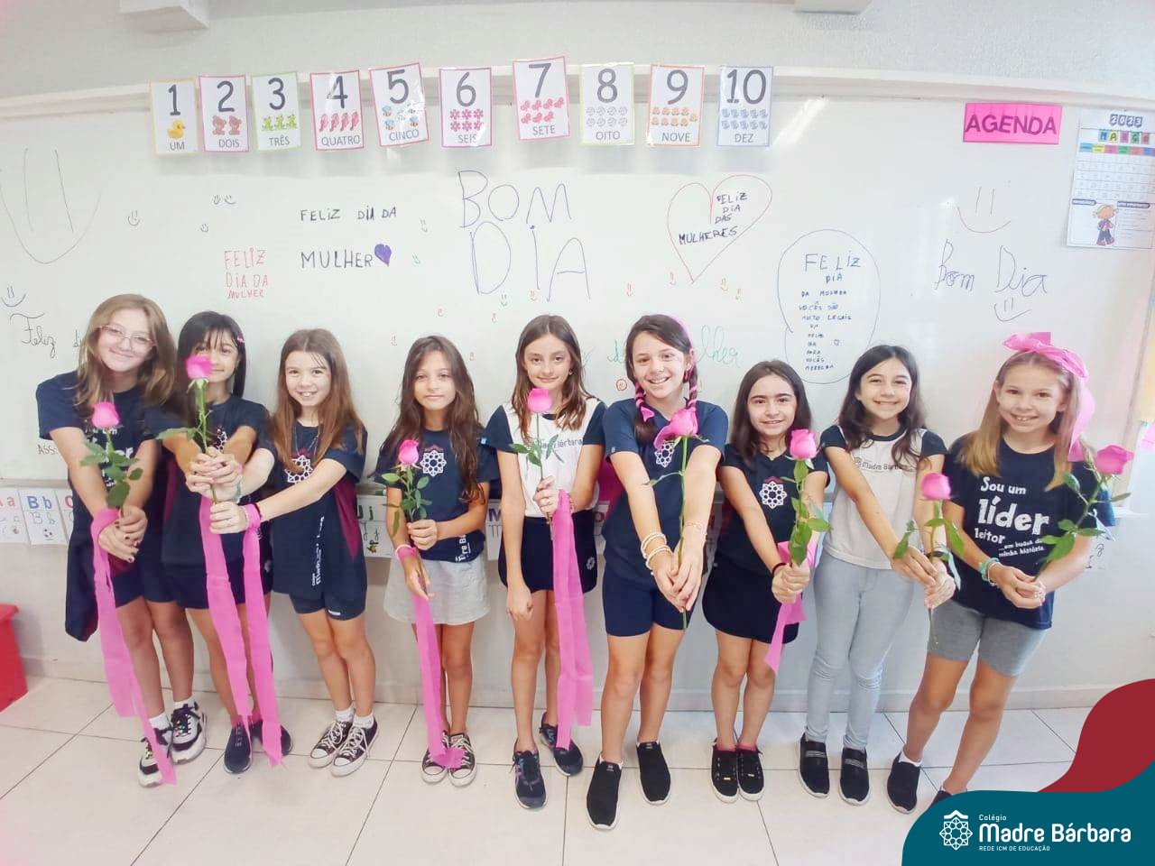 Teve turma que marcou o Dia Internacional da Mulher! Os meninos do Terceirão, surpreenderam já pela manhã, na sala dos professores, quando leram poema para as professoras e entregaram um mimo. Após, as mulheres da turma também receberam homenagem em forma de cartão com uma mensagem personalizada e um doce! Parabéns meninos, com certeza fizeram o dia delas ainda mais especial. Na turma 52, do 5º ano, da professora Patrícia Krug, os meninos são mais novos, mas cheios de atitude. A turma está estudando as mulheres que inspiram e que cada uma deve ser a primeira mulher que inspira ela mesma e eles surpreenderam as colegas com rosas e homenagens no quadro.