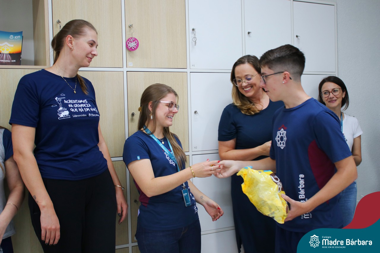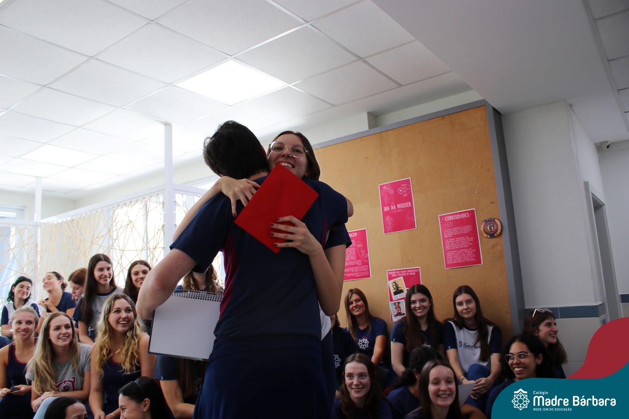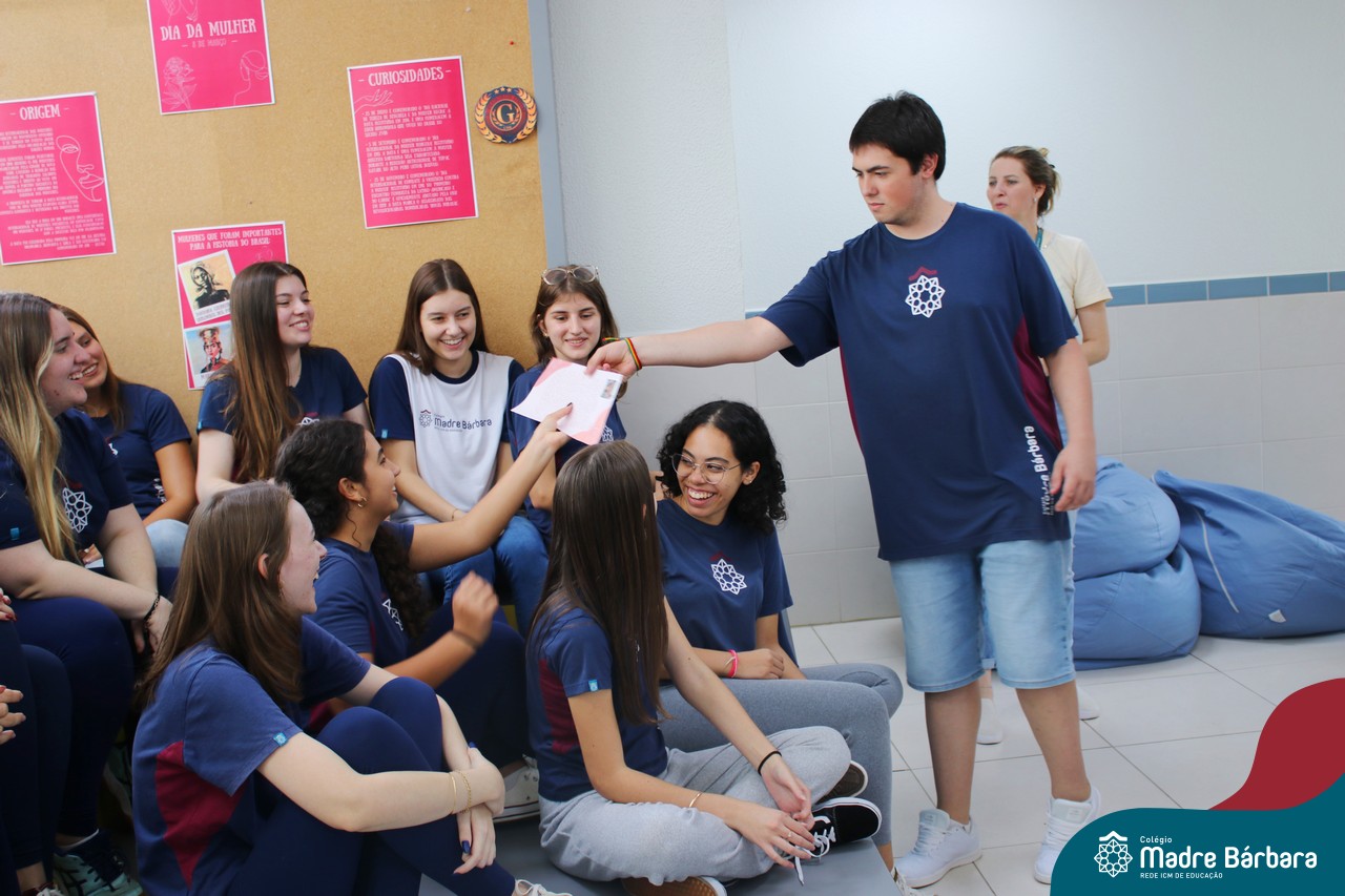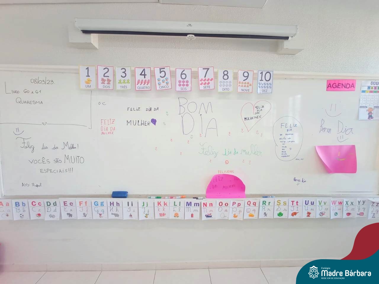 Teve turma que marcou o Dia Internacional da Mulher! Os meninos do Terceirão, surpreenderam já pela manhã, na sala dos professores, quando leram poema para as professoras e entregaram um mimo. Após, as mulheres da turma também receberam homenagem em forma de cartão com uma mensagem personalizada e um doce! Parabéns meninos, com certeza fizeram o dia delas ainda mais especial. Na turma 52, do 5º ano, da professora Patrícia Krug, os meninos são mais novos, mas cheios de atitude. A turma está estudando as mulheres que inspiram e que cada uma deve ser a primeira mulher que inspira ela mesma e eles surpreenderam as colegas com rosas e homenagens no quadro.