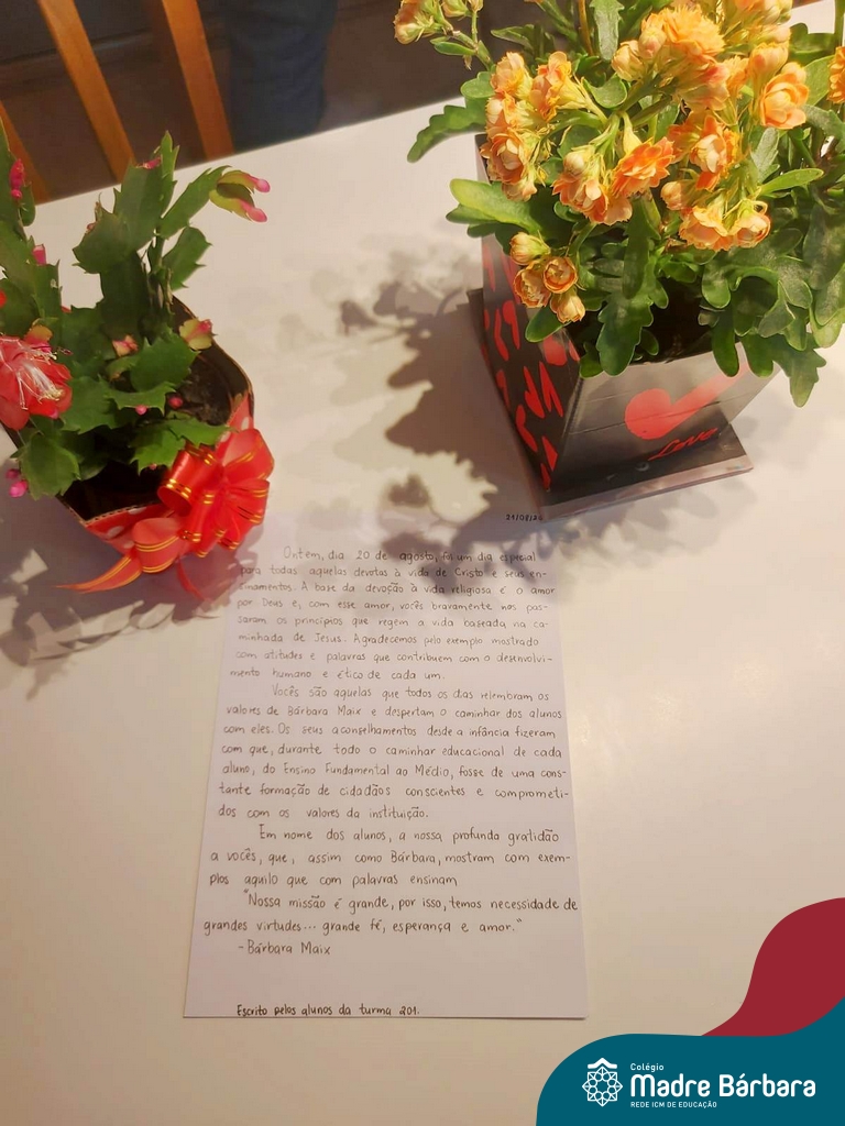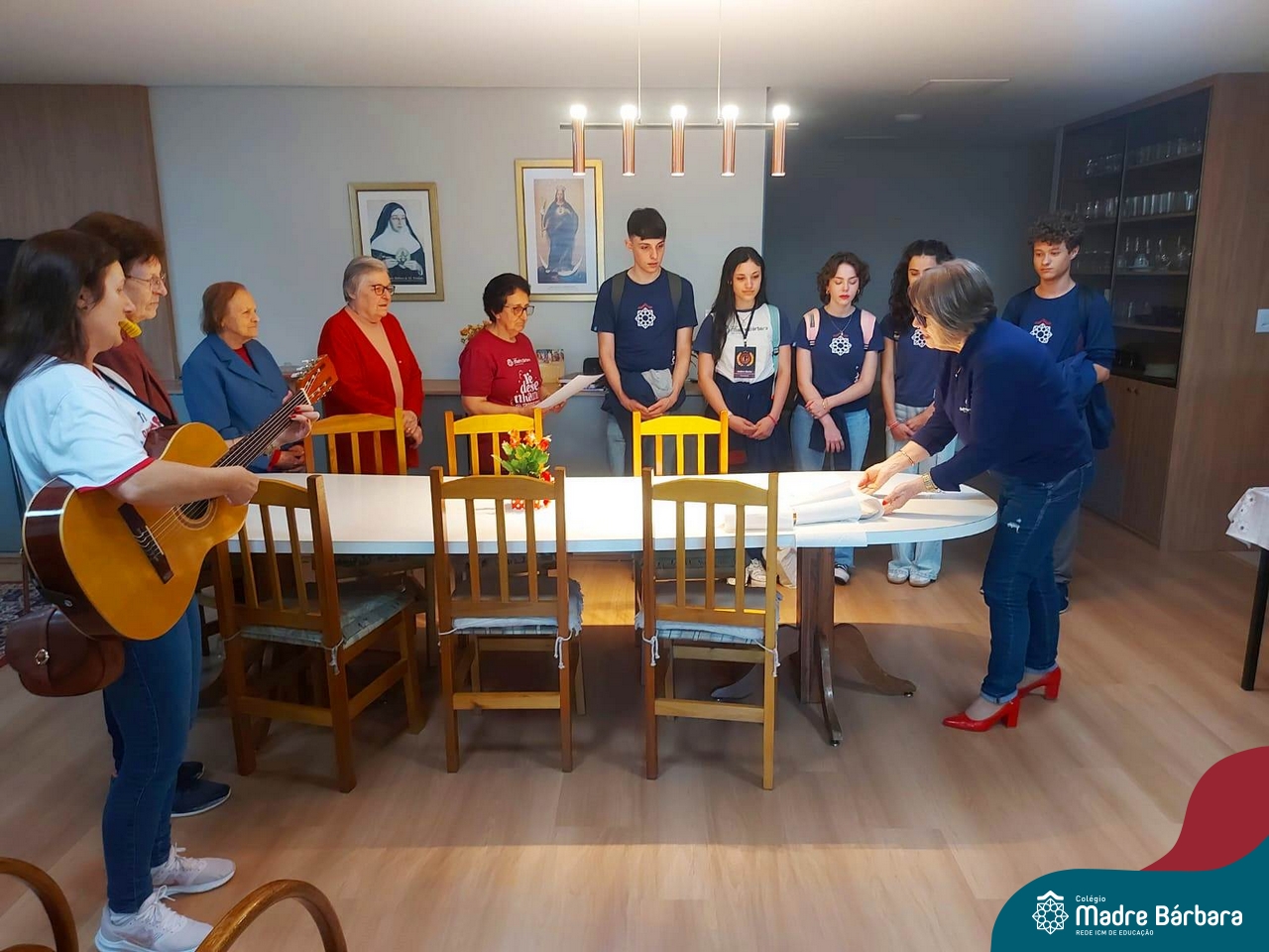As Irmãs do Colégio Madre Bárbara – Rede ICM receberam uma serenata direto em casa, com direito a música e muito carinho da equipe diretiva, Pastoral Escolar e de estudantes do Grêmio Estudantil (Gembar). O encontro especial, foi pelo Dia da Vida Consagrada, comemorado no domingo, 20 de agosto. Parabéns Irmãs, temos muito orgulho e admiração por poder conviver com vocês e por dedicarem seus dons através do trabalho realizado no Colégio Madre Bárbara – Rede ICM. Agradecemos a convivência, o carinho e tantos aprendizados!