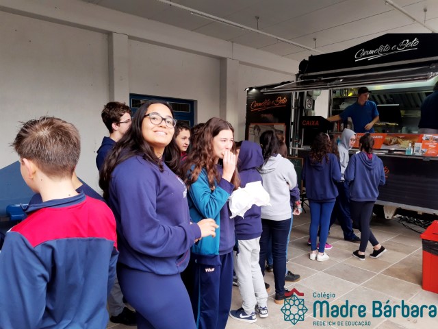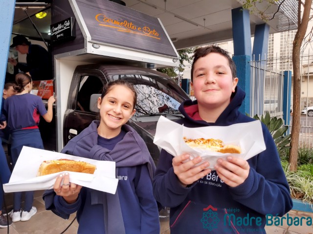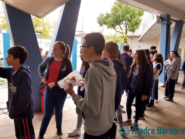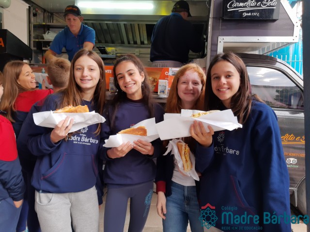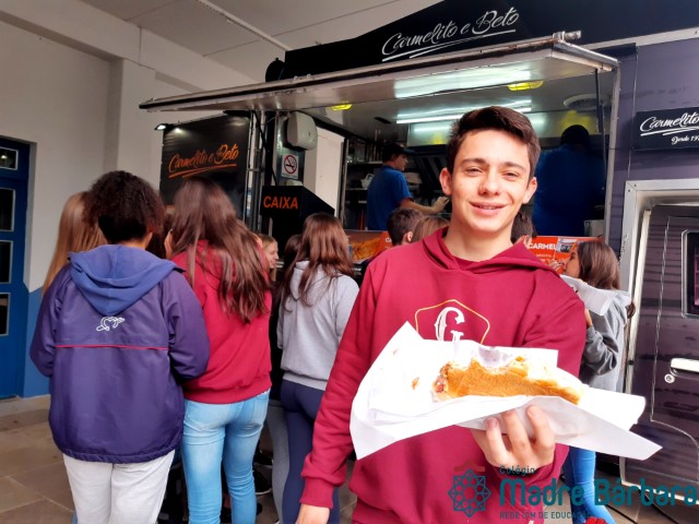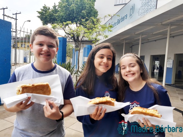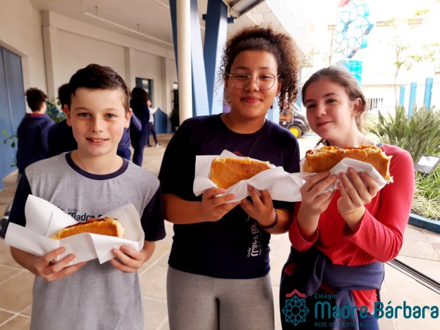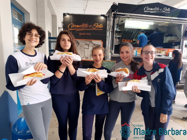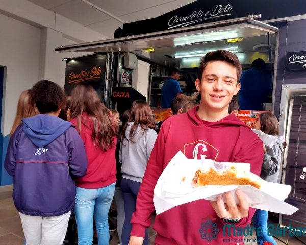 Nessa segunda-feira (12.08) o Grêmio Estudantil do Colégio Madre Bárbara – Rede ICM (Gembar) ofereceu para os jovens do 6º ano do Ensino Fundamental ao 3º ano do Ensino Médio o lanche do Cachorrão Carmelito e Beto em homenagem ao Dia do Estudante. Os jovens adoraram o recreio diferenciado.
