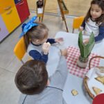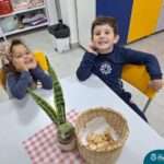 Nesta quarta-feira (30.04) ocorreu um momento muito especial preparado com carinho pelas crianças: a Hora do Chá! Cada detalhe foi pensado por elas, desde a confecção das bolachas até a organização do ambiente. As bolachas foram feitas à mão, em formas geométricas divertidas, como: círculos, quadrados e triângulos. As crianças colocaram a mão na massa, mediram os ingredientes e moldaram cada biscoito com atenção e alegria.