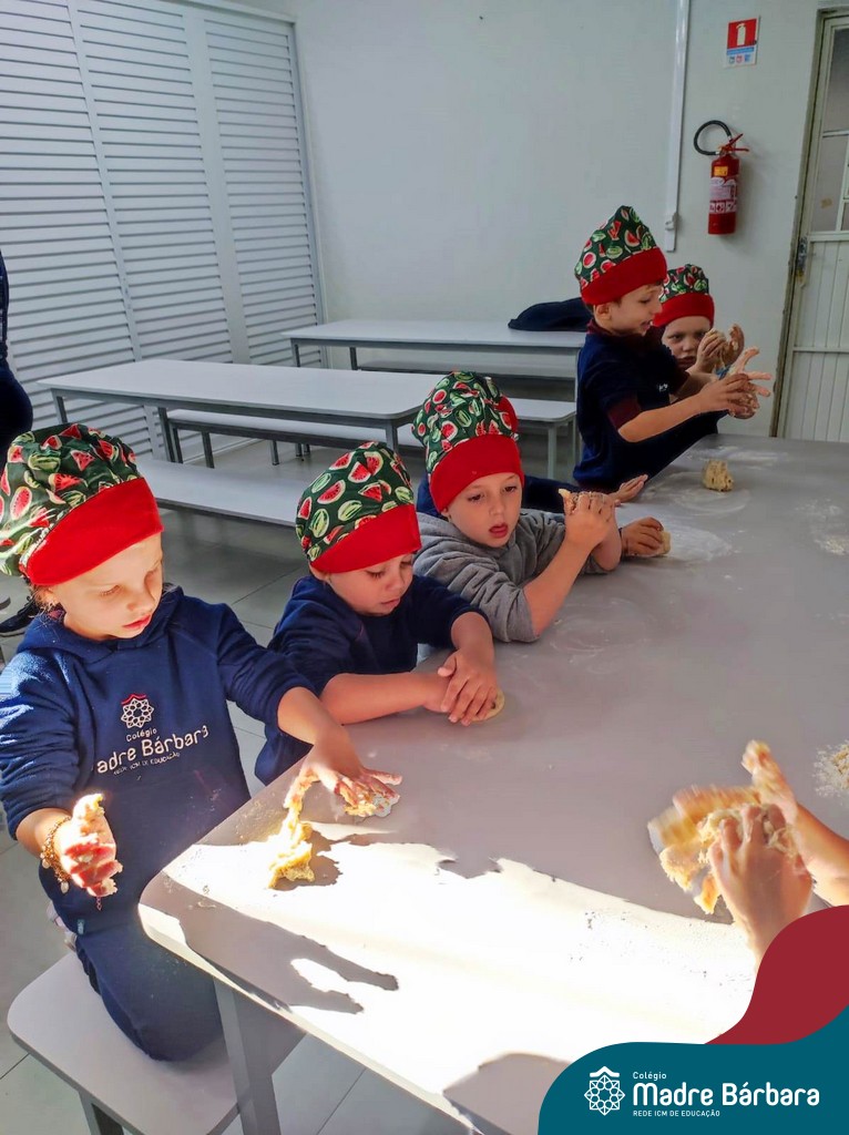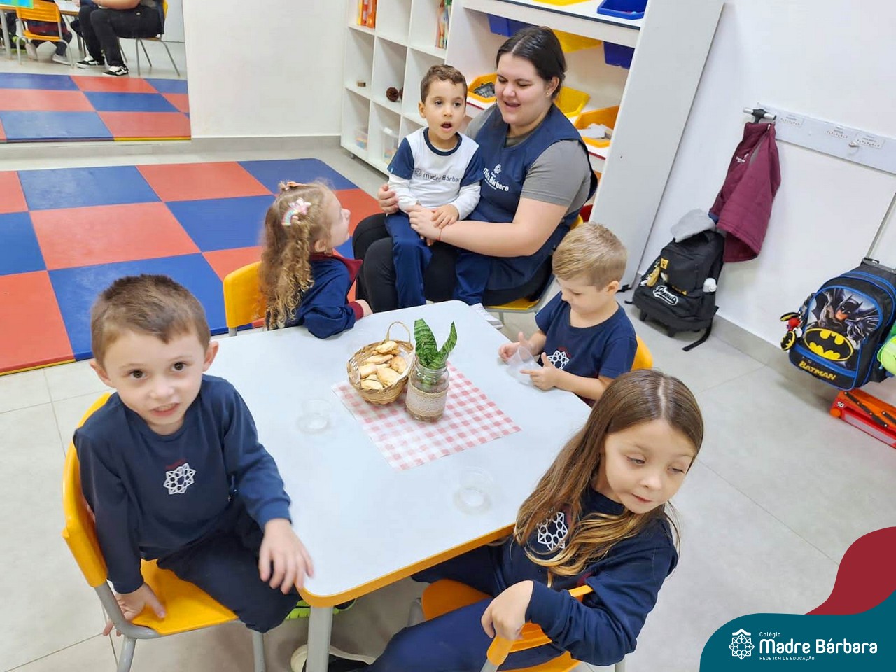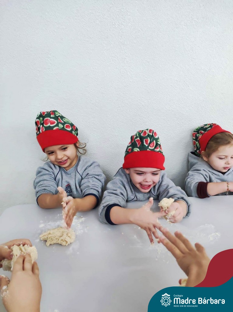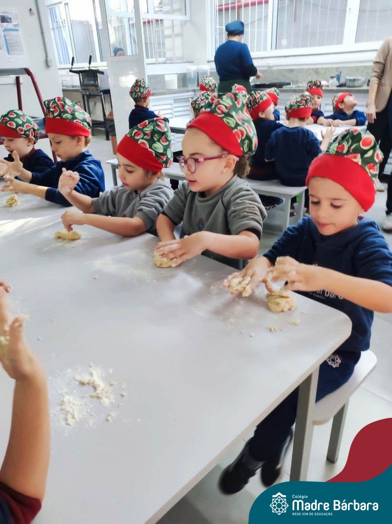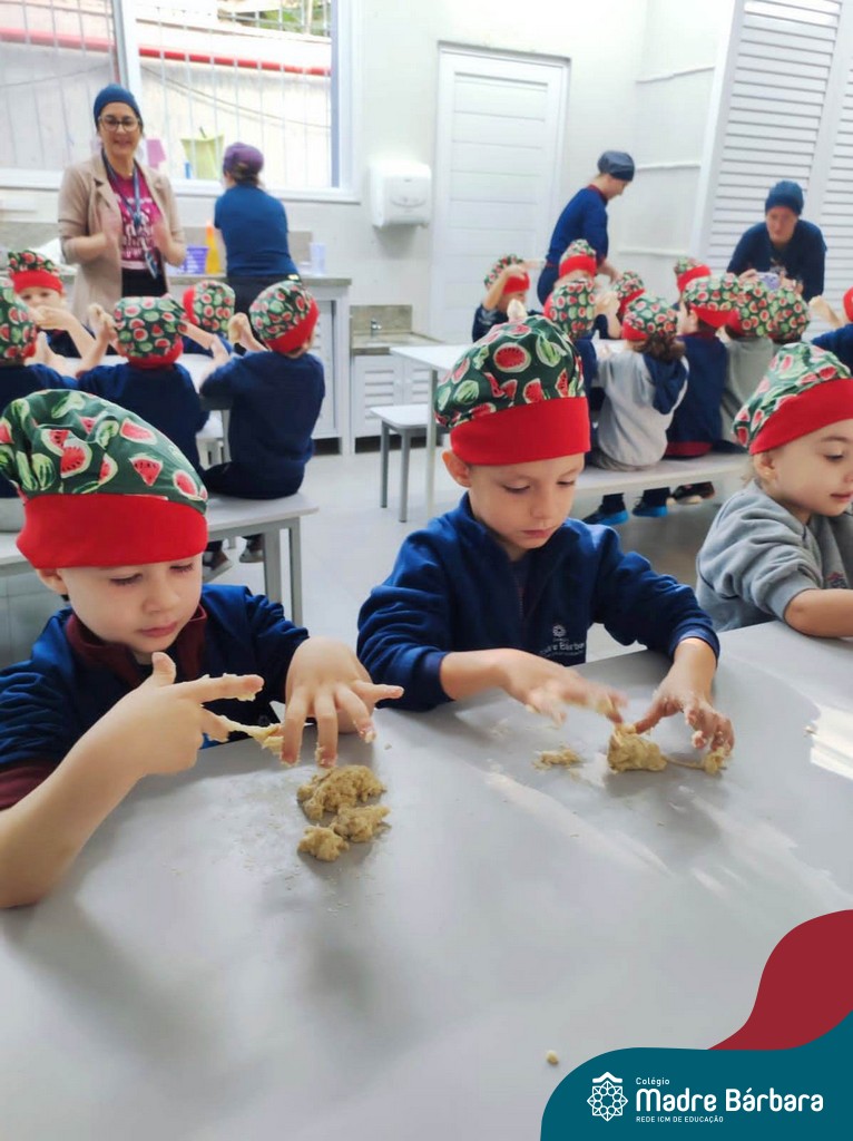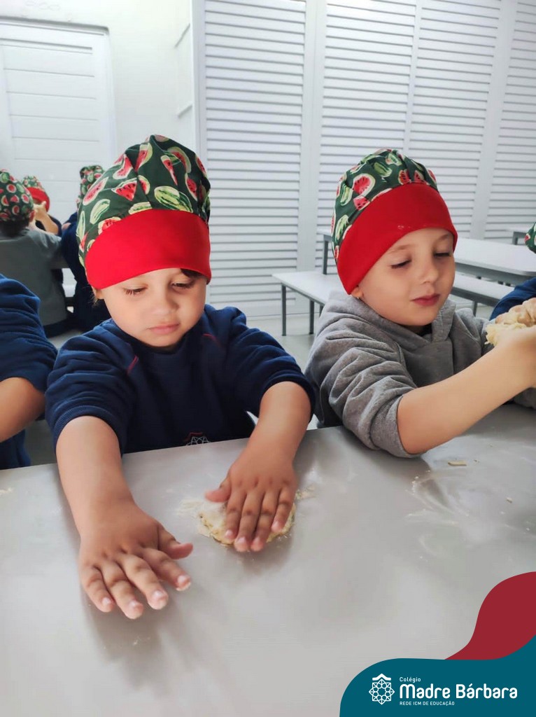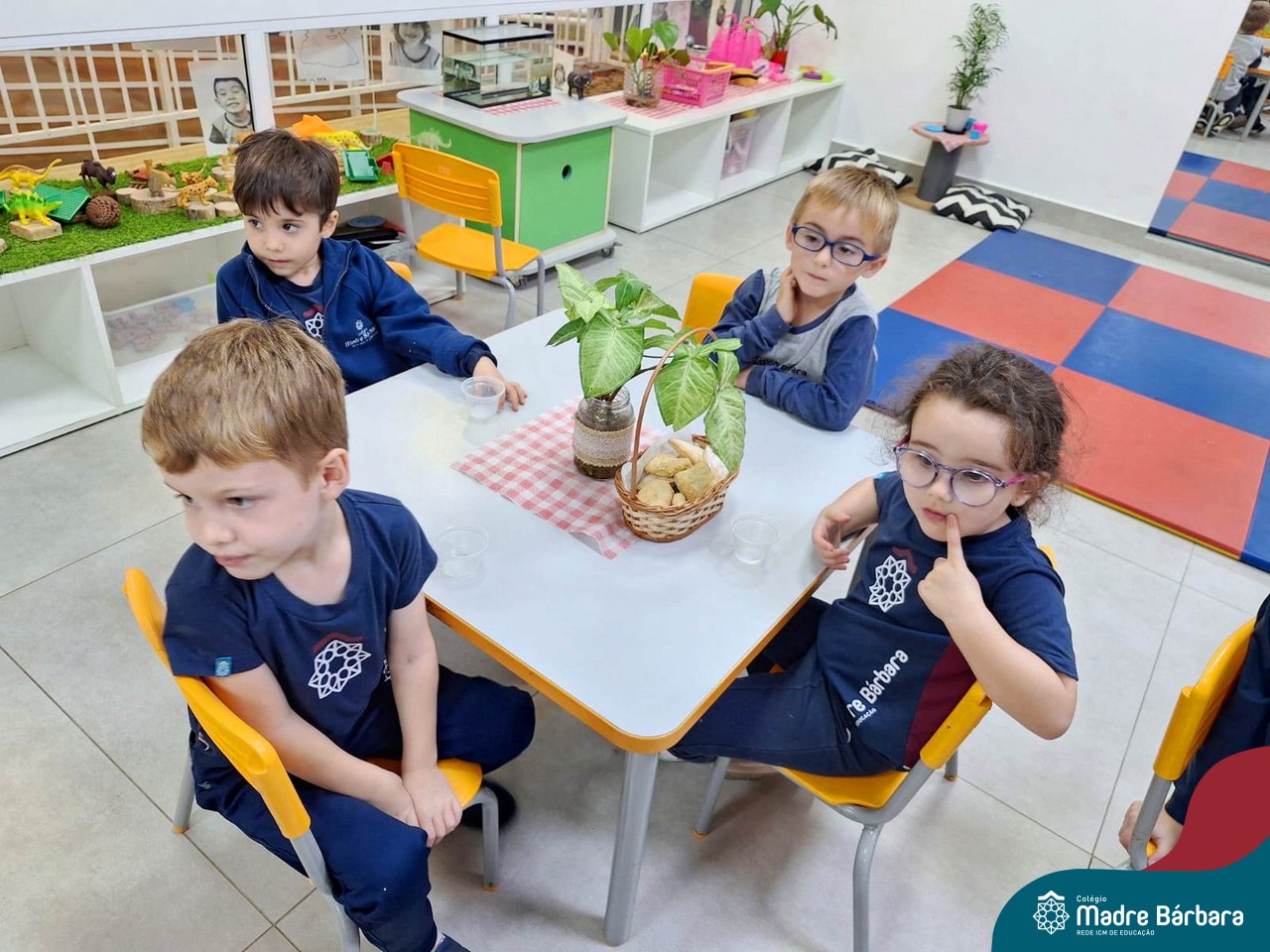 Nesta quarta-feira (30.04) ocorreu um momento muito especial preparado com carinho pelas crianças: a Hora do Chá! Cada detalhe foi pensado por elas, desde a confecção das bolachas até a organização do ambiente. As bolachas foram feitas à mão, em formas geométricas divertidas, como: círculos, quadrados e triângulos. As crianças colocaram a mão na massa, mediram os ingredientes e moldaram cada biscoito com atenção e alegria.