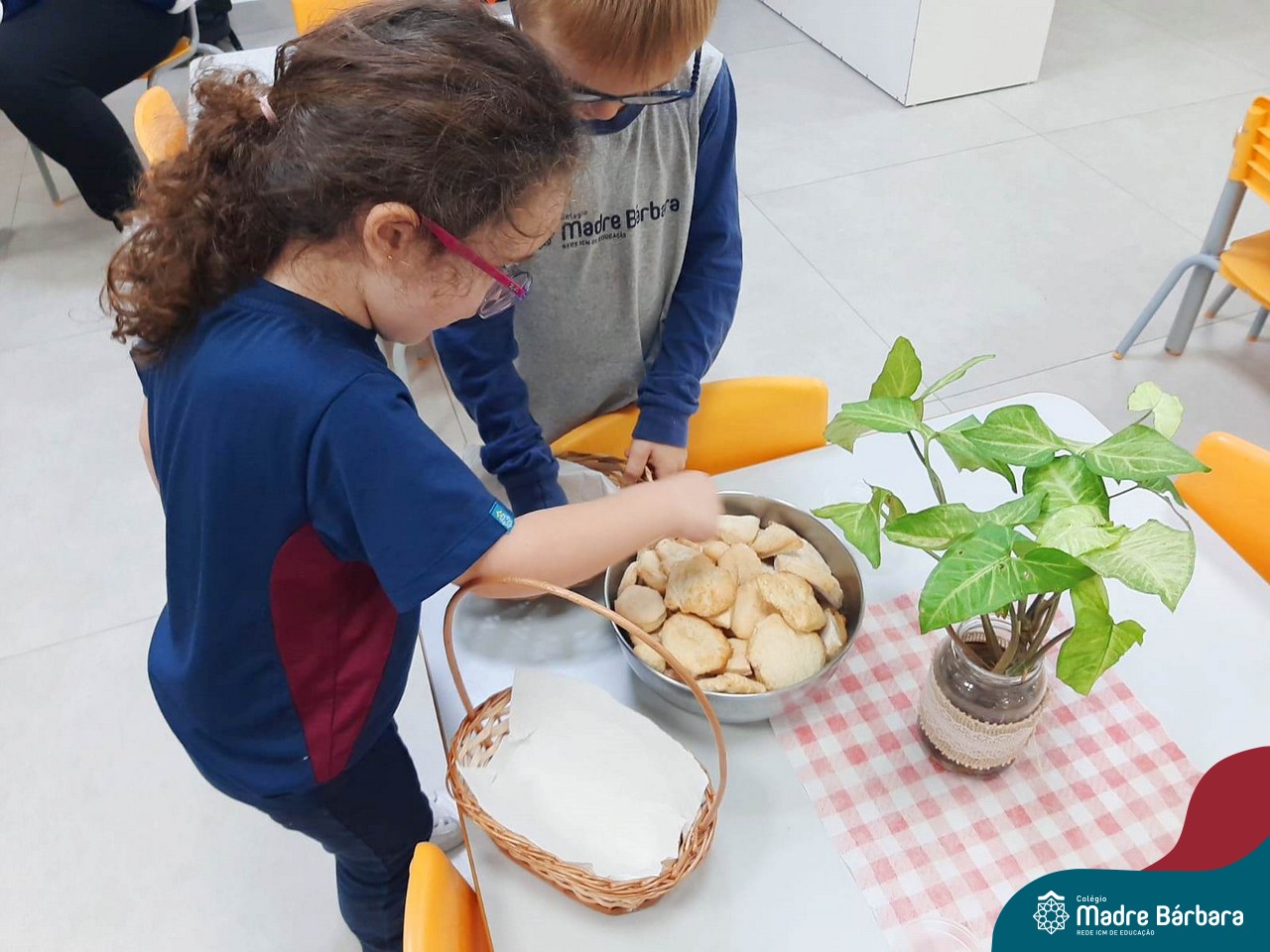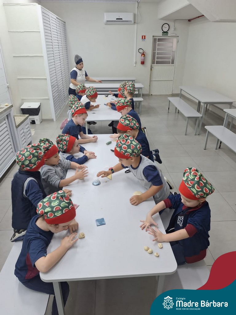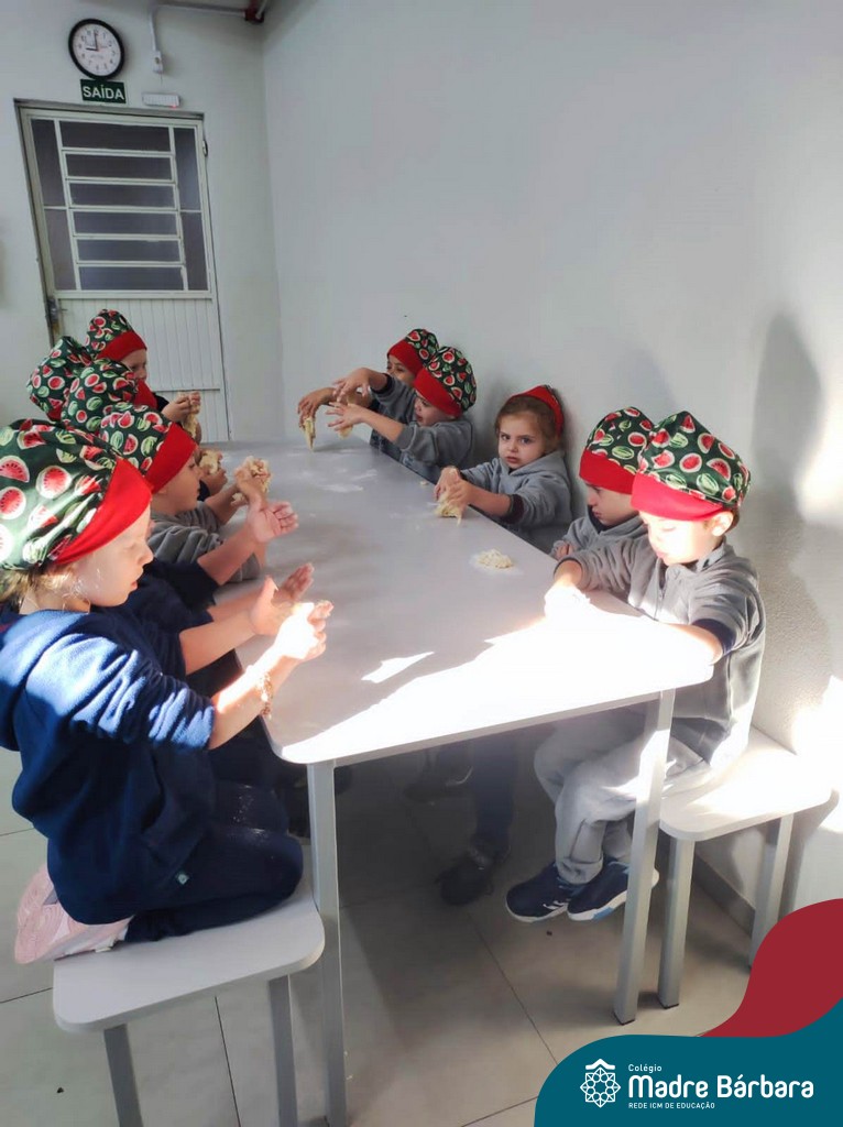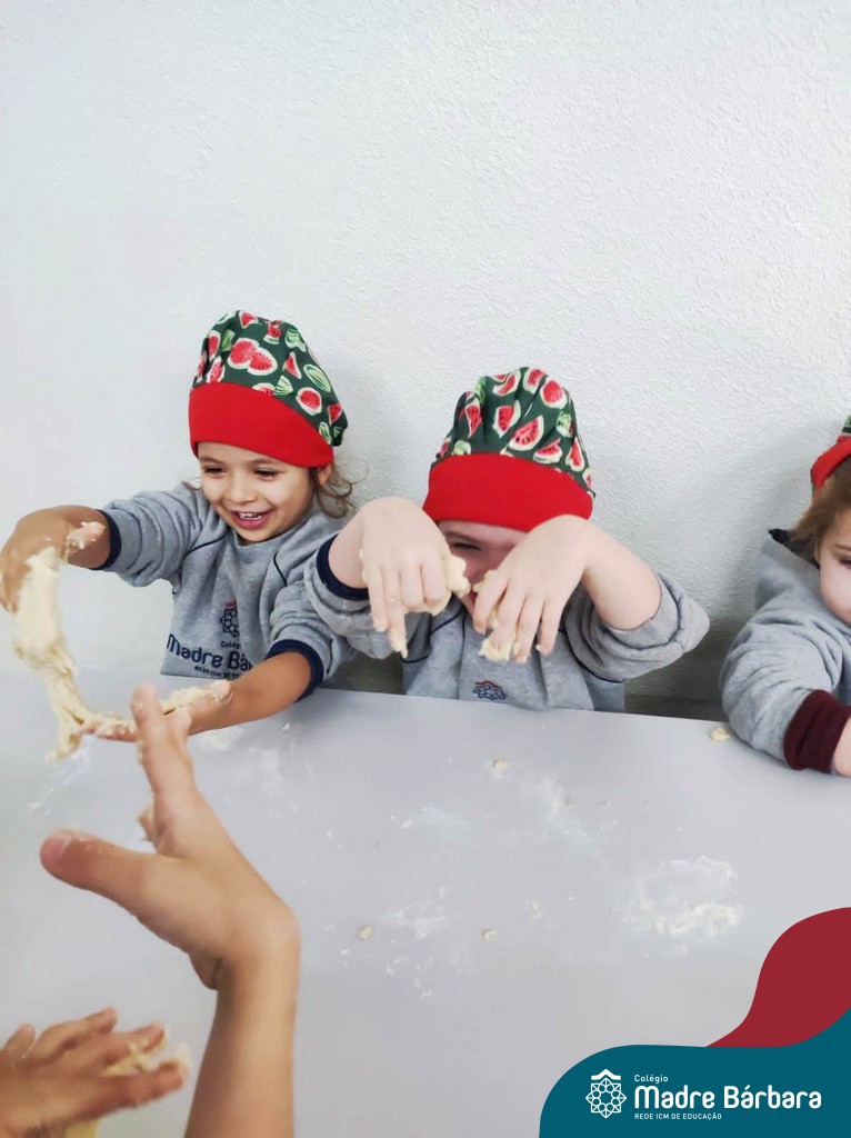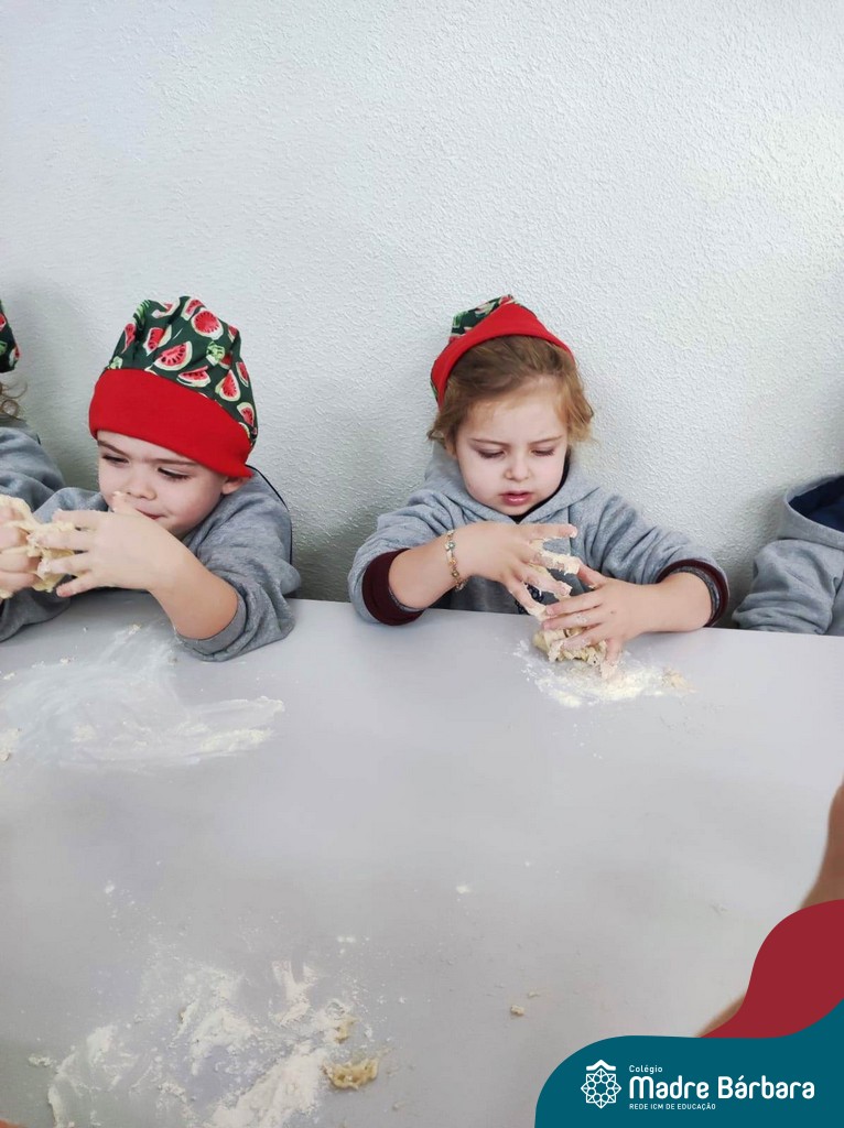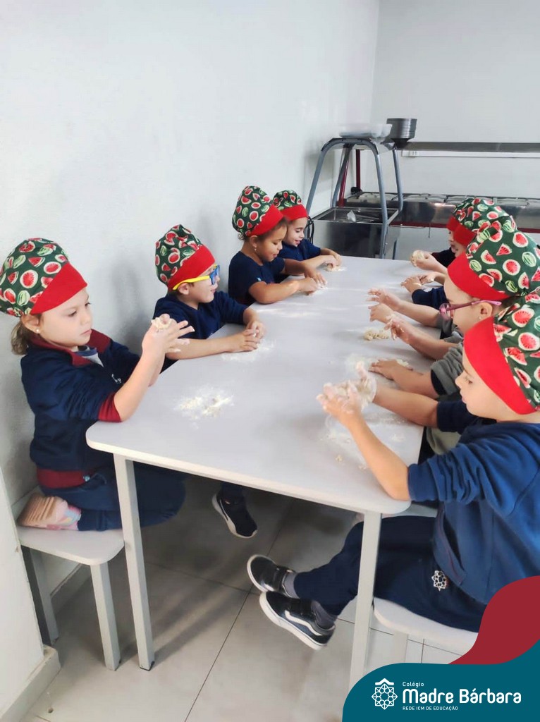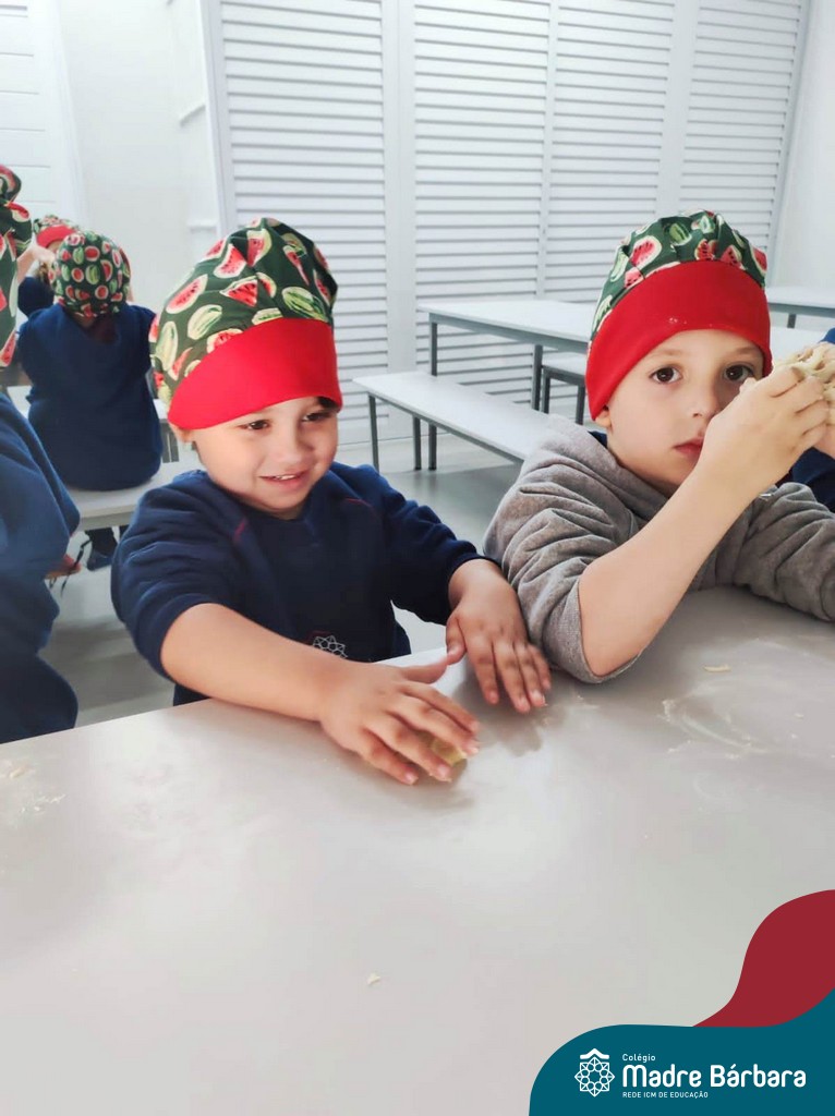 Nesta quarta-feira (30.04) ocorreu um momento muito especial preparado com carinho pelas crianças: a Hora do Chá! Cada detalhe foi pensado por elas, desde a confecção das bolachas até a organização do ambiente. As bolachas foram feitas à mão, em formas geométricas divertidas, como: círculos, quadrados e triângulos. As crianças colocaram a mão na massa, mediram os ingredientes e moldaram cada biscoito com atenção e alegria.
