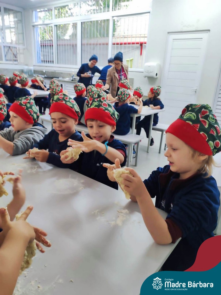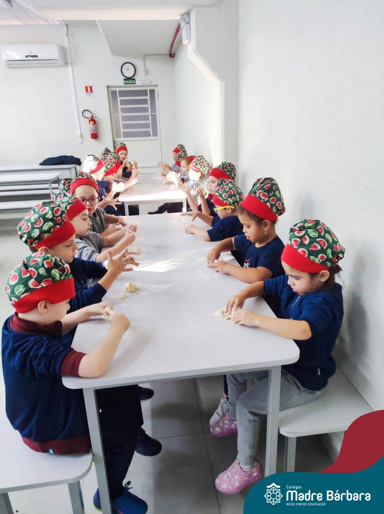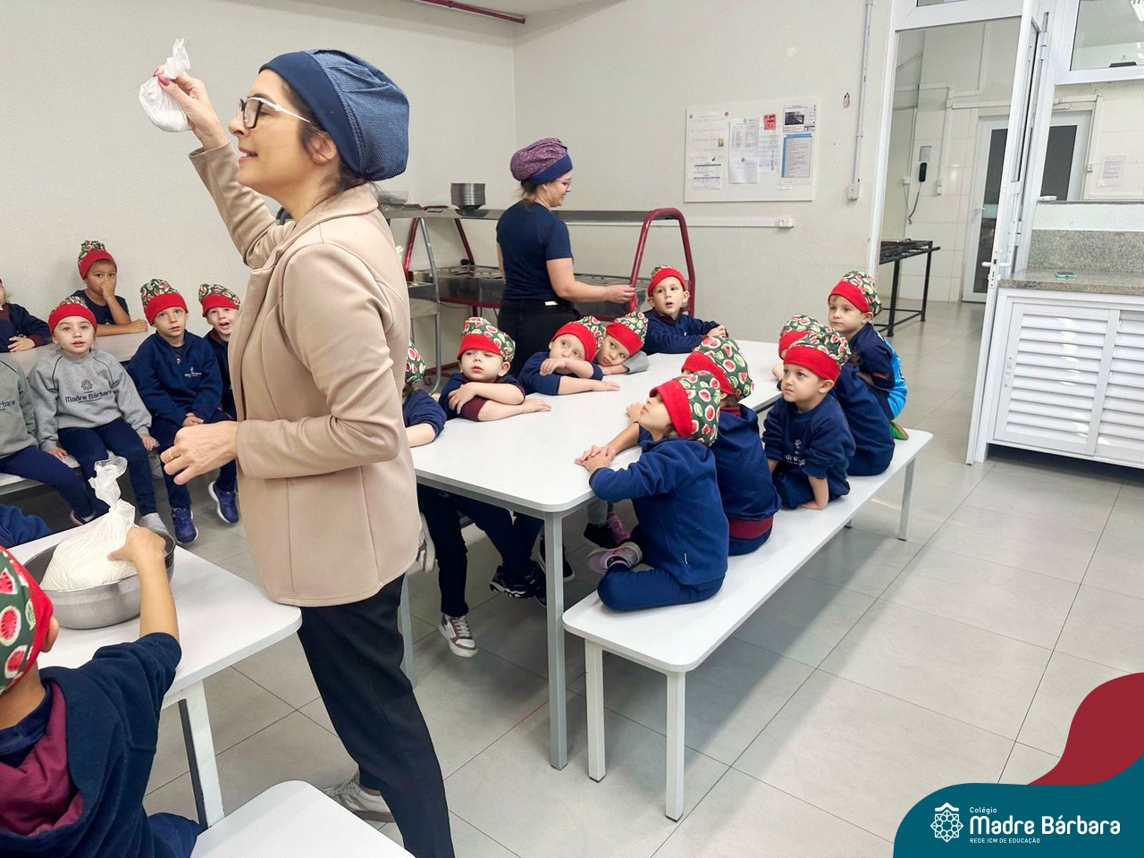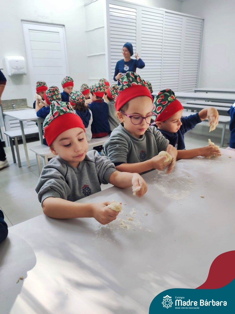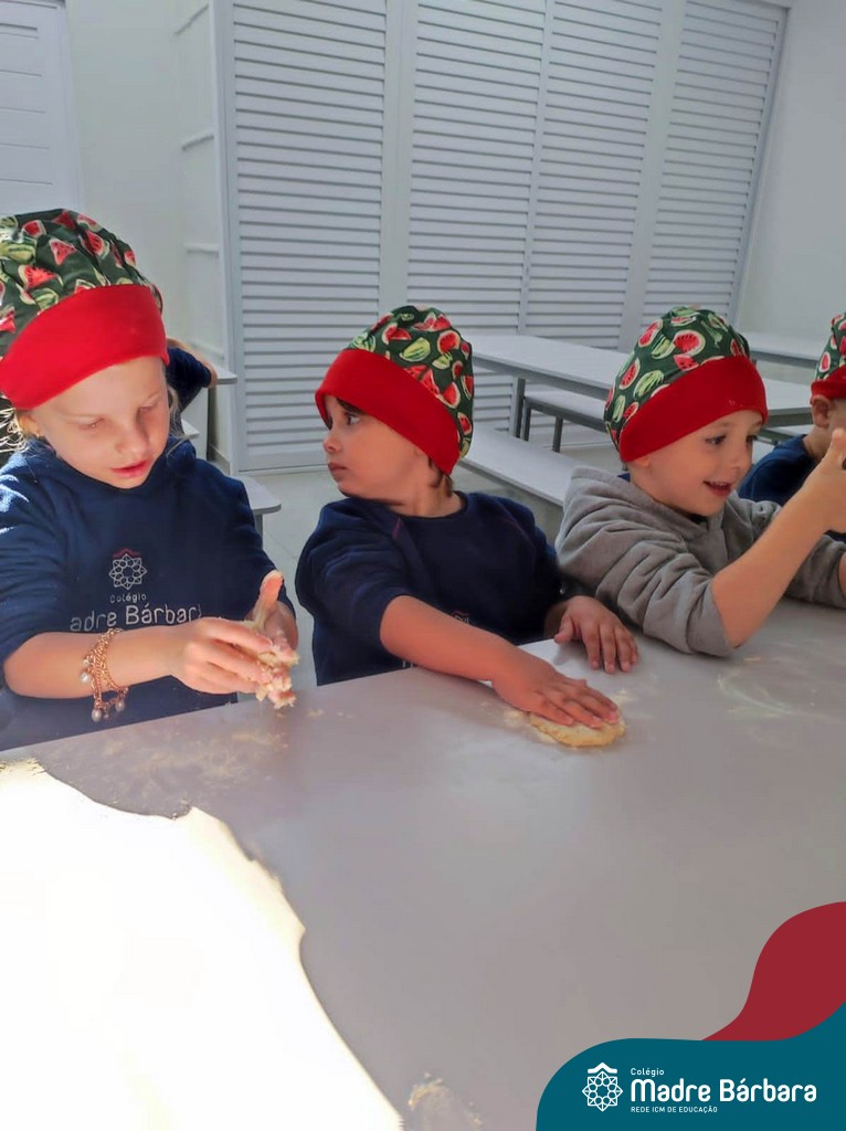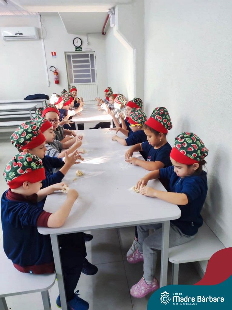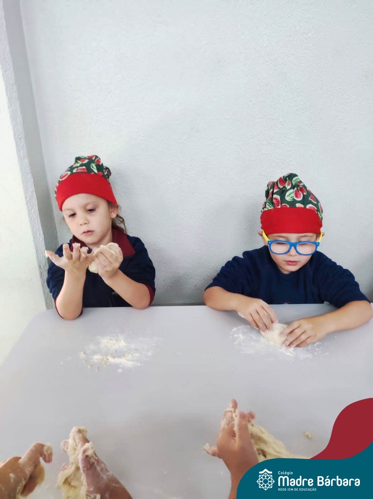 Nesta quarta-feira (30.04) ocorreu um momento muito especial preparado com carinho pelas crianças: a Hora do Chá! Cada detalhe foi pensado por elas, desde a confecção das bolachas até a organização do ambiente. As bolachas foram feitas à mão, em formas geométricas divertidas, como: círculos, quadrados e triângulos. As crianças colocaram a mão na massa, mediram os ingredientes e moldaram cada biscoito com atenção e alegria.
