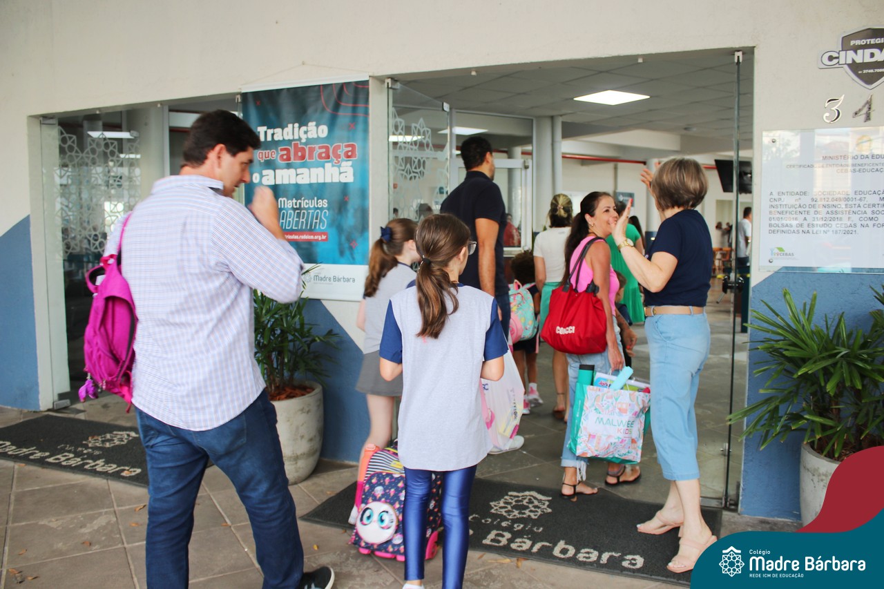 Foi dia de alegria no Colégio Madre Bárbara – Rede ICM! Dia de ver os corredores, salas e pátios cheios de crianças e adolescentes novamente. O início do ano letivo se torna um dos dias mais felizes para nossa equipe! Que bom conhecer, ver e rever vocês, crianças e estudantes! Foram realizadas diversas atividades de acolhida, de adaptação e entrega de mimos do Colégio. Além disso, o nosso Grêmio Estudantil (Gembar) também iniciou suas atividades, levando uma lembrança para os estudantes. Que o ano letivo de 2024 seja maravilhoso! Bem-vinda comunidade escolar!