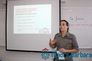 Nessa quarta-feira (10.04) iniciaram nas turmas 51 e 52 do Colégio Madre Bárbara – Rede ICM as aulas do Programa Educacional de Resistência às Drogas (Proerd) que consiste num esforço cooperativo estabelecido entre a Polícia Militar, a Escola e a Família. O Programa busca ensinar os estudantes sobre habilidades para a tomada de boas decisões, para ajudá-los a conduzir suas vidas de maneira segura e saudável. O objetivo é que possam construir um mundo no qual jovens de todos os lugares estejam capacitados para respeitar os outros e para escolherem conduzir suas vidas livre do uso de drogas, da violência e de outros comportamentos perigosos. Os encontros serão semanais e ministrados pela soldada Juliana.