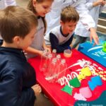 As crianças dos Primeiros Anos vivenciaram o despertar do espírito científico com as experiências práticas dos alunos dos 3ºs anos, com uma boa pitada de ludicidade, fundamental nessa fase. Personagens como a bruxa e o unicórnio estavam presentes e estimularam ainda mais o gosto pela ciência na vida das crianças. As experiências que encantaram as crianças foram: areia movediça; amoeba magnética; água furiosa; foguete espacial; arco-íris; água que muda de cor e poção efervescente.