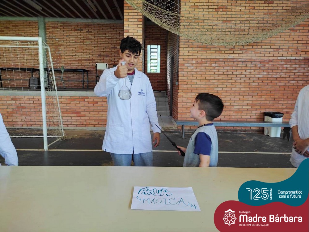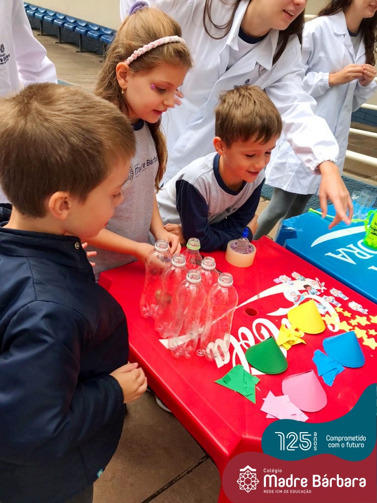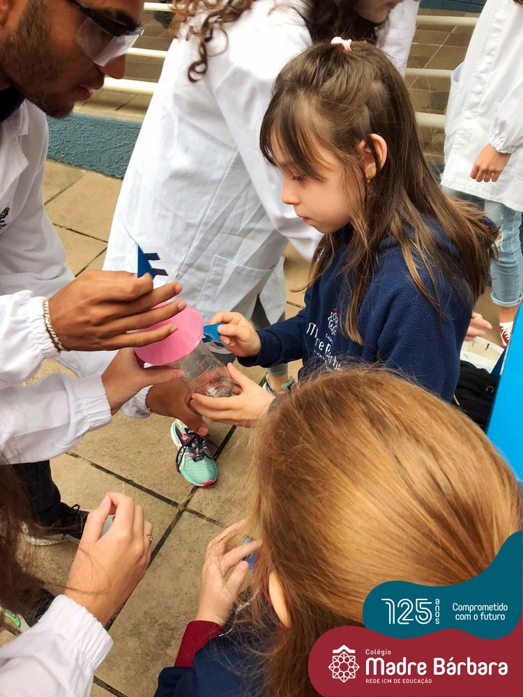 As crianças dos Primeiros Anos vivenciaram o despertar do espírito científico com as experiências práticas dos alunos dos 3ºs anos, com uma boa pitada de ludicidade, fundamental nessa fase. Personagens como a bruxa e o unicórnio estavam presentes e estimularam ainda mais o gosto pela ciência na vida das crianças. As experiências que encantaram as crianças foram: areia movediça; amoeba magnética; água furiosa; foguete espacial; arco-íris; água que muda de cor e poção efervescente.