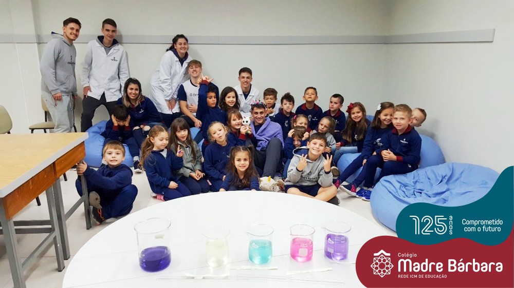 Na última semana, as turmas de 1ª Ano do Ensino Fundamental – Anos Iniciais e 3º anos do Ensino Médio participaram de atividades experimentais integradoras. As atividades foram planejadas pelo professor de Química, Aliar Anacleto Jung, em parceria com as professoras Luciane Abreu da turma 11, Marília Junqueira Marmitt da turma 12, Mara M. B. Becker da turma 13, Patrícia da Costa da turma 14 e Andresa Degasperi da turma 15.