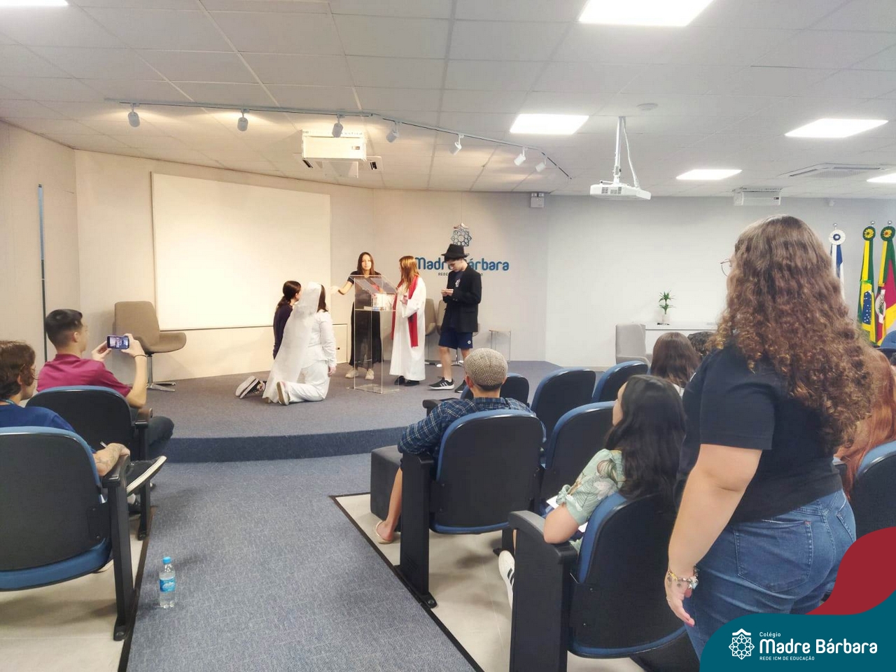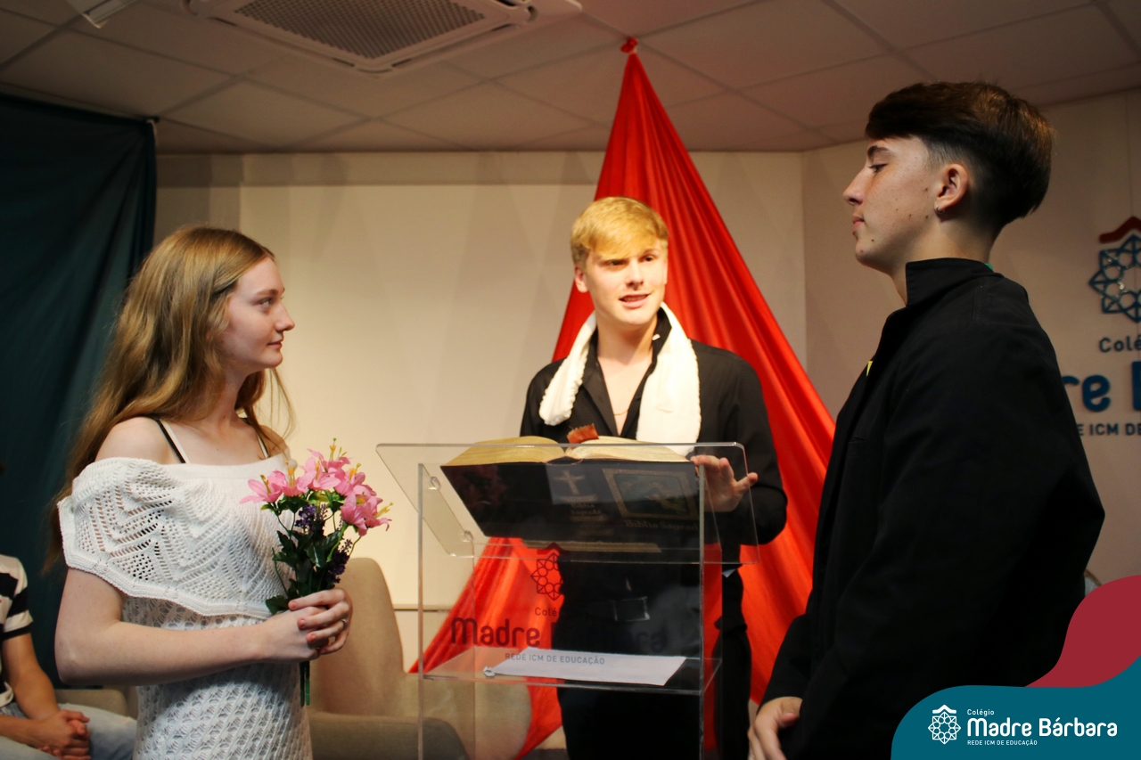 Os estudantes das turmas 91 e 92, a partir da leitura da obra “A megera domada” de Shakespeare, adaptaram uma das cenas para peça teatral. O trabalho foi realizado na disciplina de língua portuguesa, ministrada pela prof. Francieli Winck.