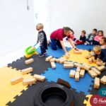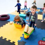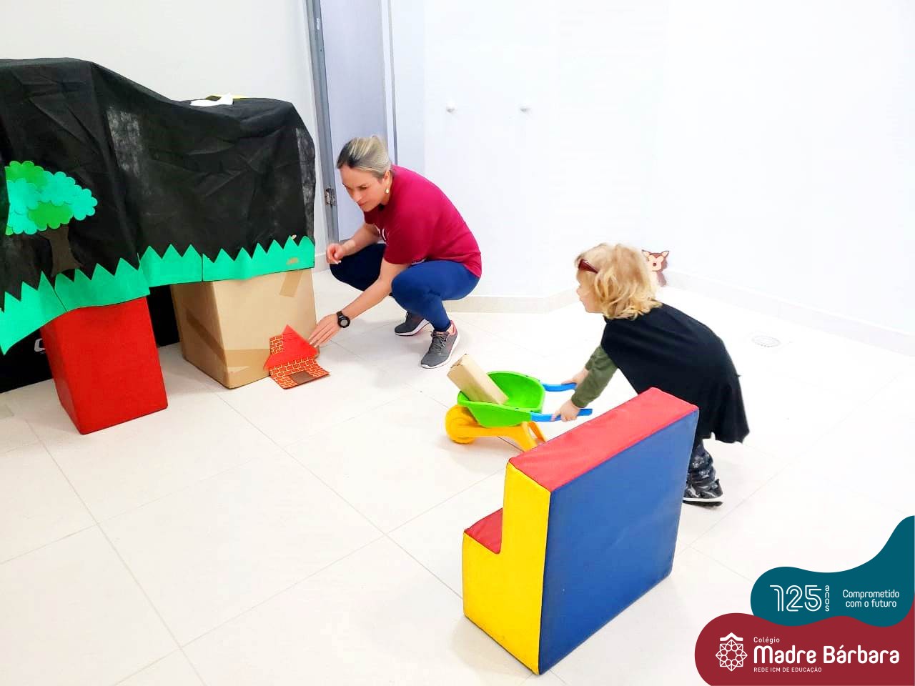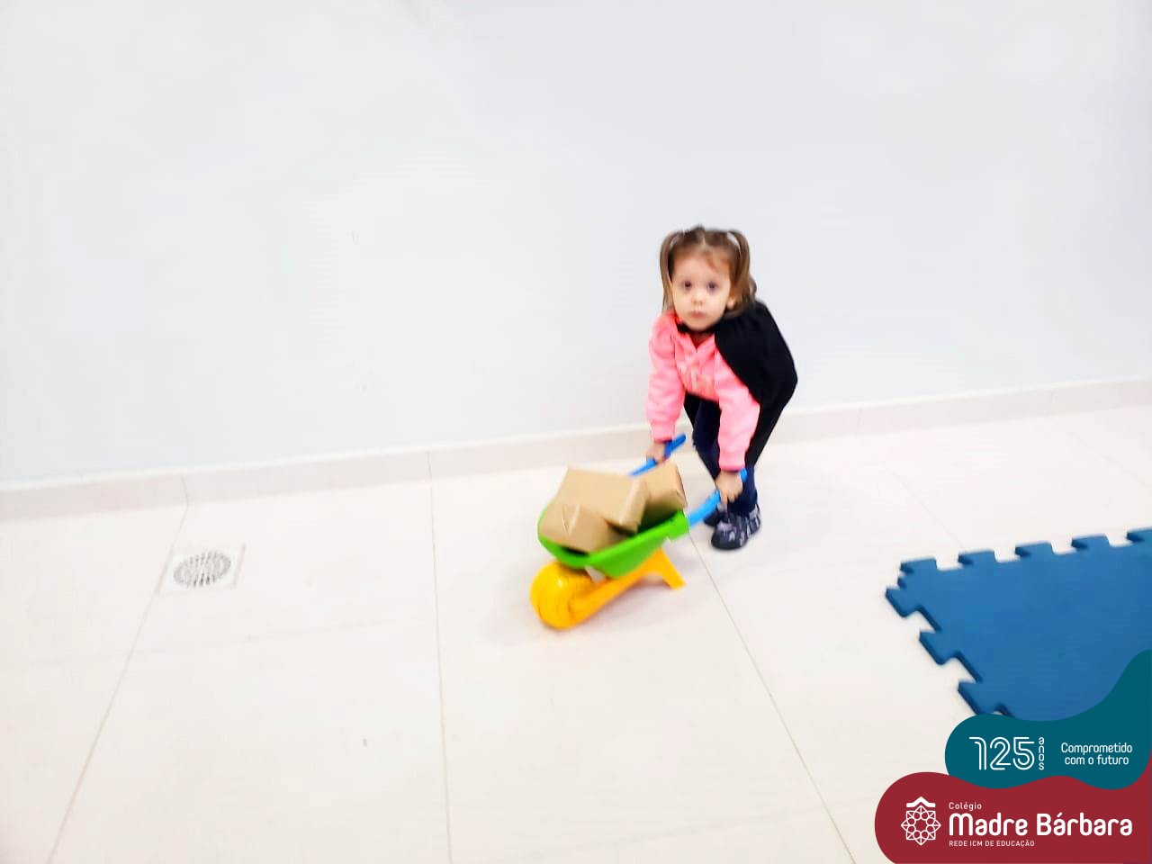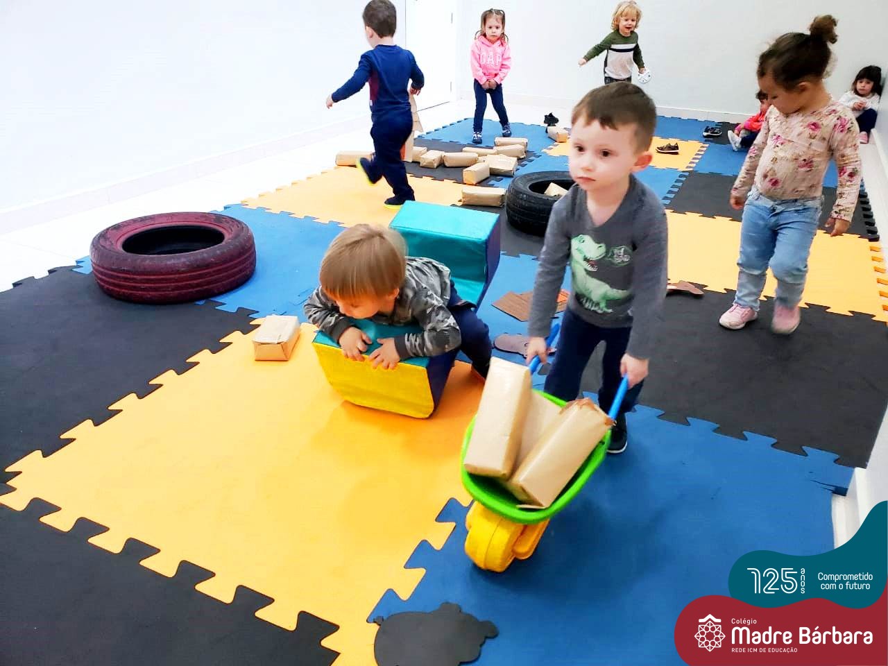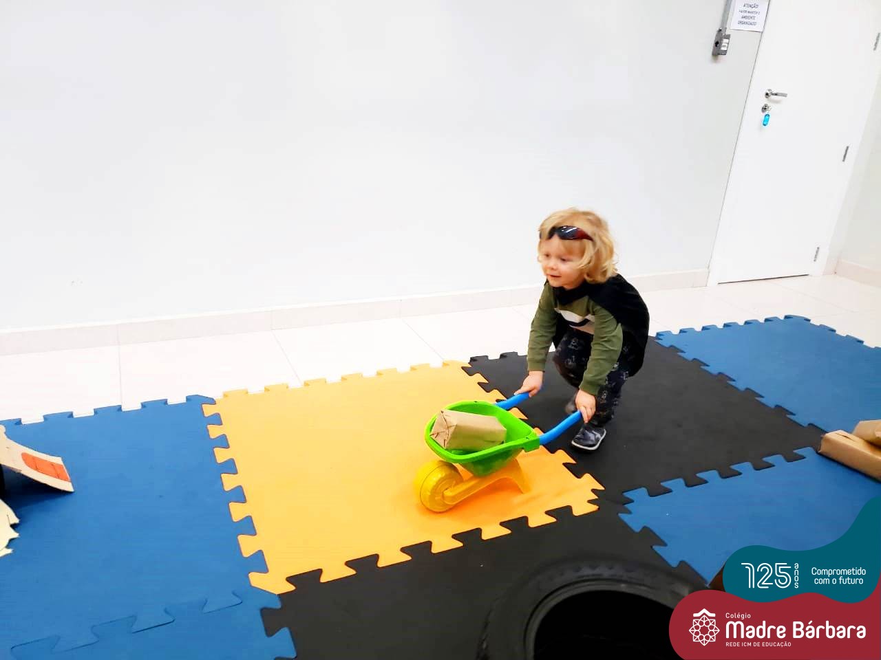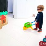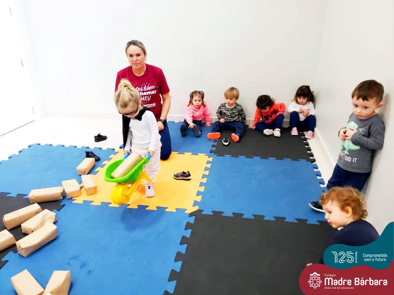 Na tarde desta segunda-feira (03.10), as crianças participaram de um momento de psicomotricidade bem especial. Dentro do projeto “Explorando, criando e recriando”, a turma está vivenciando propostas envolvendo o jogo simbólico e as professoras Isabel, Joice e Laura propuseram um momento lúdico e muito significativo. As crianças usaram um óculos, uma capa para que ficassem invisíveis para que o lobo não as visse. Assim, utilizavam o carrinho de mão para levar os tijolinhos até a casa dos porquinhos para auxiliá-los. Durante a brincadeira, passavam por desafios corporais, equilibrando o tijolo no carrinho, onde o imaginário se fez muito presente.