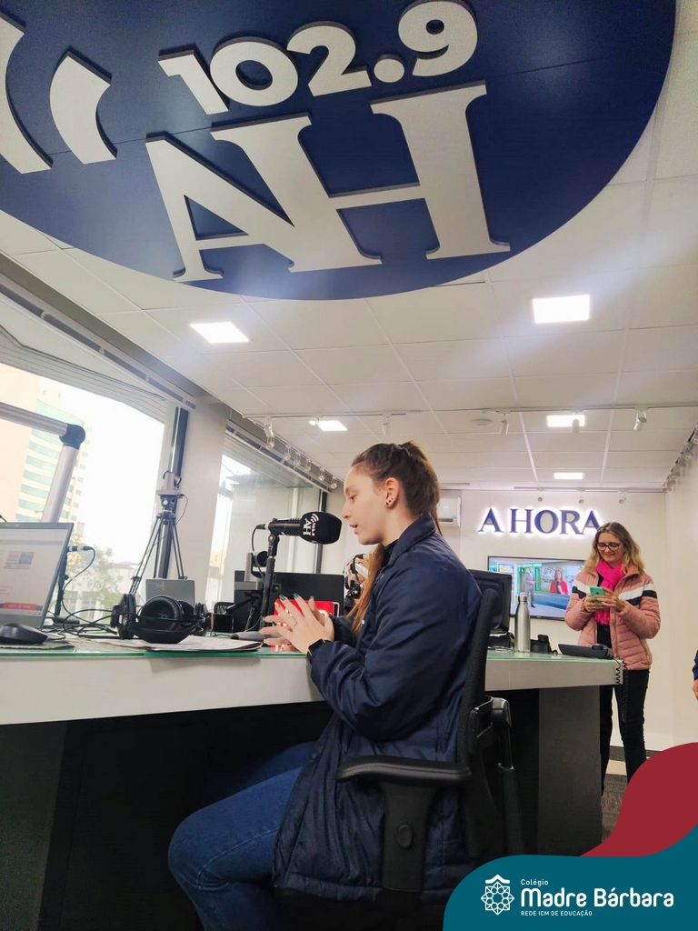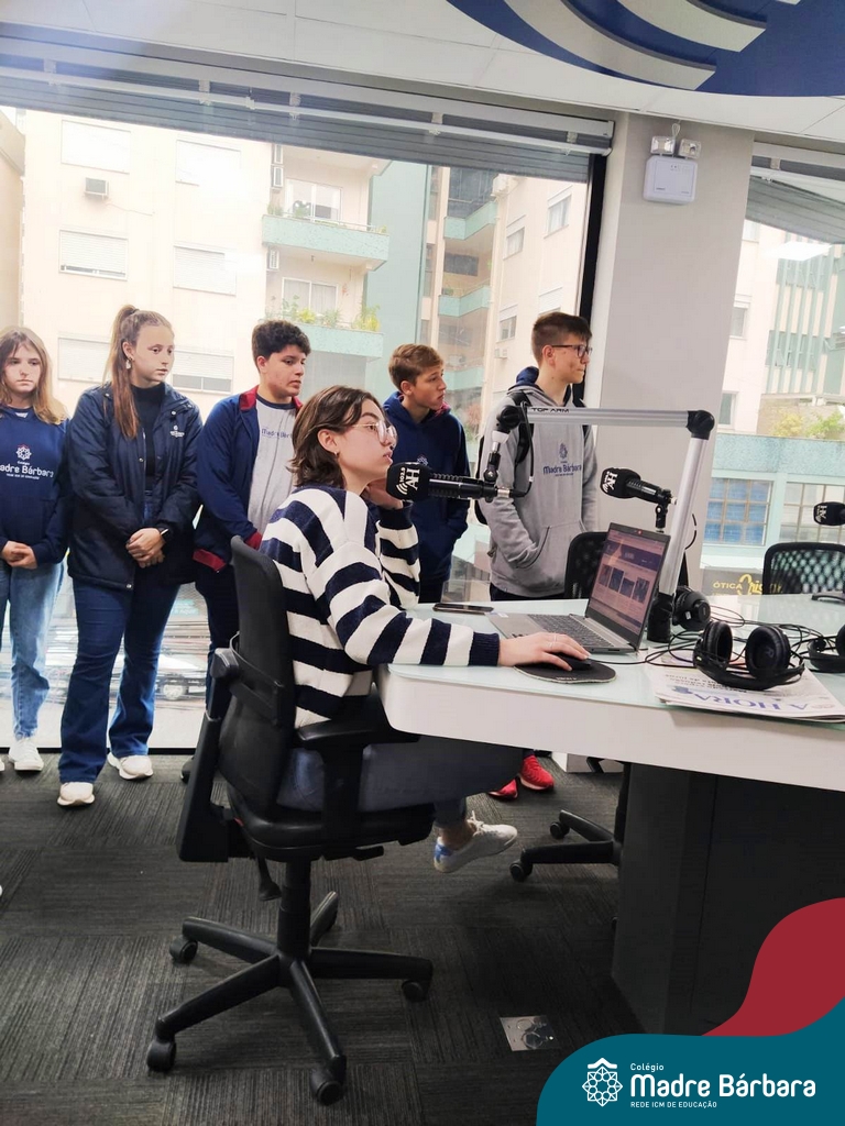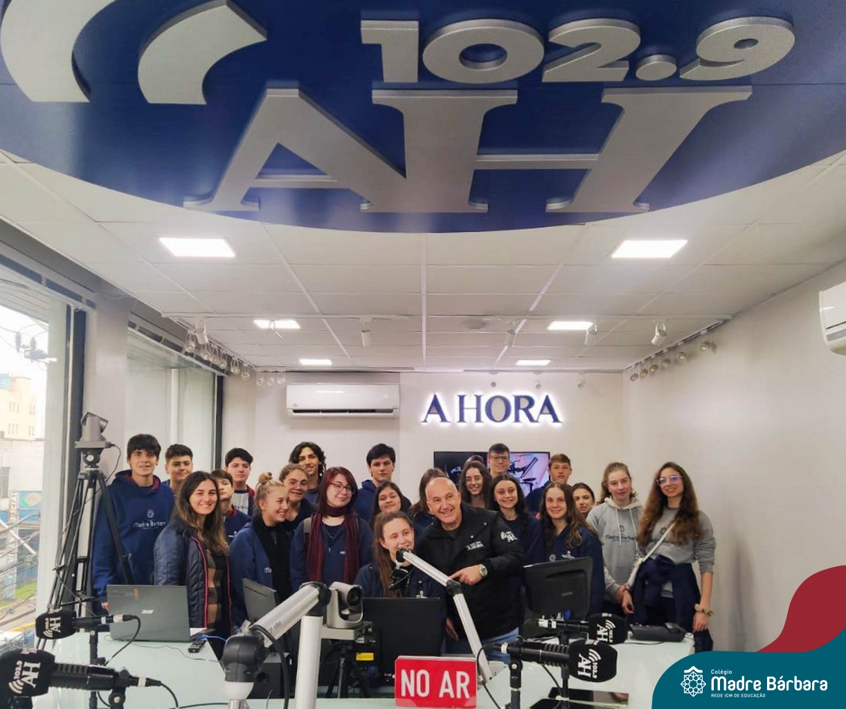 Depois de um semestre refletindo sobre o uso das mídias digitais no cotidiano das pessoas e a importância da comunicação nesses meios, os alunos do Itinerário de Comunicação e Mídias Digitais, ministrado pela professora Aline Konrath, tiveram a oportunidade de dialogar com quem trabalha nesse meio cotidianamente. Na última quarta-feira, o grupo visitou as dependências do Grupo A Hora e pôde conhecer o cotidiano do meio jornalístico, conversando com comunicadores de rádio, jornalistas, diagramadores e outros profissionais que trabalham no Grupo. Durante o momento, foi possível conhecer como acontece a seleção e escrita de pautas e notícias jornalísticas, o papel do rádio e do jornal impresso na atualidade e refletir sobre o uso das redes sociais, como meio de comunicação com os ouvintes.