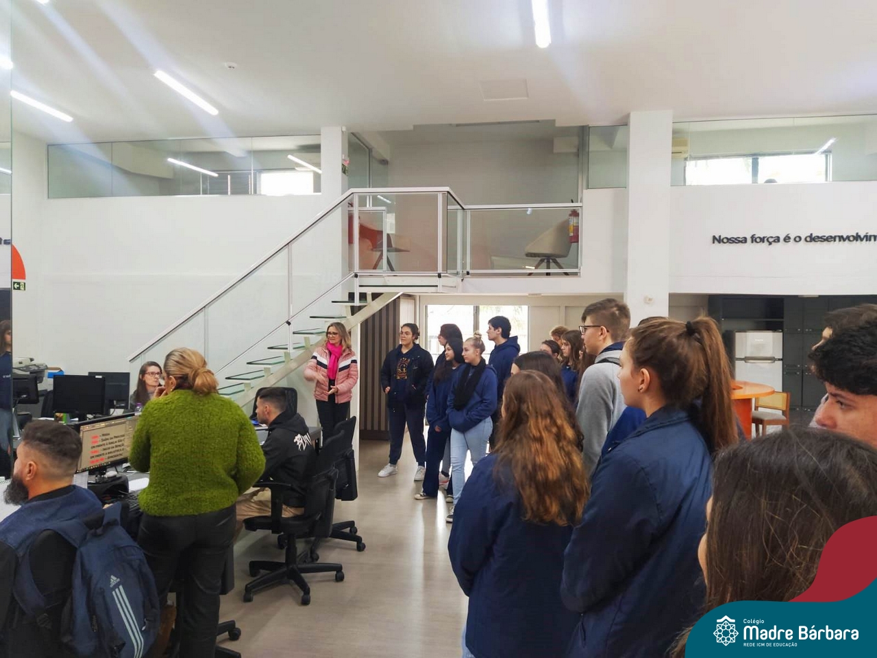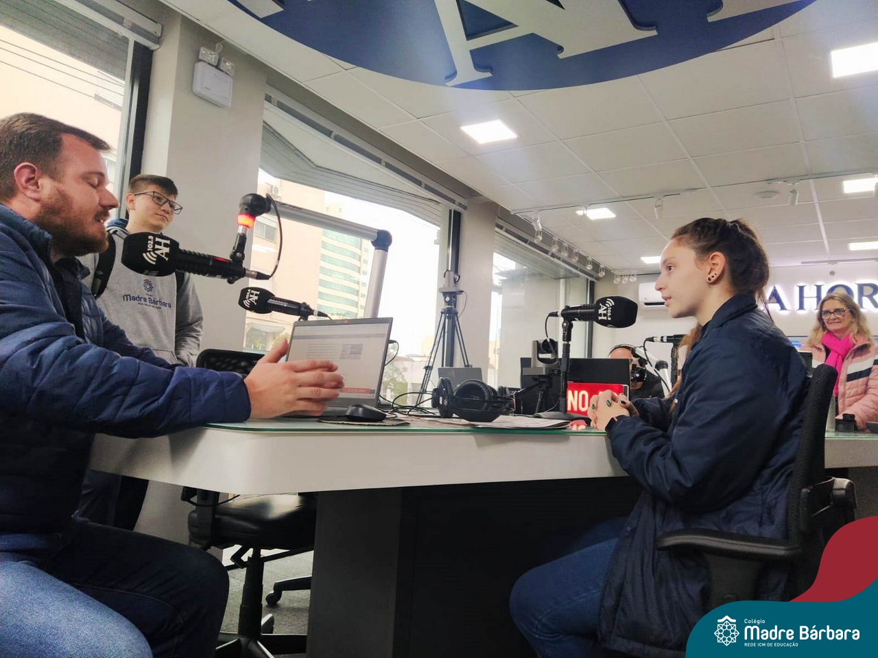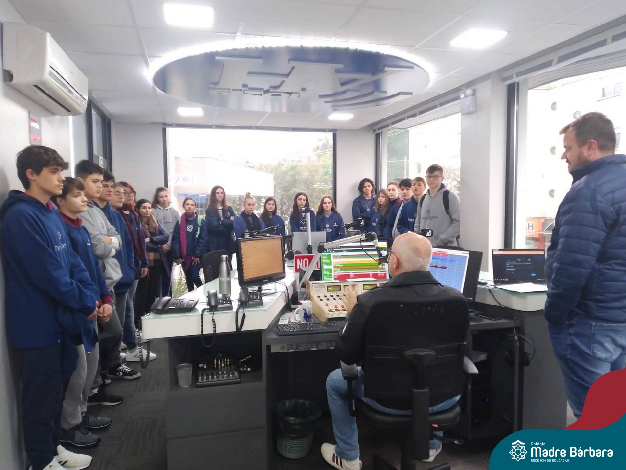 Depois de um semestre refletindo sobre o uso das mídias digitais no cotidiano das pessoas e a importância da comunicação nesses meios, os alunos do Itinerário de Comunicação e Mídias Digitais, ministrado pela professora Aline Konrath, tiveram a oportunidade de dialogar com quem trabalha nesse meio cotidianamente. Na última quarta-feira, o grupo visitou as dependências do Grupo A Hora e pôde conhecer o cotidiano do meio jornalístico, conversando com comunicadores de rádio, jornalistas, diagramadores e outros profissionais que trabalham no Grupo. Durante o momento, foi possível conhecer como acontece a seleção e escrita de pautas e notícias jornalísticas, o papel do rádio e do jornal impresso na atualidade e refletir sobre o uso das redes sociais, como meio de comunicação com os ouvintes.