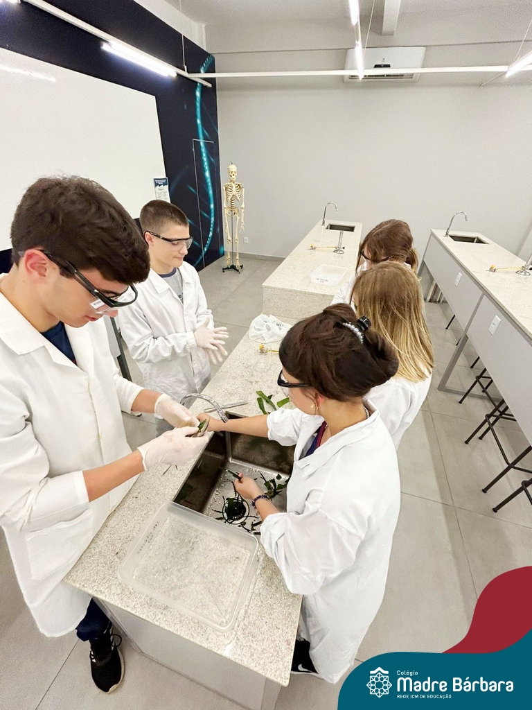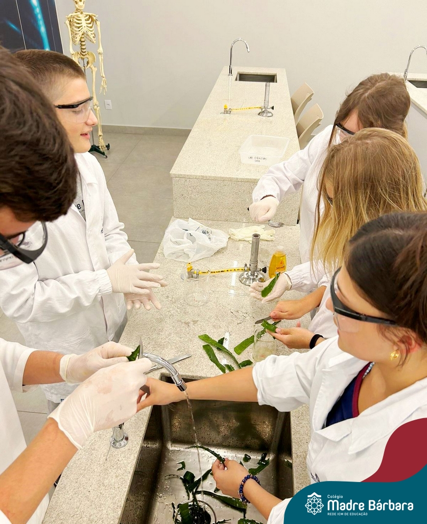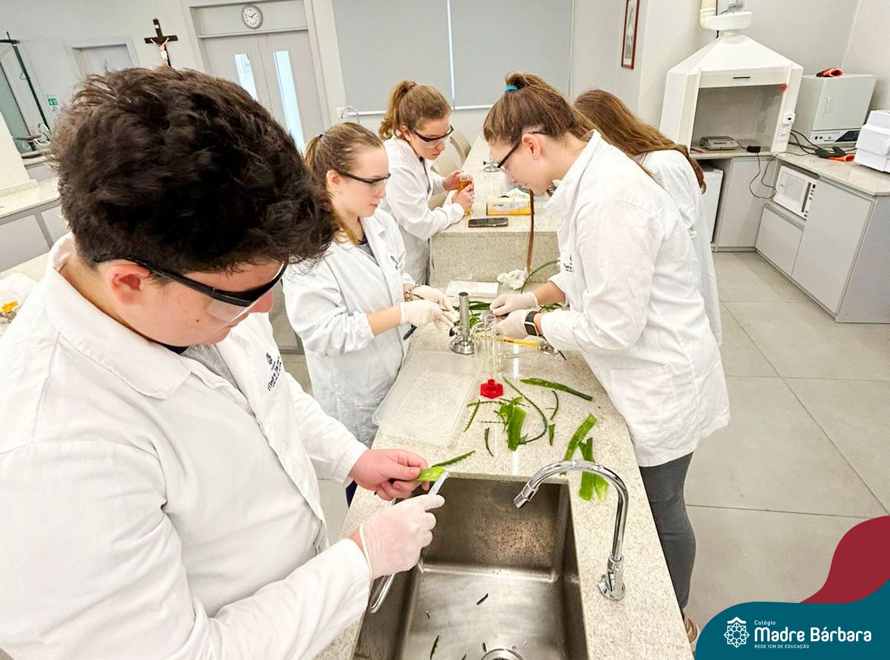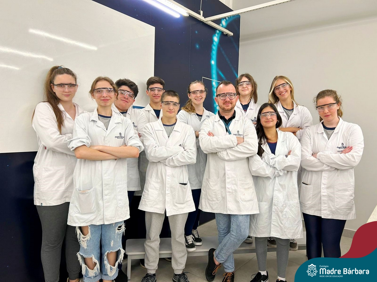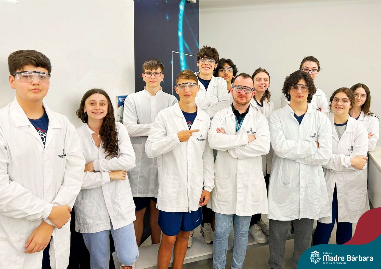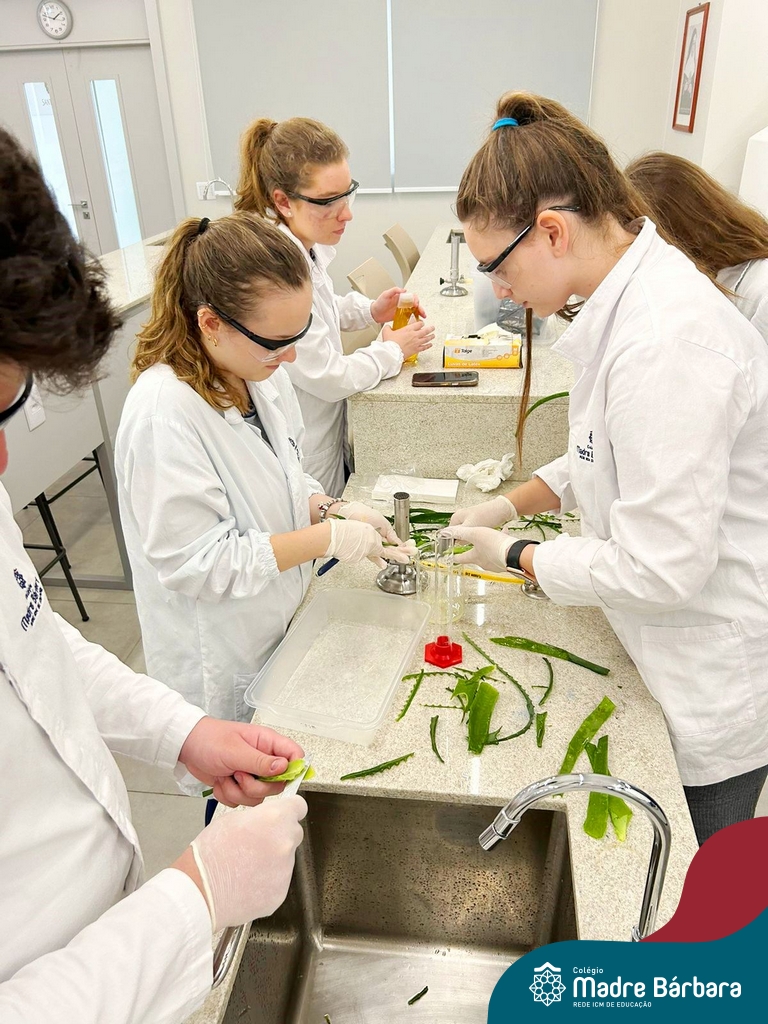 O encerramento do Itinerário Formativo de Investigação Científica: da Cosmetologia à Farmácia do Novo Ensino Médio ocorreu na tarde desta quarta-feira (06.12) no Laboratório de Ciências do Colégio Madre Bárbara – Rede ICM. Os estudantes do 1º ano do Ensino Médio foram desafiados a relacionar o uso de produtos naturais na formulação de cosméticos. A partir das pesquisas, formularam um xampu à base de produtos naturais, fazendo uso de produtos regionais. O Itinerário é coordenado pelo professor de Química Aliar Anacleto Jung.