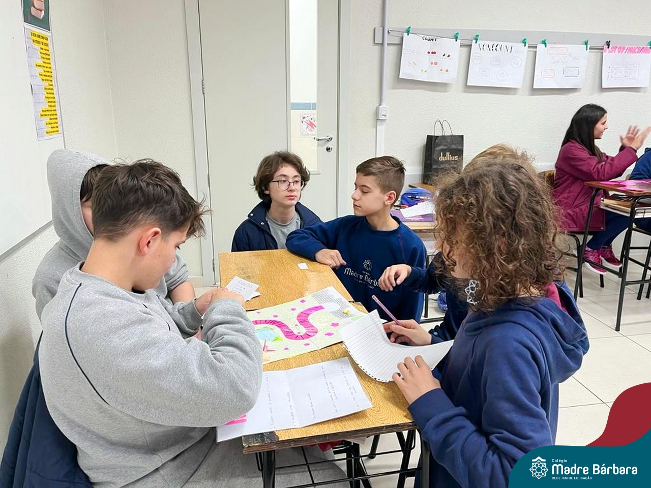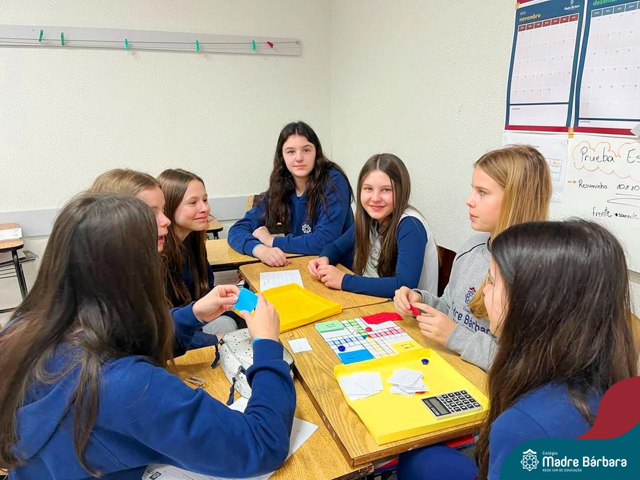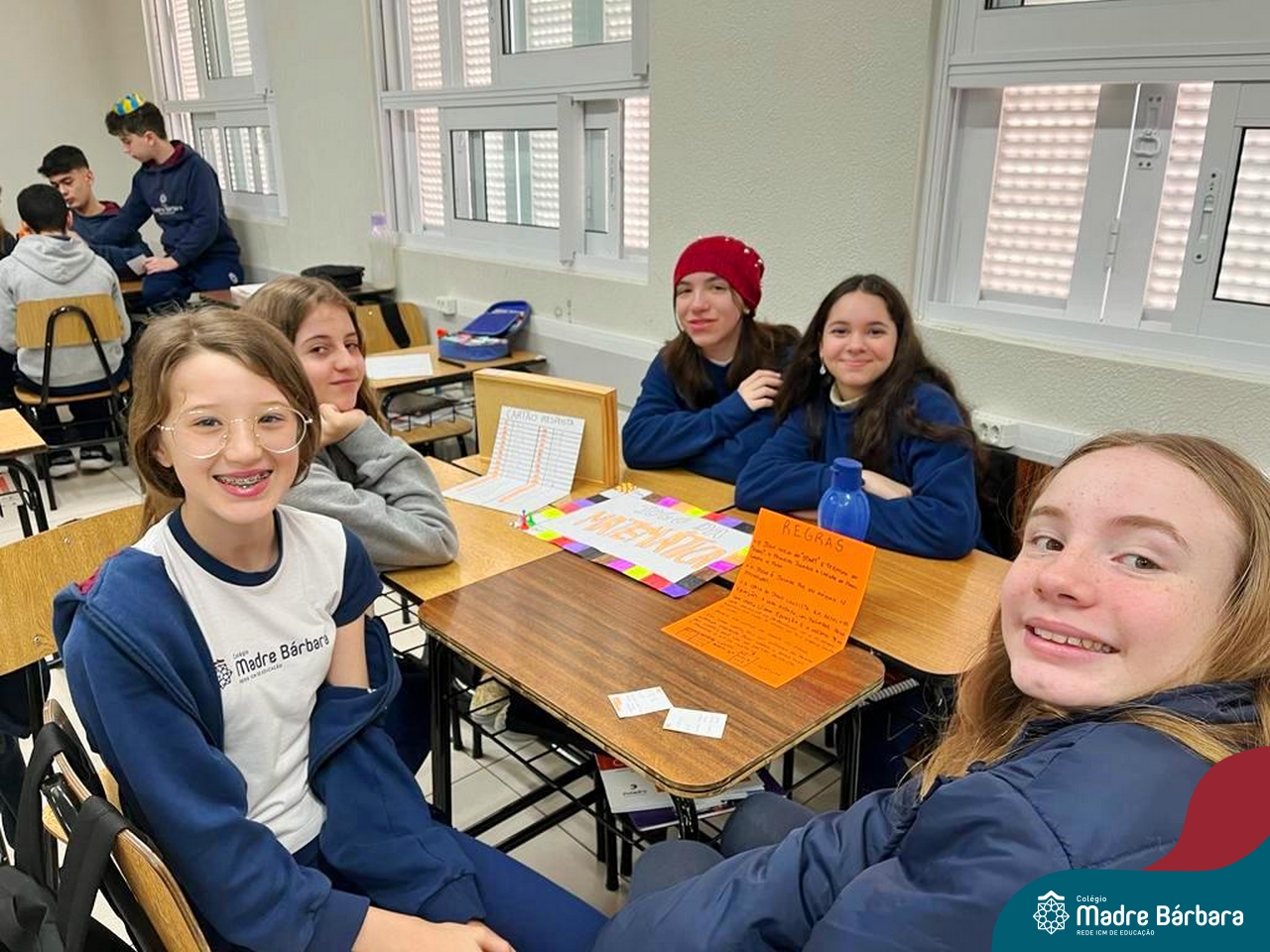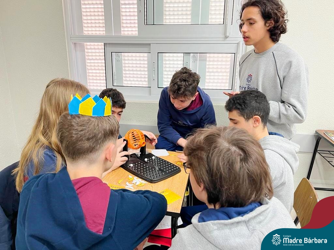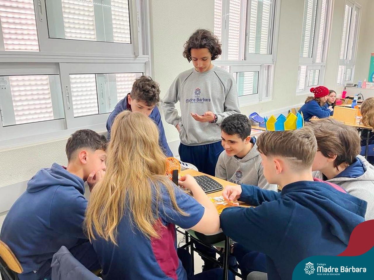 As turmas de 7ºs anos desenvolveram jogos matemáticos criados por eles envolvendo equações. Foi após realizarem os estudos das equações do 1º grau e dominarem formas resolutivas em matemática, com a professora Daniele Zamin, que foram divididos em equipes onde cada uma precisava desenvolver criatividade, raciocínio lógico, proporcionando condições de resolver equações aplicadas em jogos, promovendo a socialização. Cada equipe formulou um jogo, em que poderia ser no formato que já conhecem como: dominó, trilha, quebra-cabeça, jogo de tabuleiro ou outros, mas todos com o mesmo objetivo de desenvolver equações do 1º grau, aplicando as habilidades que desenvolveram durante os estudos. Cada equipe apresentou seu jogo para as turmas e as equipes trocaram em um sistema de rodízio para que todos pudessem conhecer e jogar.