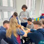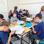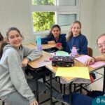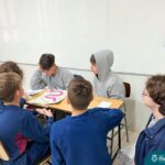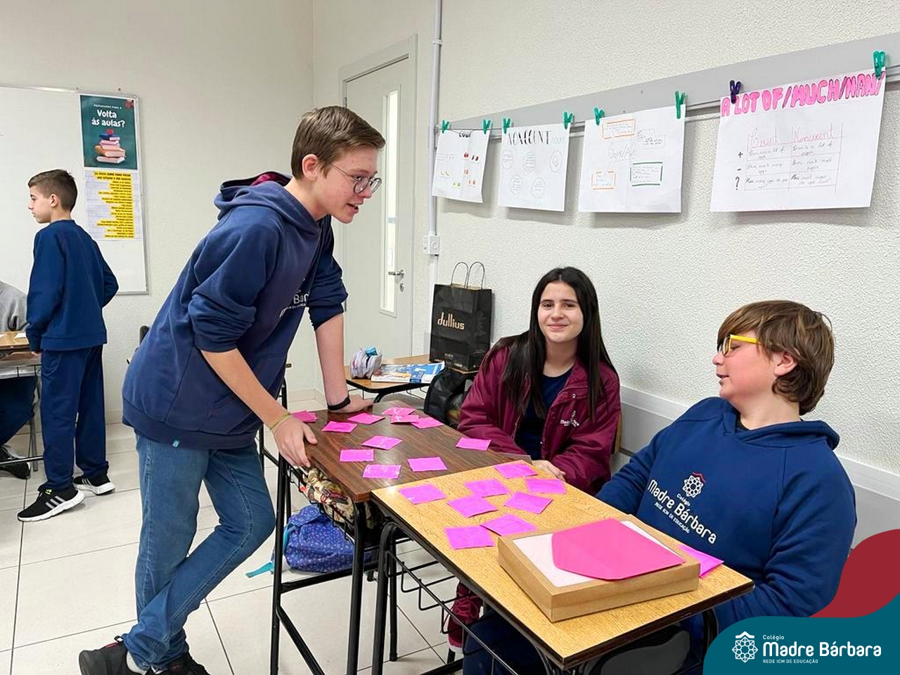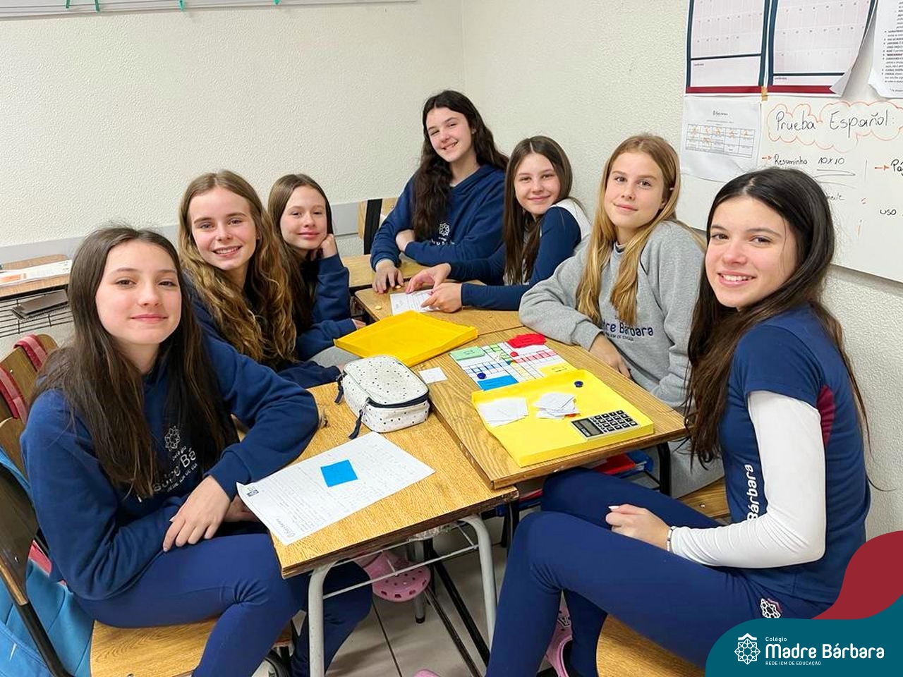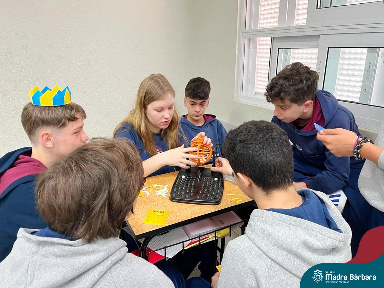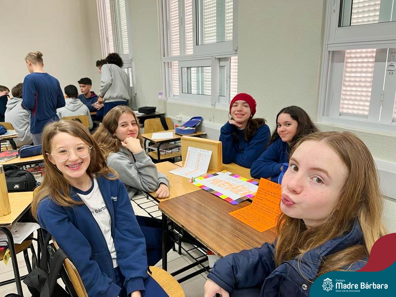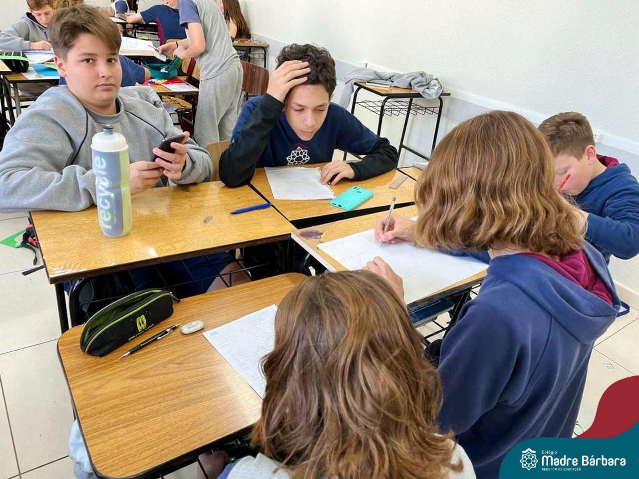 As turmas de 7ºs anos desenvolveram jogos matemáticos criados por eles envolvendo equações. Foi após realizarem os estudos das equações do 1º grau e dominarem formas resolutivas em matemática, com a professora Daniele Zamin, que foram divididos em equipes onde cada uma precisava desenvolver criatividade, raciocínio lógico, proporcionando condições de resolver equações aplicadas em jogos, promovendo a socialização. Cada equipe formulou um jogo, em que poderia ser no formato que já conhecem como: dominó, trilha, quebra-cabeça, jogo de tabuleiro ou outros, mas todos com o mesmo objetivo de desenvolver equações do 1º grau, aplicando as habilidades que desenvolveram durante os estudos. Cada equipe apresentou seu jogo para as turmas e as equipes trocaram em um sistema de rodízio para que todos pudessem conhecer e jogar.