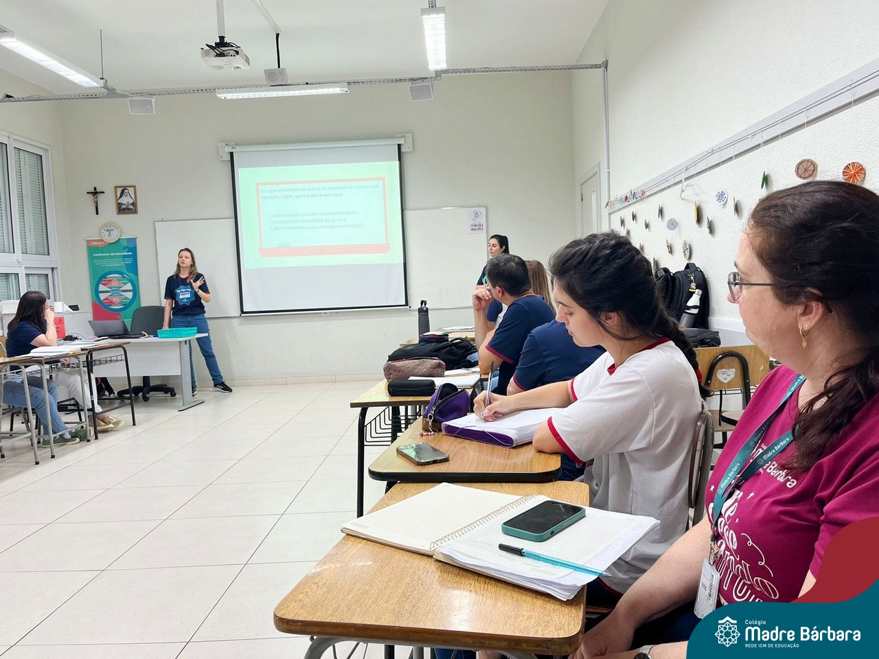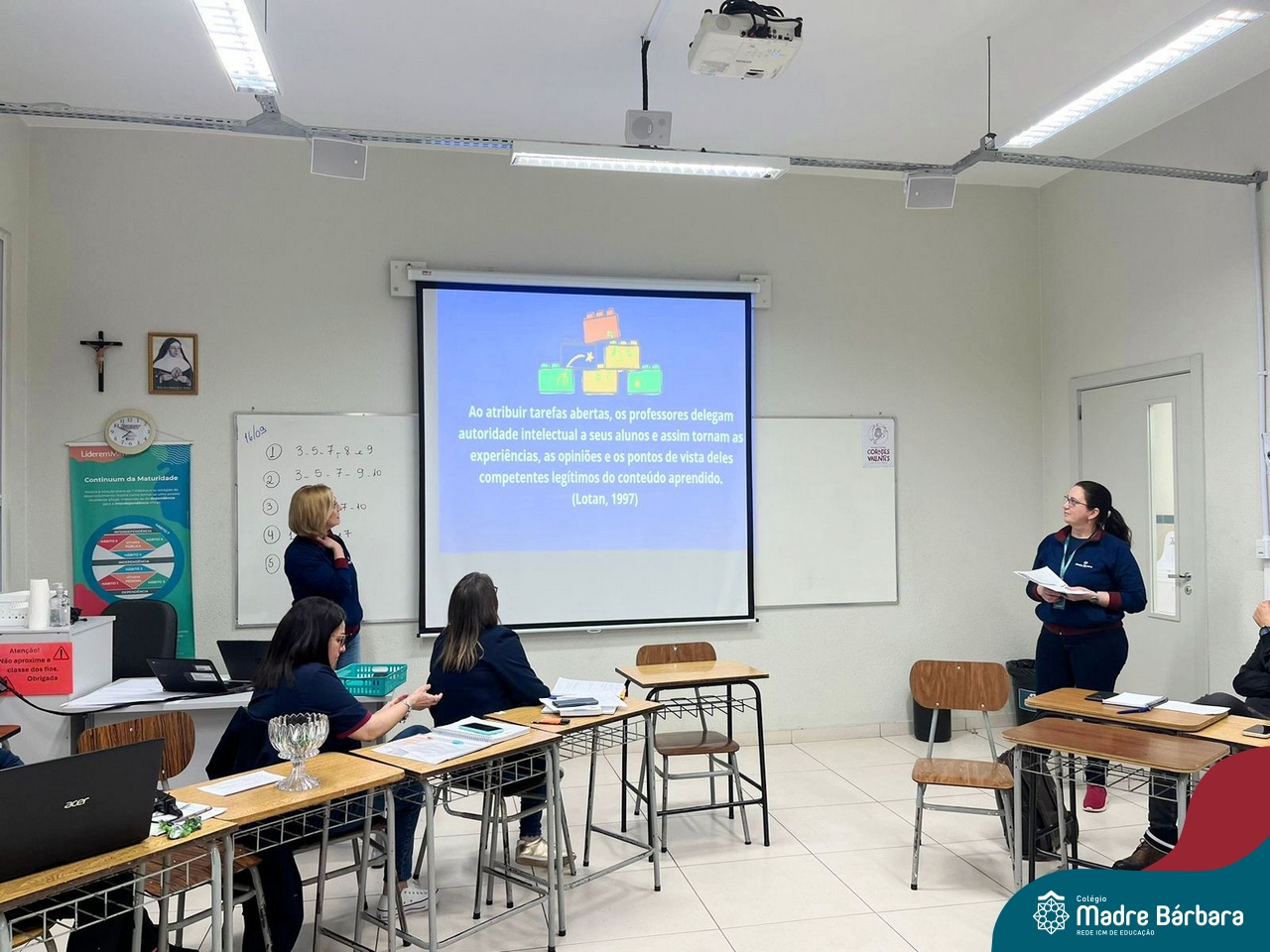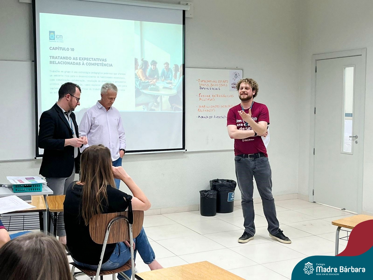 Na nossa jornada de excelência educacional, os professores dos Anos Finais e do Ensino Médio participaram de um seminário enriquecedor, tendo como base o livro “Planejando o Trabalho em Grupo: Estratégias para Salas de Aula Heterogêneas”, de Elizabeth G. Cohen, Rachel A. Lotan e José Ruy Lozano Mila Molina Carneiro. Este livro, referência em práticas de ensino colaborativo, oferece insights valiosos sobre a importância da aprendizagem cooperativa para a criação de ambientes mais inclusivos e equitativos. Durante o seminário, os educadores puderam compartilhar estratégias para organizar suas salas de aula e outras reflexões sobre o tema. A formação continuada dos professores é parte essencial da nossa missão de oferecer um ensino de qualidade.