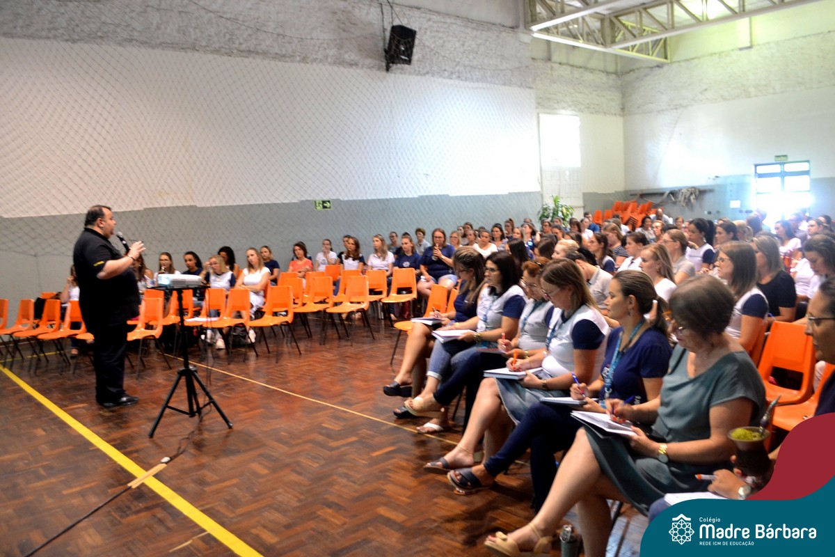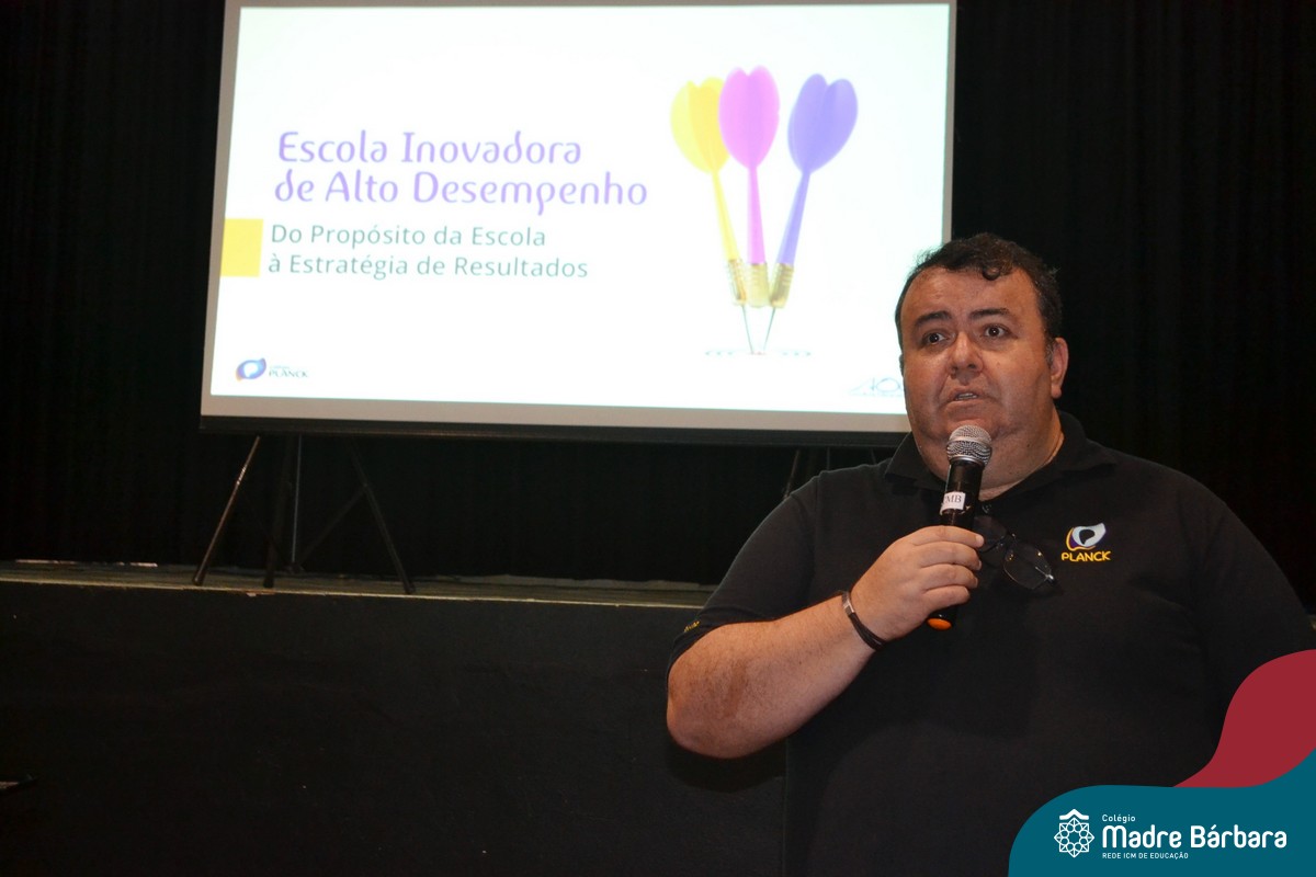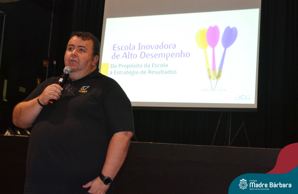 Esta semana o Colégio Madre Bárbara – Rede ICM está realizando a Jornada Pedagógica 2020 para os professores. Na tarde desta quarta-feira (12.02) a instituição recebeu o professor de São Paulo, André Guadalupe, que conversou com os profissionais sobre o tema: “Escola Inovadora de Alto Desempenho: Do Propósito da Escola à Estratégia de Resultados”.