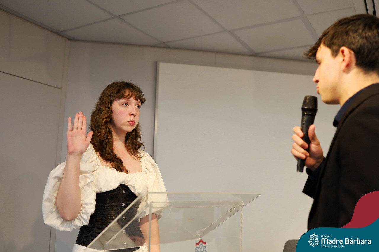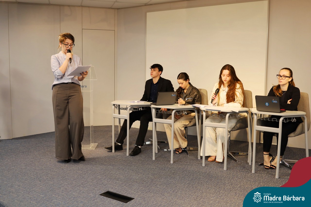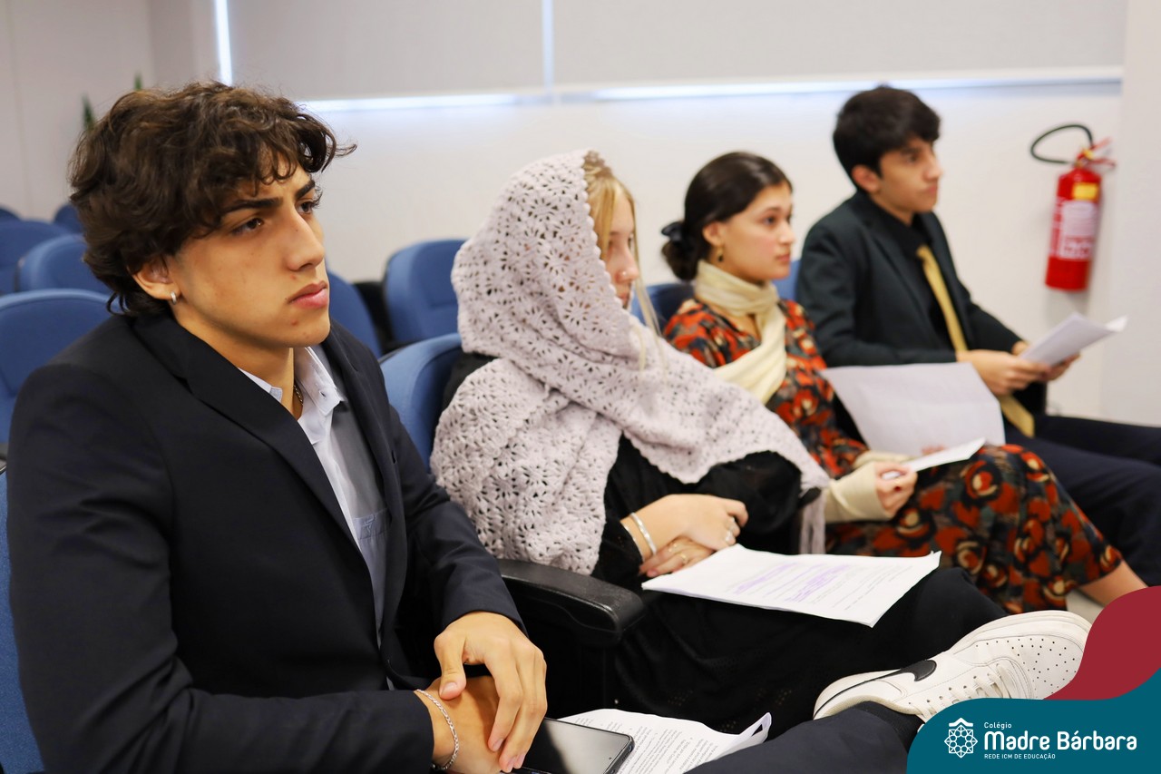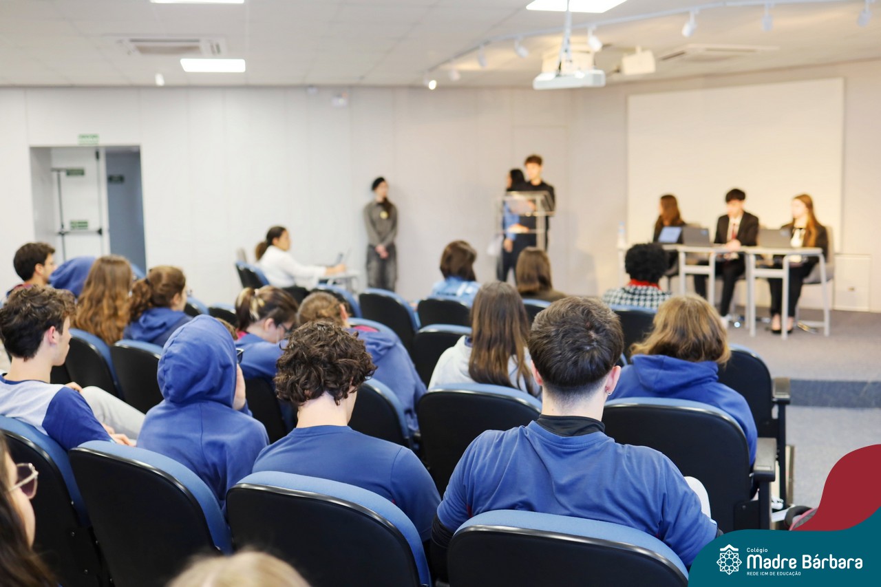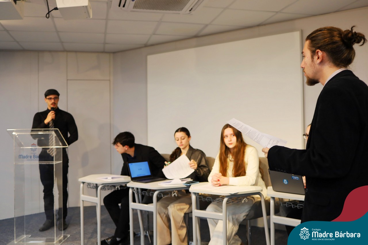 A partir da leitura da obra Dom Casmurro, de Machado de Assis, os estudantes do 3º ano do Ensino Médio foram desafiados a realizar o Júri Simulado das personagens Capitu e Bentinho. No Julgamento da Capitu, julgou-se se Capitu traiu ou não Bentinho. Já no Julgamento do Bentinho, o personagem respondeu pela acusação de calúnia e difamação. Para a atividade, os alunos foram divididos em acusação e defesa, que tiveram de usar de todo o seu poder persuasivo para convencer o júri de suas teses. Além da equipe de acusação e defesa, havia a equipe do Juíz, responsável pela organização e condução dos casos. Já o Júri foi composto pelas convidadas externas Adriana Diemer, que é advogada, além das professoras de literatura Rosane Cardoso, Ana Emília Klein e Vitória Schmidt.