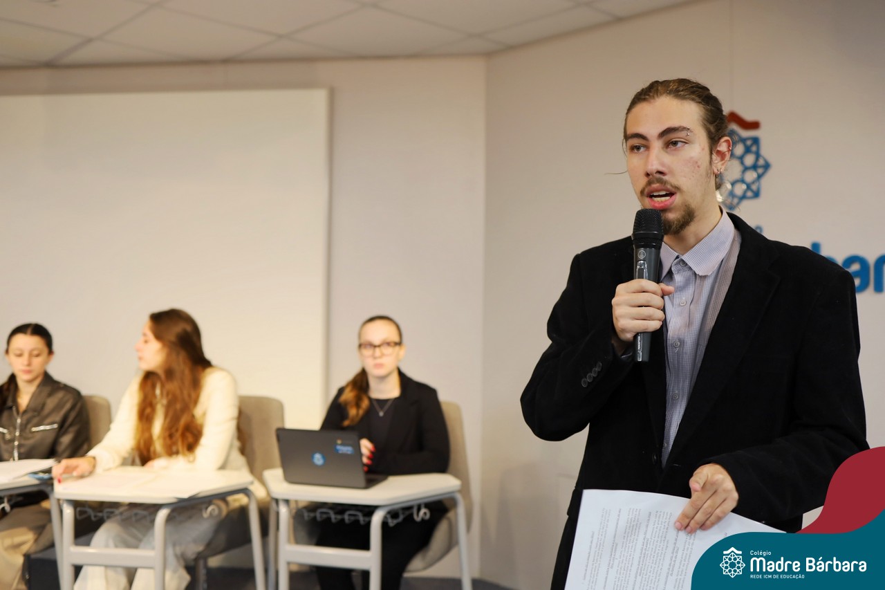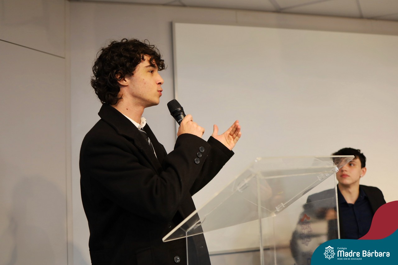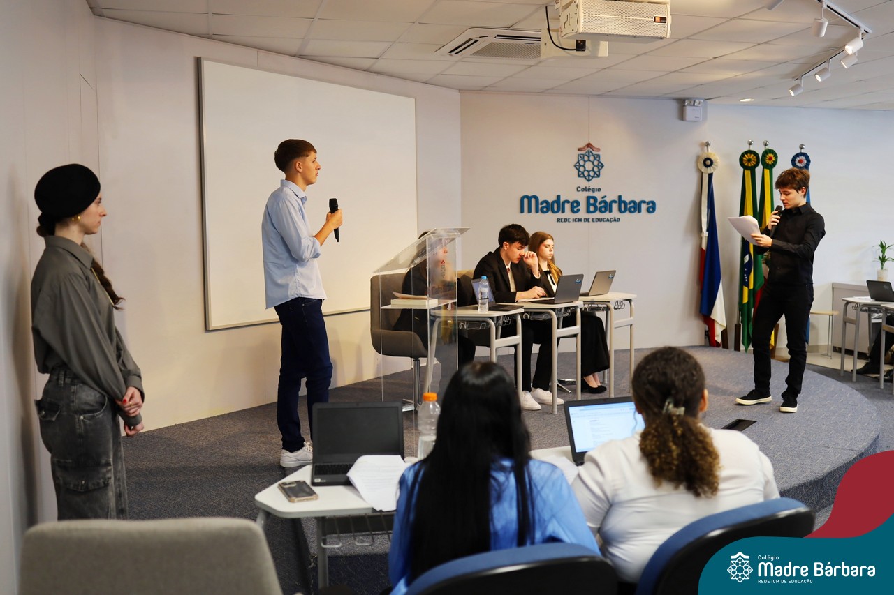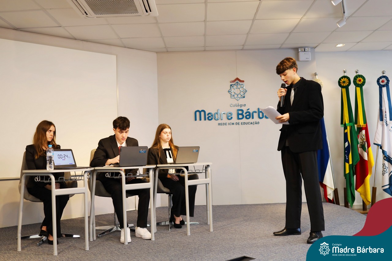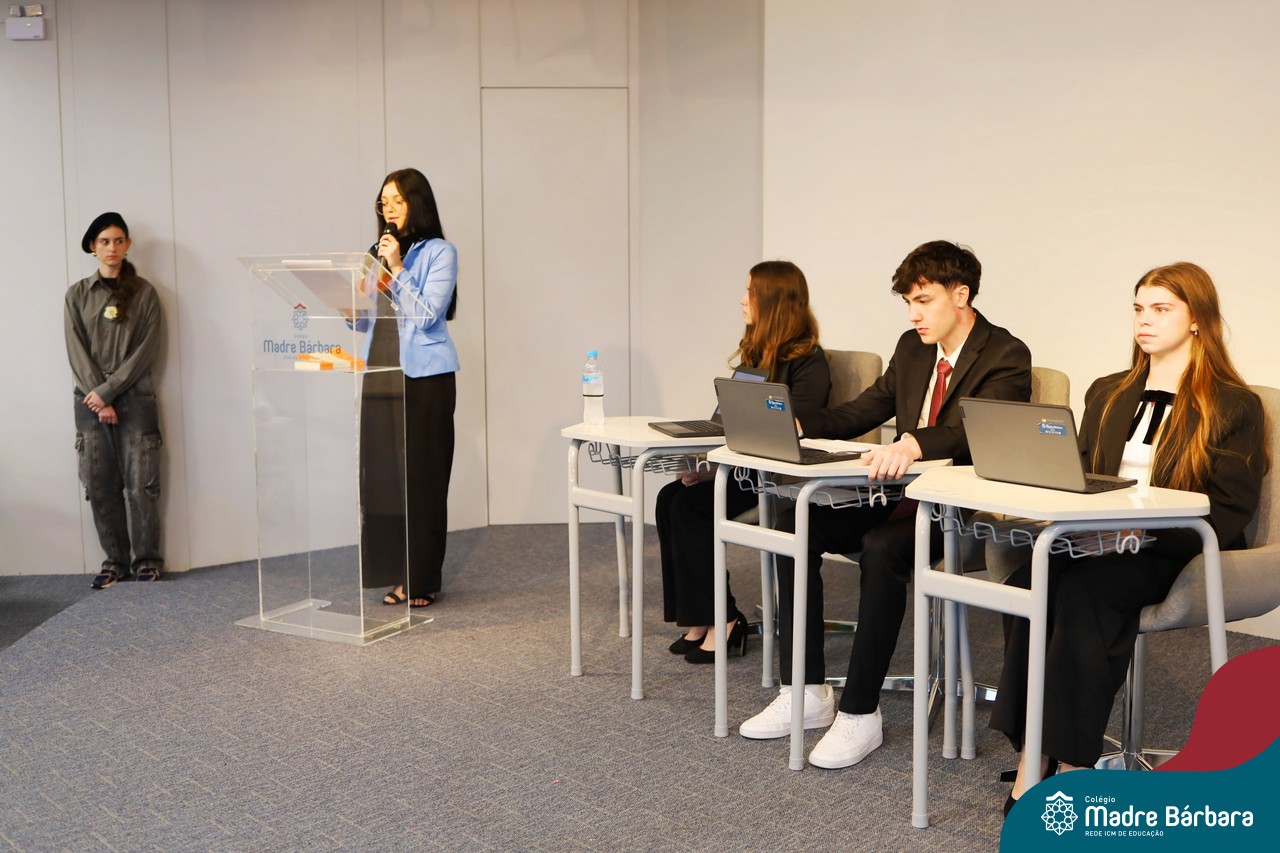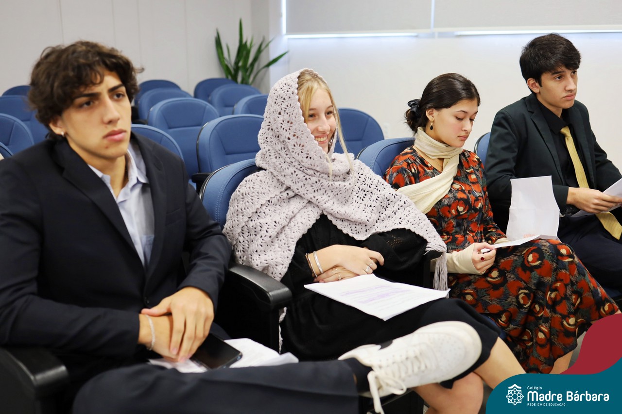 A partir da leitura da obra Dom Casmurro, de Machado de Assis, os estudantes do 3º ano do Ensino Médio foram desafiados a realizar o Júri Simulado das personagens Capitu e Bentinho. No Julgamento da Capitu, julgou-se se Capitu traiu ou não Bentinho. Já no Julgamento do Bentinho, o personagem respondeu pela acusação de calúnia e difamação. Para a atividade, os alunos foram divididos em acusação e defesa, que tiveram de usar de todo o seu poder persuasivo para convencer o júri de suas teses. Além da equipe de acusação e defesa, havia a equipe do Juíz, responsável pela organização e condução dos casos. Já o Júri foi composto pelas convidadas externas Adriana Diemer, que é advogada, além das professoras de literatura Rosane Cardoso, Ana Emília Klein e Vitória Schmidt.