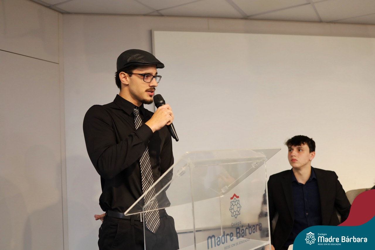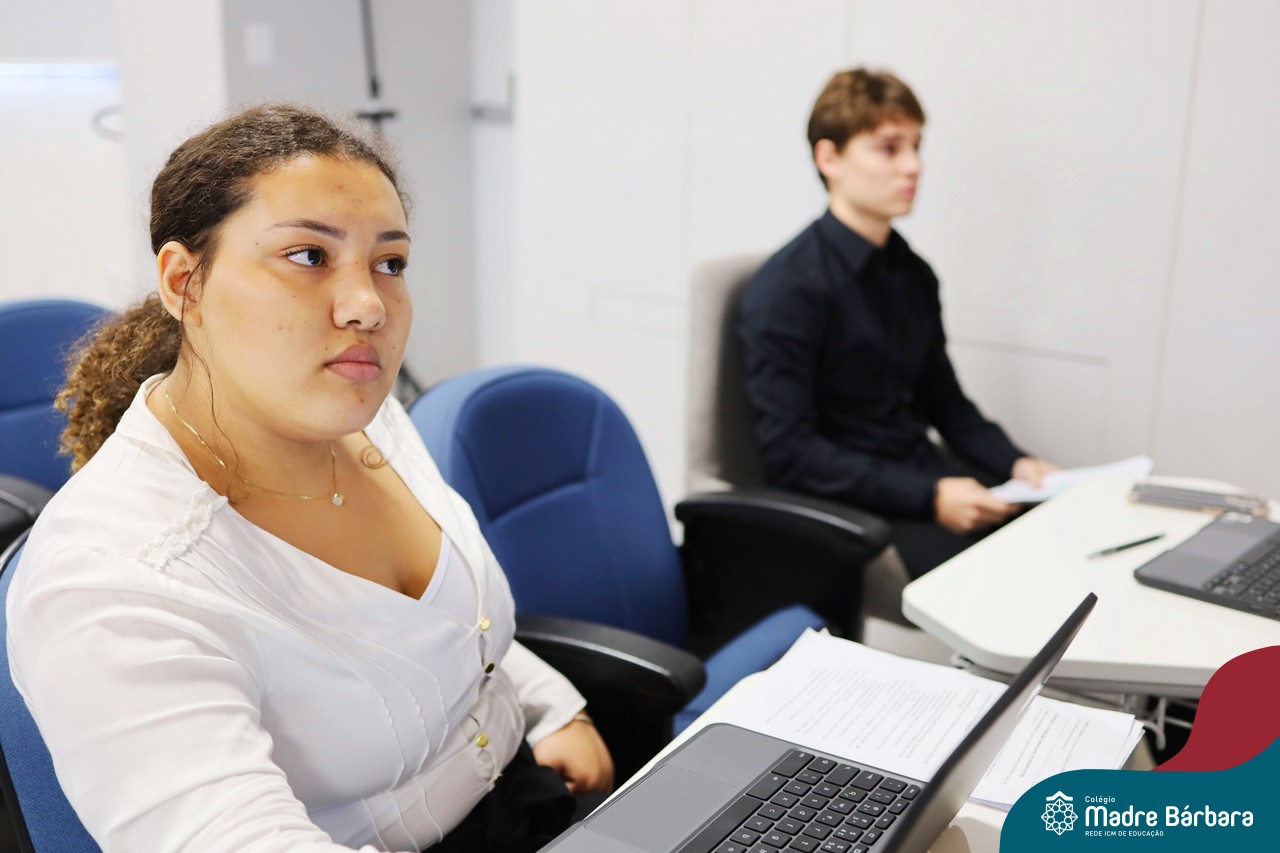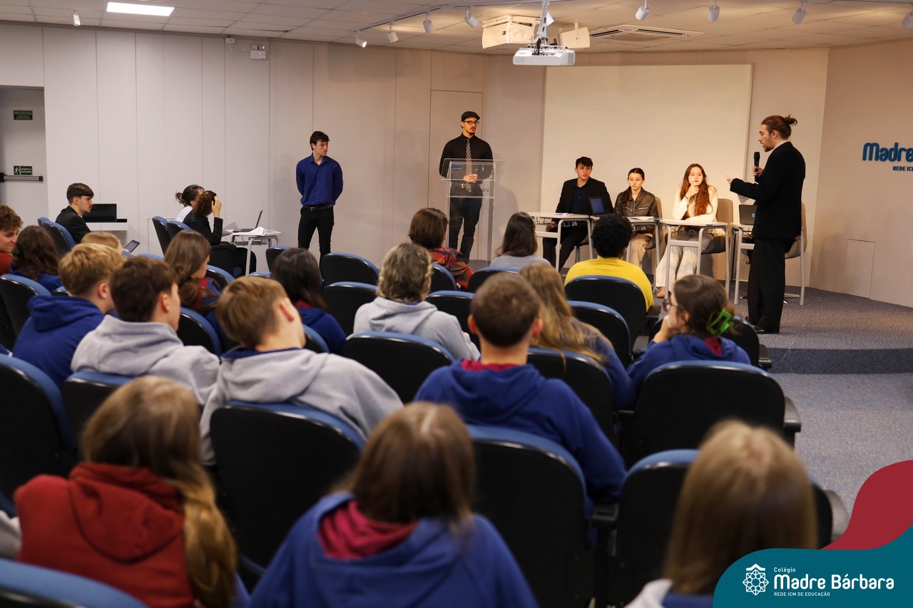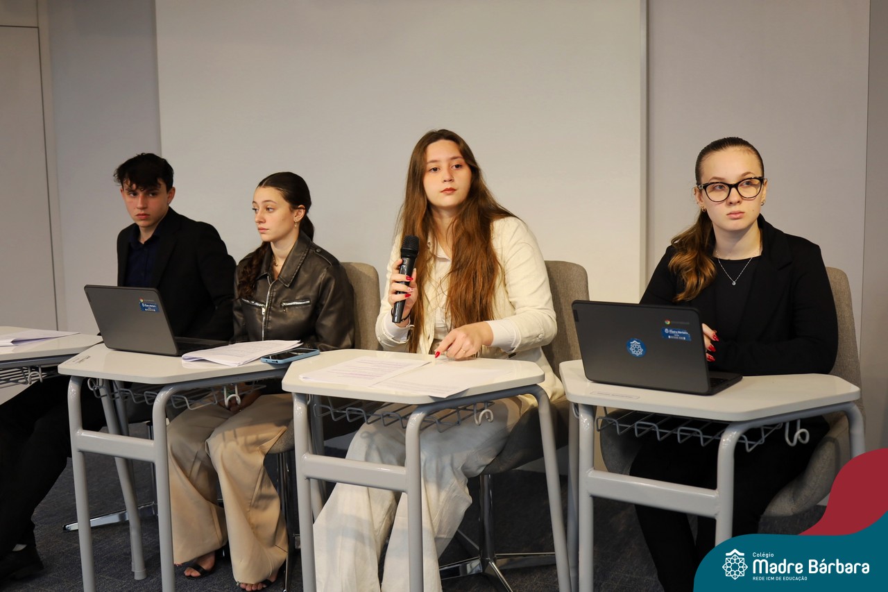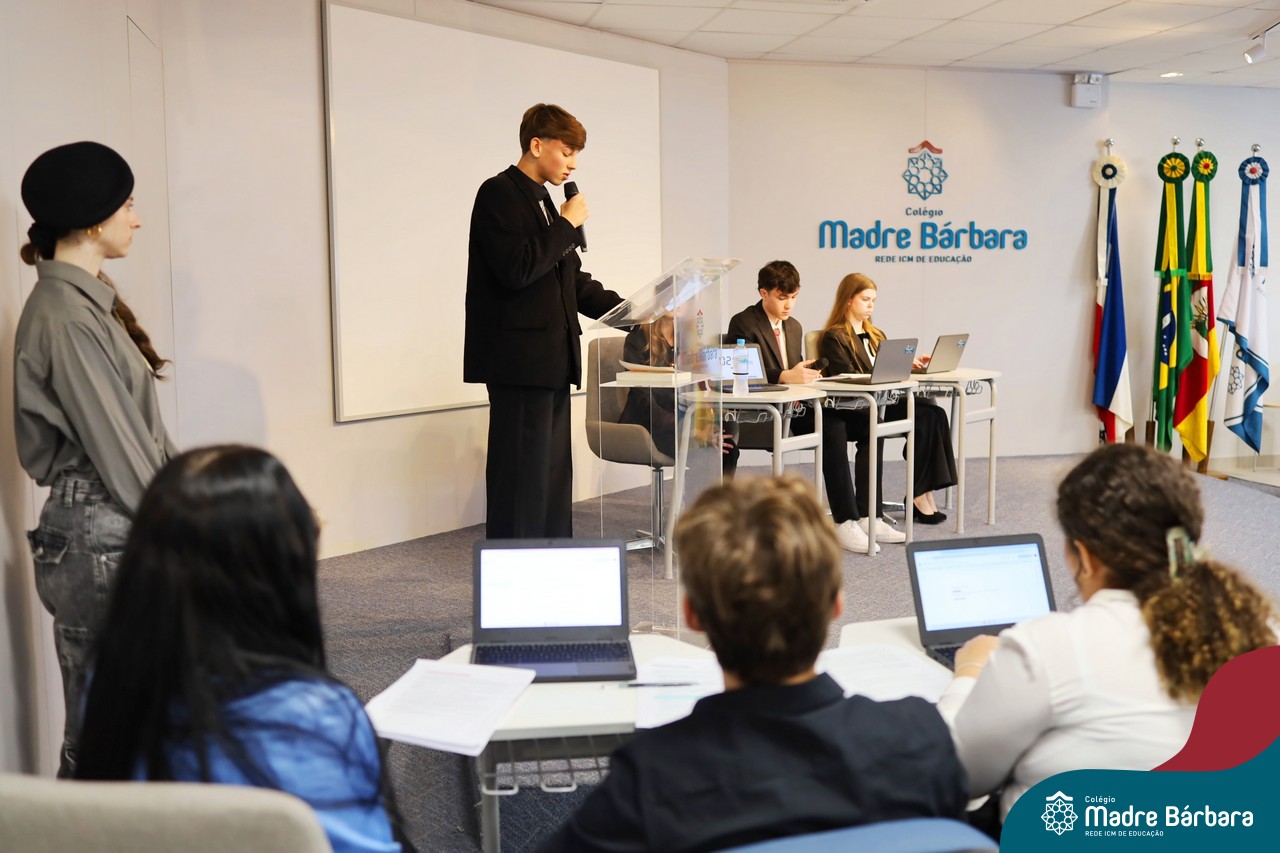 A partir da leitura da obra Dom Casmurro, de Machado de Assis, os estudantes do 3º ano do Ensino Médio foram desafiados a realizar o Júri Simulado das personagens Capitu e Bentinho. No Julgamento da Capitu, julgou-se se Capitu traiu ou não Bentinho. Já no Julgamento do Bentinho, o personagem respondeu pela acusação de calúnia e difamação. Para a atividade, os alunos foram divididos em acusação e defesa, que tiveram de usar de todo o seu poder persuasivo para convencer o júri de suas teses. Além da equipe de acusação e defesa, havia a equipe do Juíz, responsável pela organização e condução dos casos. Já o Júri foi composto pelas convidadas externas Adriana Diemer, que é advogada, além das professoras de literatura Rosane Cardoso, Ana Emília Klein e Vitória Schmidt.