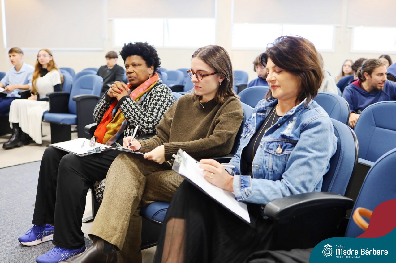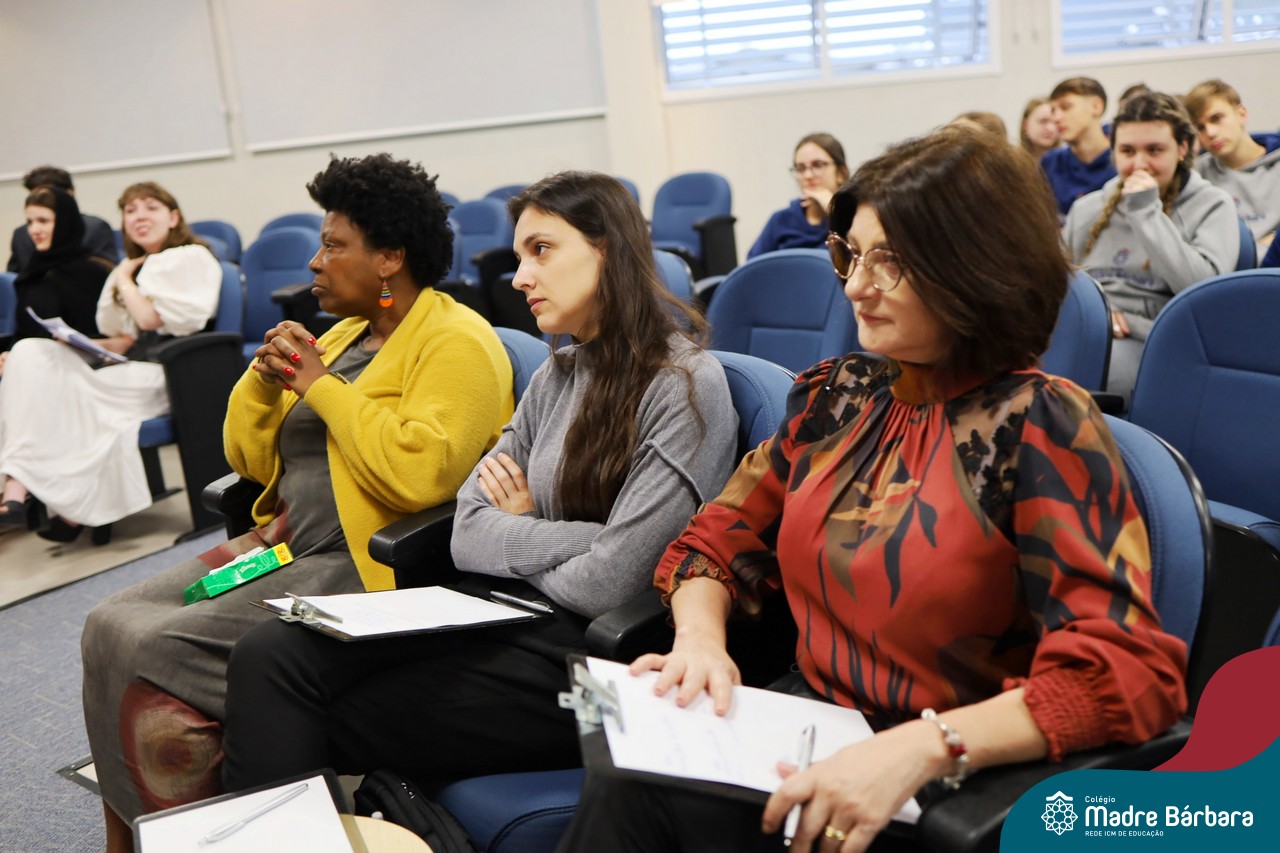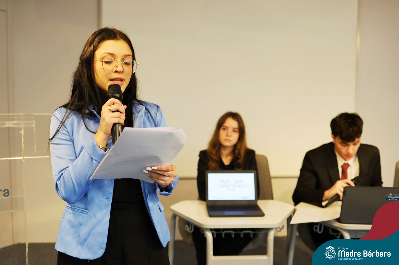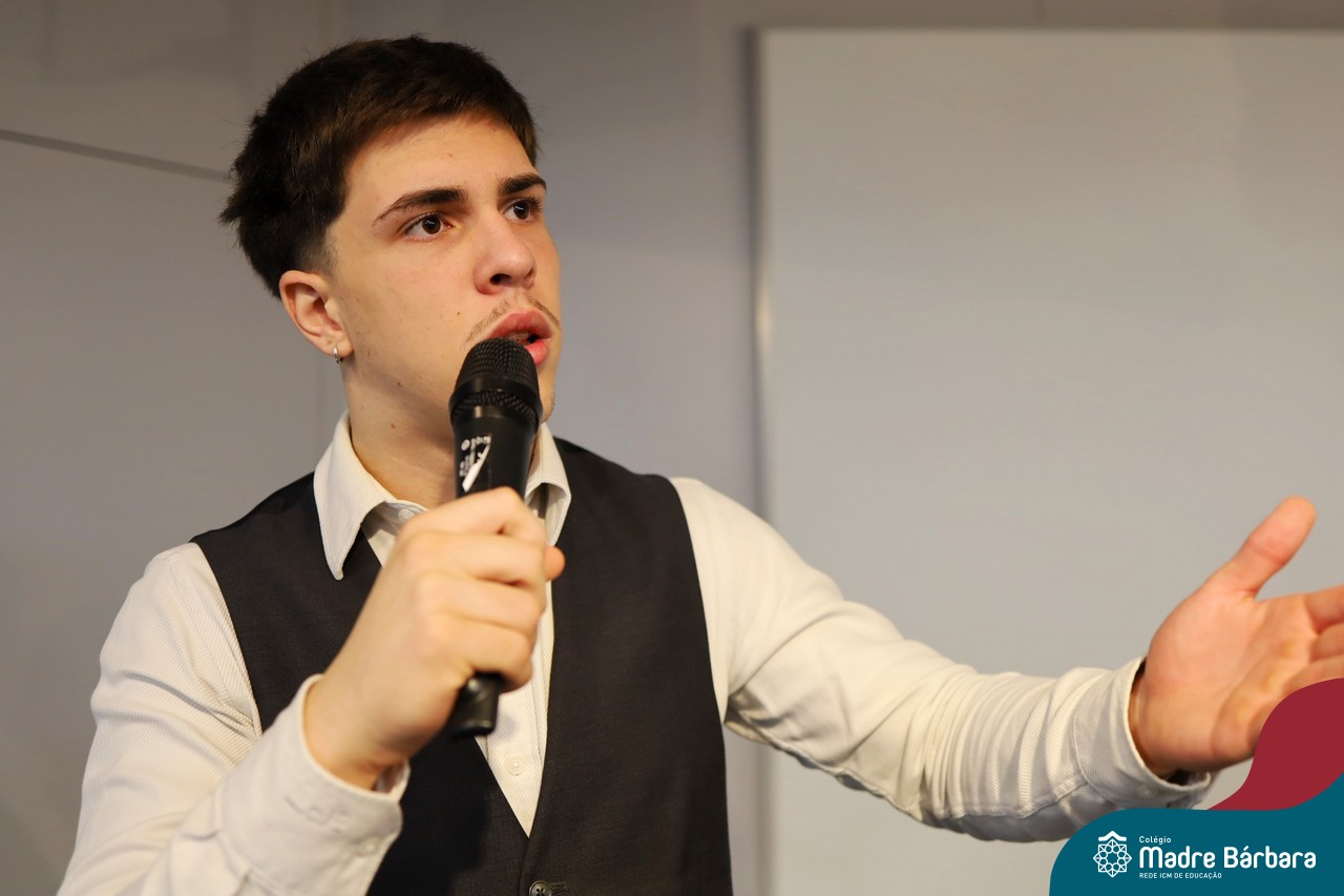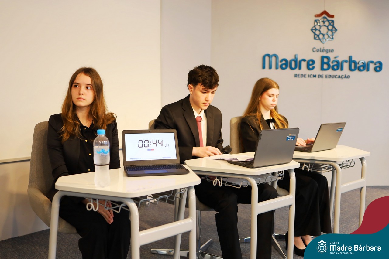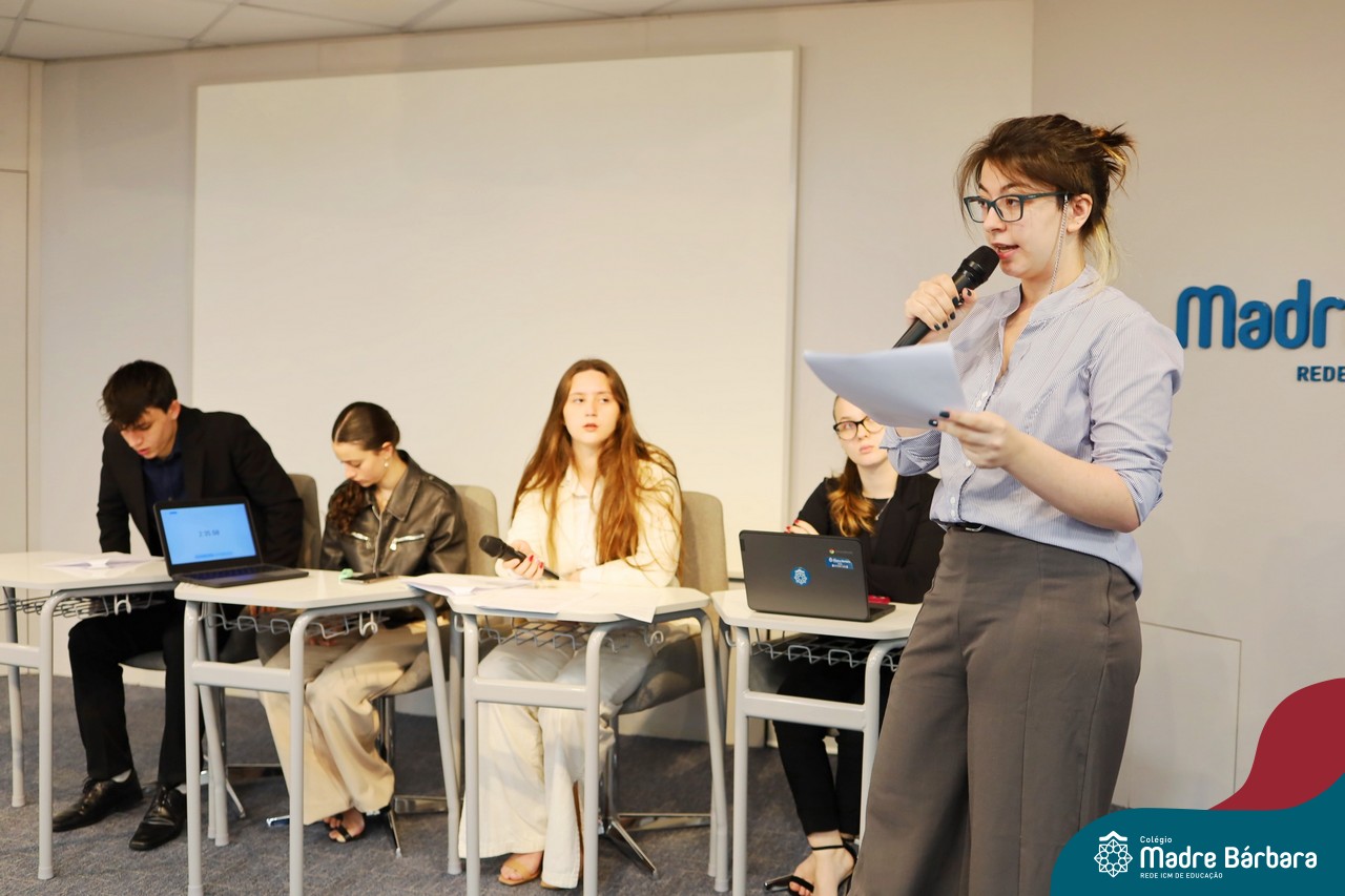 A partir da leitura da obra Dom Casmurro, de Machado de Assis, os estudantes do 3º ano do Ensino Médio foram desafiados a realizar o Júri Simulado das personagens Capitu e Bentinho. No Julgamento da Capitu, julgou-se se Capitu traiu ou não Bentinho. Já no Julgamento do Bentinho, o personagem respondeu pela acusação de calúnia e difamação. Para a atividade, os alunos foram divididos em acusação e defesa, que tiveram de usar de todo o seu poder persuasivo para convencer o júri de suas teses. Além da equipe de acusação e defesa, havia a equipe do Juíz, responsável pela organização e condução dos casos. Já o Júri foi composto pelas convidadas externas Adriana Diemer, que é advogada, além das professoras de literatura Rosane Cardoso, Ana Emília Klein e Vitória Schmidt.