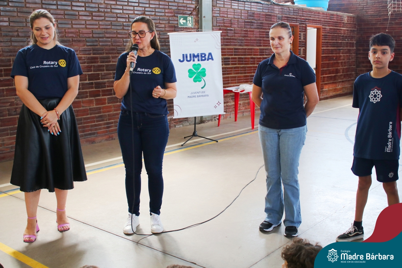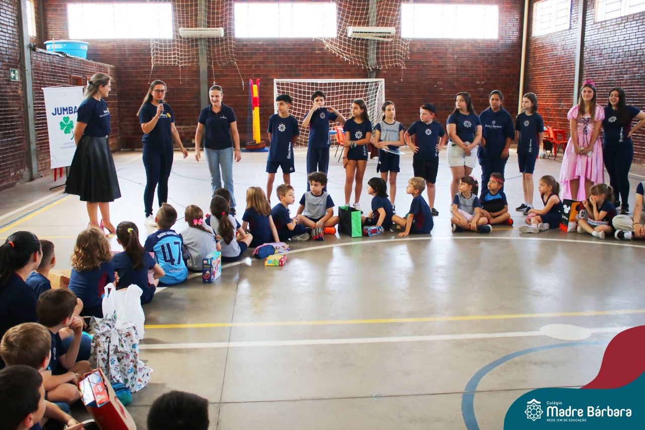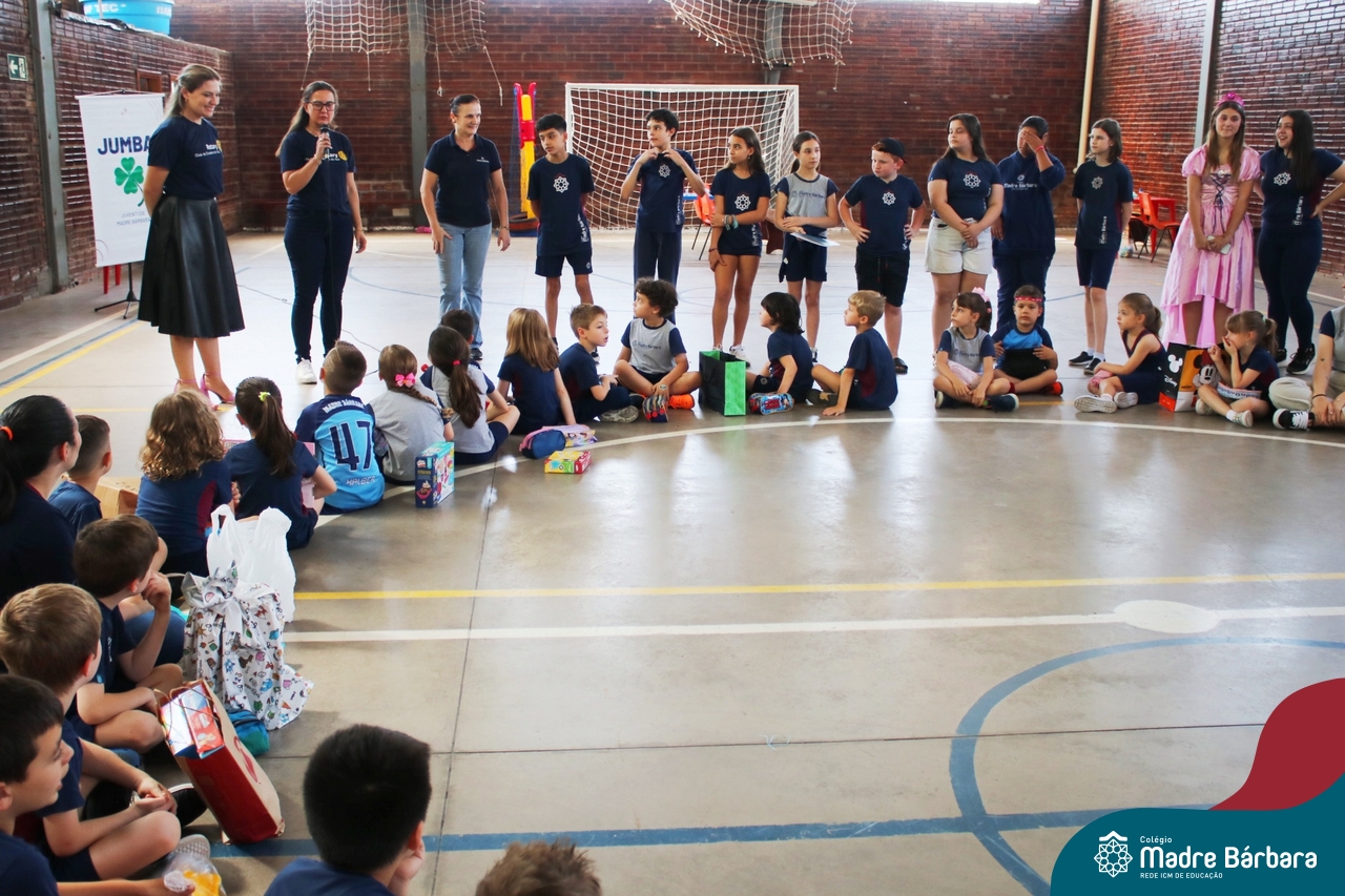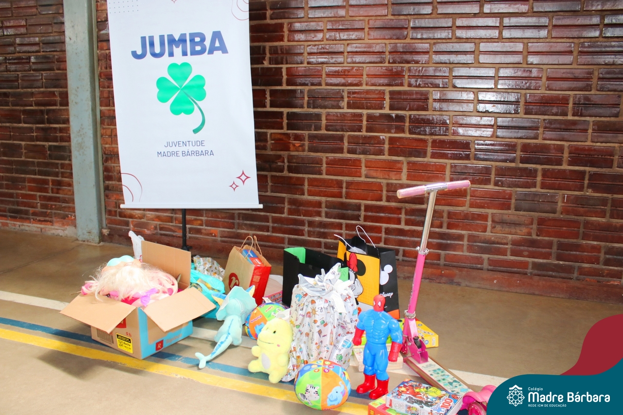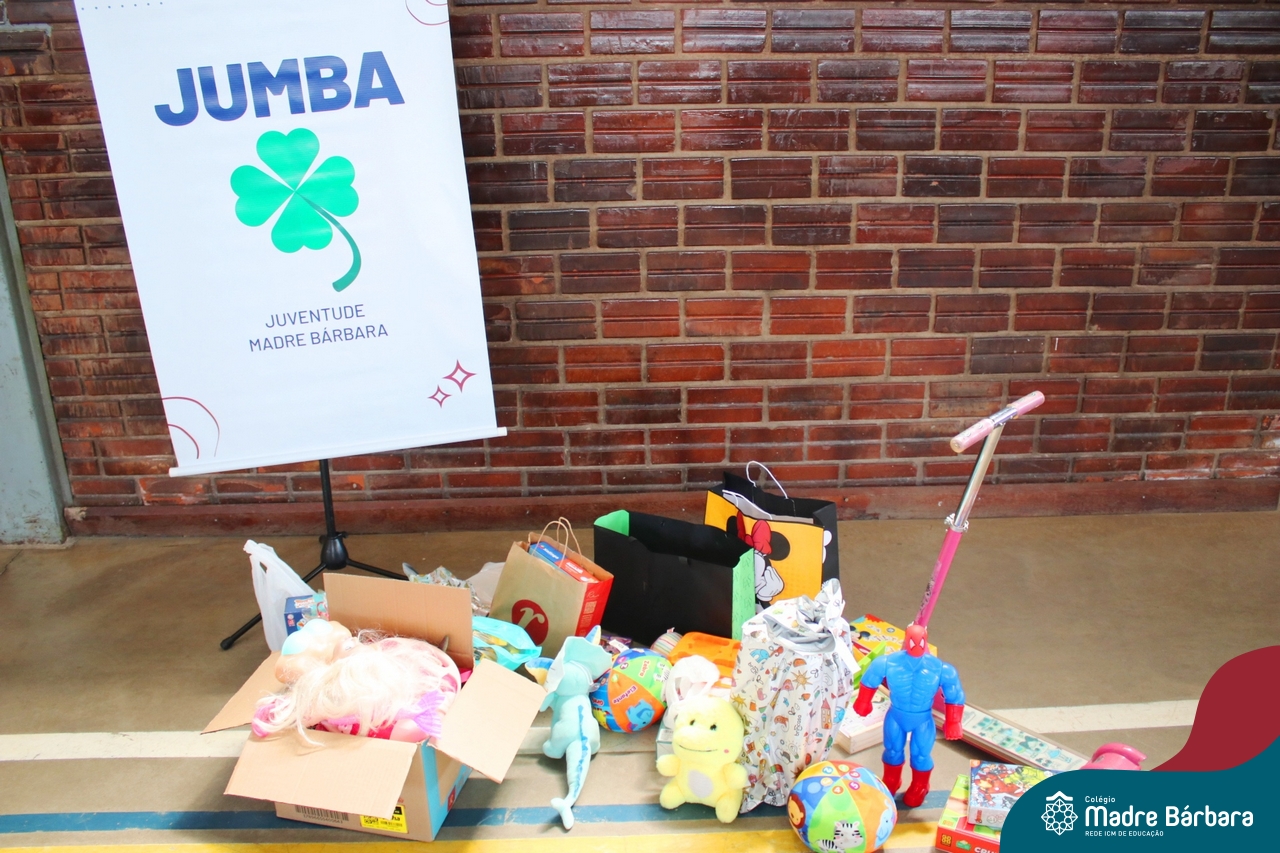 O Grupo da Juventude do Madre Bárbara realizou o Jumba em Ação com o “Passatempo com o JUMBA”, que apresentou atividades variadas para a alegria das crianças. Entre elas, cabelo Maluco, boca do palhaço, pintura no rosto, basquete, futsal e brincadeiras com corda. Participaram os Níveis 5 da Educação Infantil e os Primeiros anos dos Anos Iniciais do turno da tarde. Os alunos trouxeram um brinquedo para doação. O Rotary Club de Cruzeiro do Sul estava presente no evento para agradecer a doação e contar que os brinquedos serão encaminhados para crianças atingidas pela enchente da cidade de Cruzeiro do Sul.