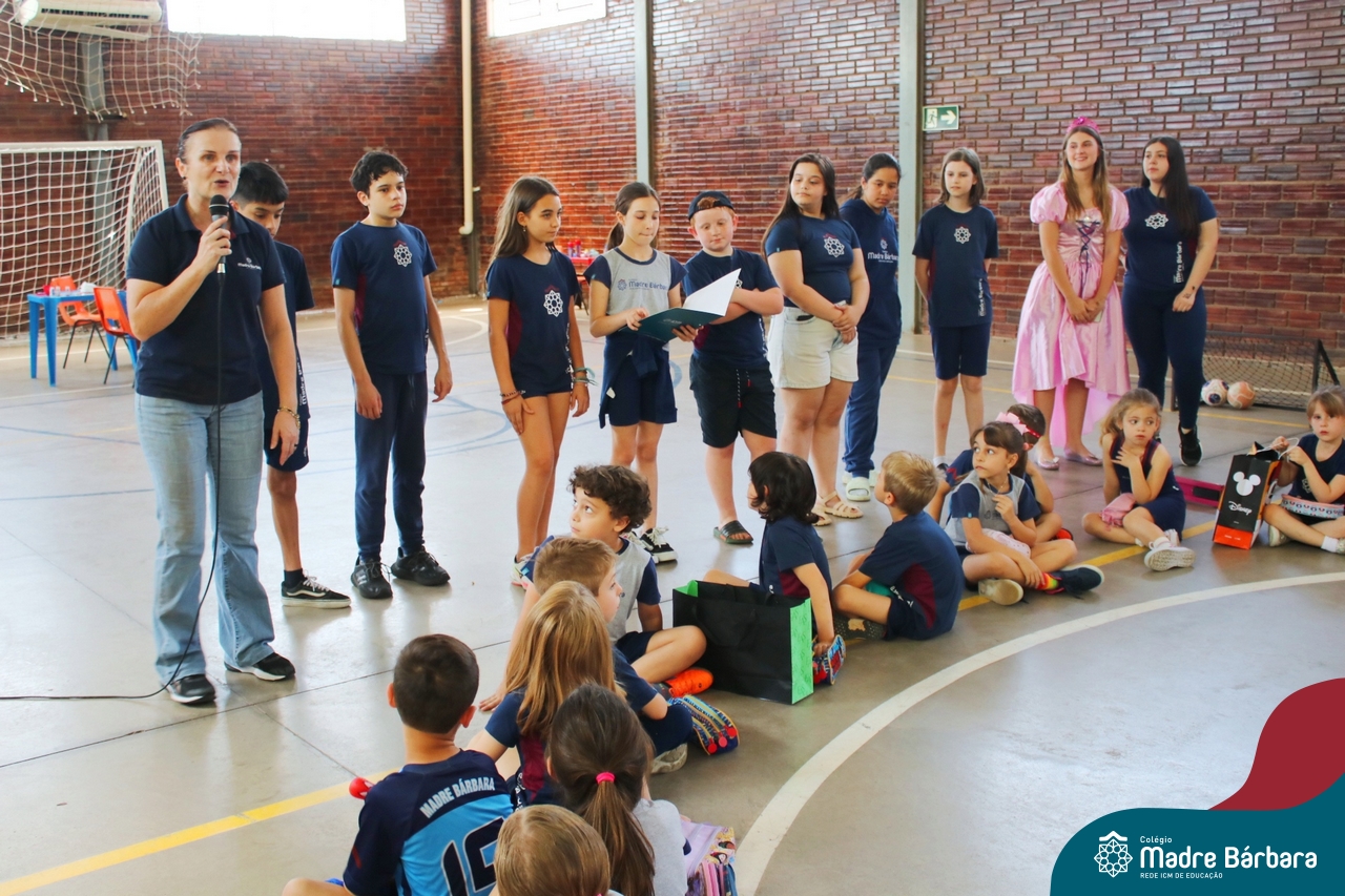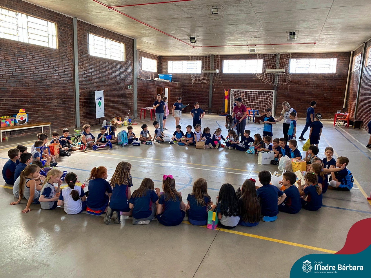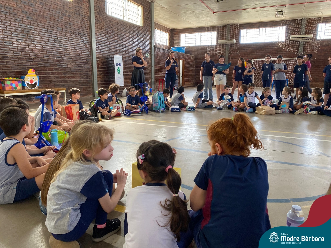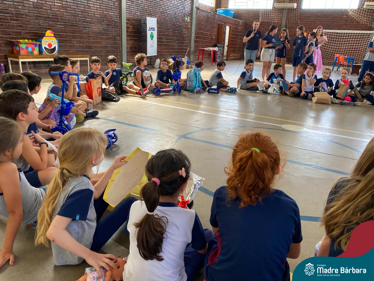 O Grupo da Juventude do Madre Bárbara realizou o Jumba em Ação com o “Passatempo com o JUMBA”, que apresentou atividades variadas para a alegria das crianças. Entre elas, cabelo Maluco, boca do palhaço, pintura no rosto, basquete, futsal e brincadeiras com corda. Participaram os Níveis 5 da Educação Infantil e os Primeiros anos dos Anos Iniciais do turno da tarde. Os alunos trouxeram um brinquedo para doação. O Rotary Club de Cruzeiro do Sul estava presente no evento para agradecer a doação e contar que os brinquedos serão encaminhados para crianças atingidas pela enchente da cidade de Cruzeiro do Sul.