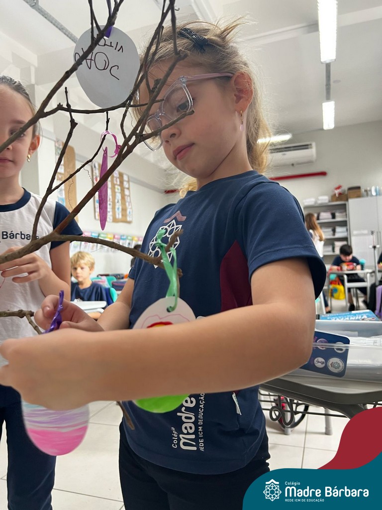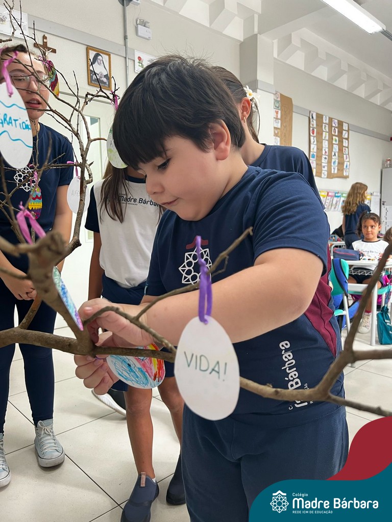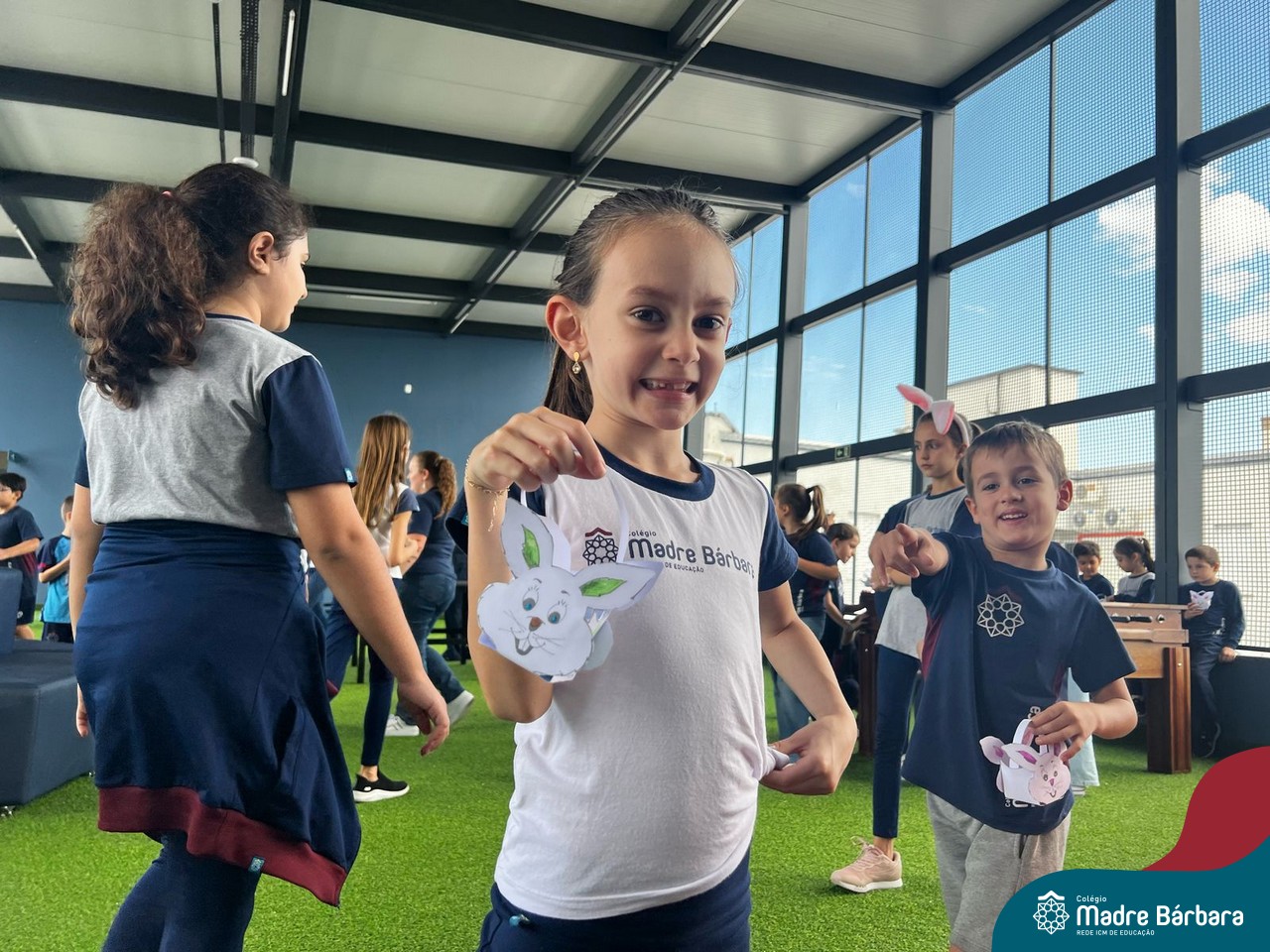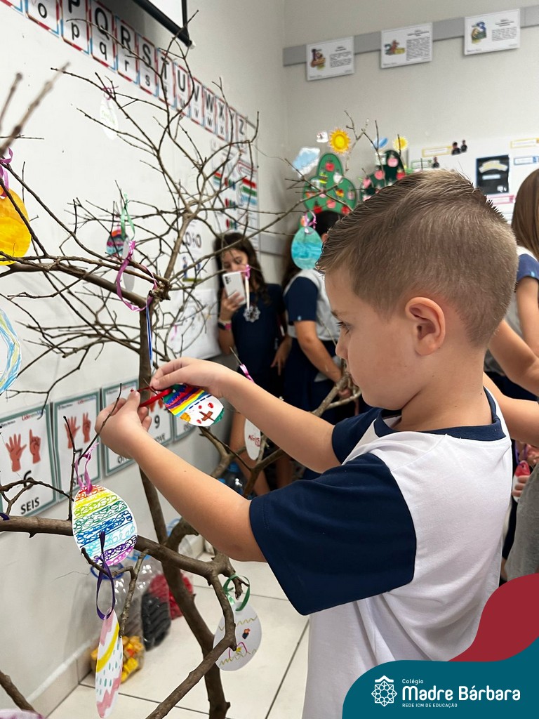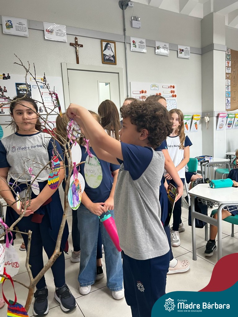 Nesta terça-feira (15.04) o Grupo de Jovens do Madre Bárbara (Jumba) realizou mais uma atividade de Páscoa. As turmas 14 e 15, dos Anos Iniciais ouviram a História da Páscoa contada pelos jovens e após coloriram ovos e enfeitaram a Osterbaum ofertada pelo grupo para cada turma. Logo mais, foram para o Espaço Verde, no quarto pavimento, onde foi feita a Caça aos Ovos. Feliz Páscoa!