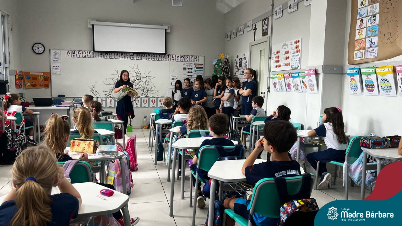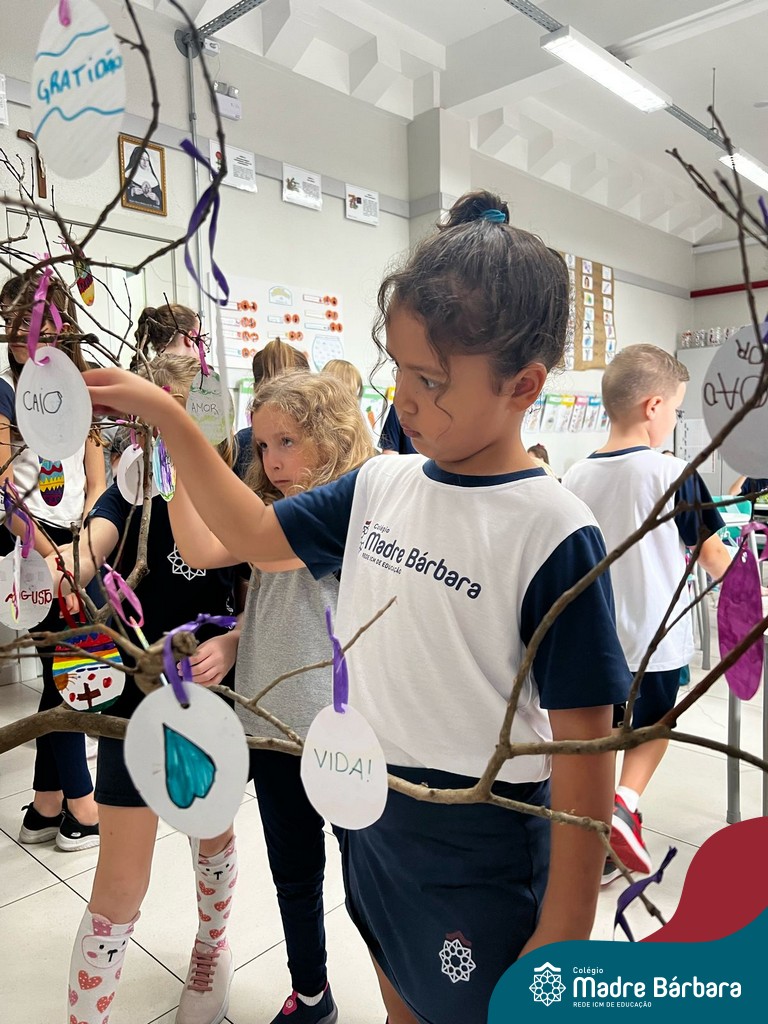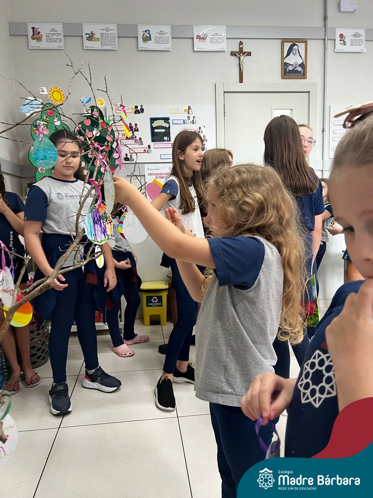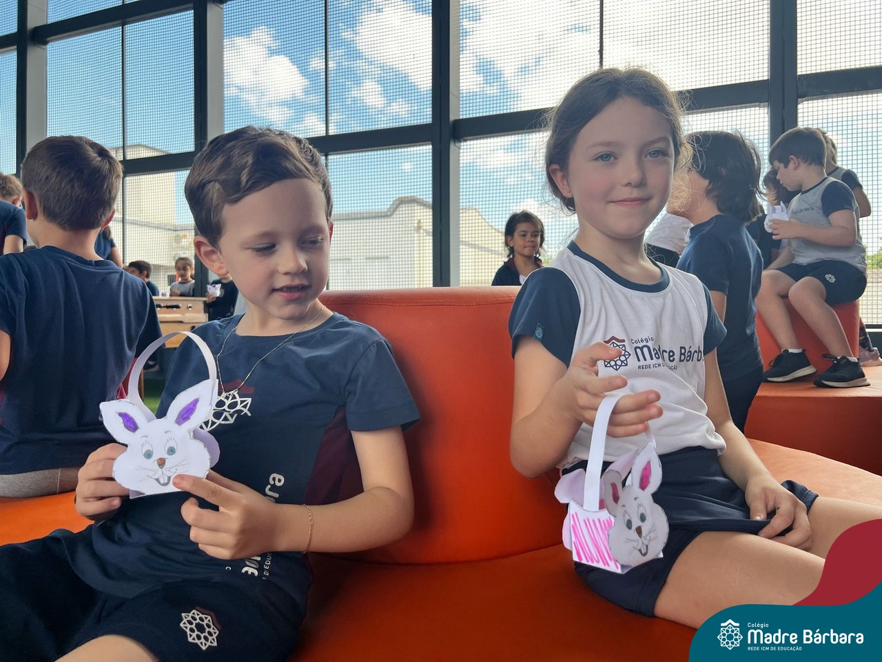 Nesta terça-feira (15.04) o Grupo de Jovens do Madre Bárbara (Jumba) realizou mais uma atividade de Páscoa. As turmas 14 e 15, dos Anos Iniciais ouviram a História da Páscoa contada pelos jovens e após coloriram ovos e enfeitaram a Osterbaum ofertada pelo grupo para cada turma. Logo mais, foram para o Espaço Verde, no quarto pavimento, onde foi feita a Caça aos Ovos. Feliz Páscoa!