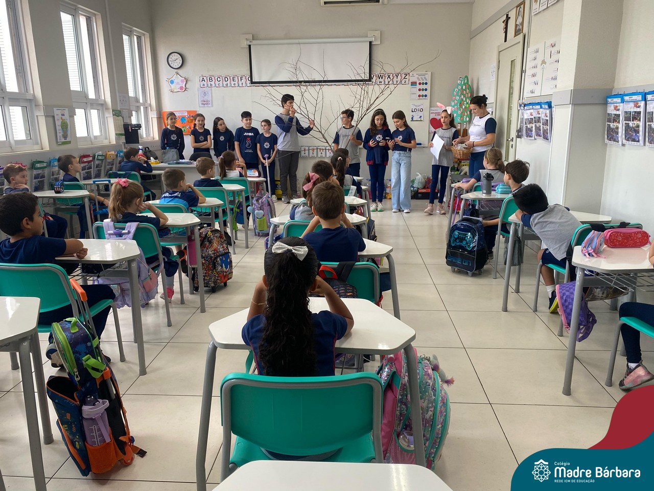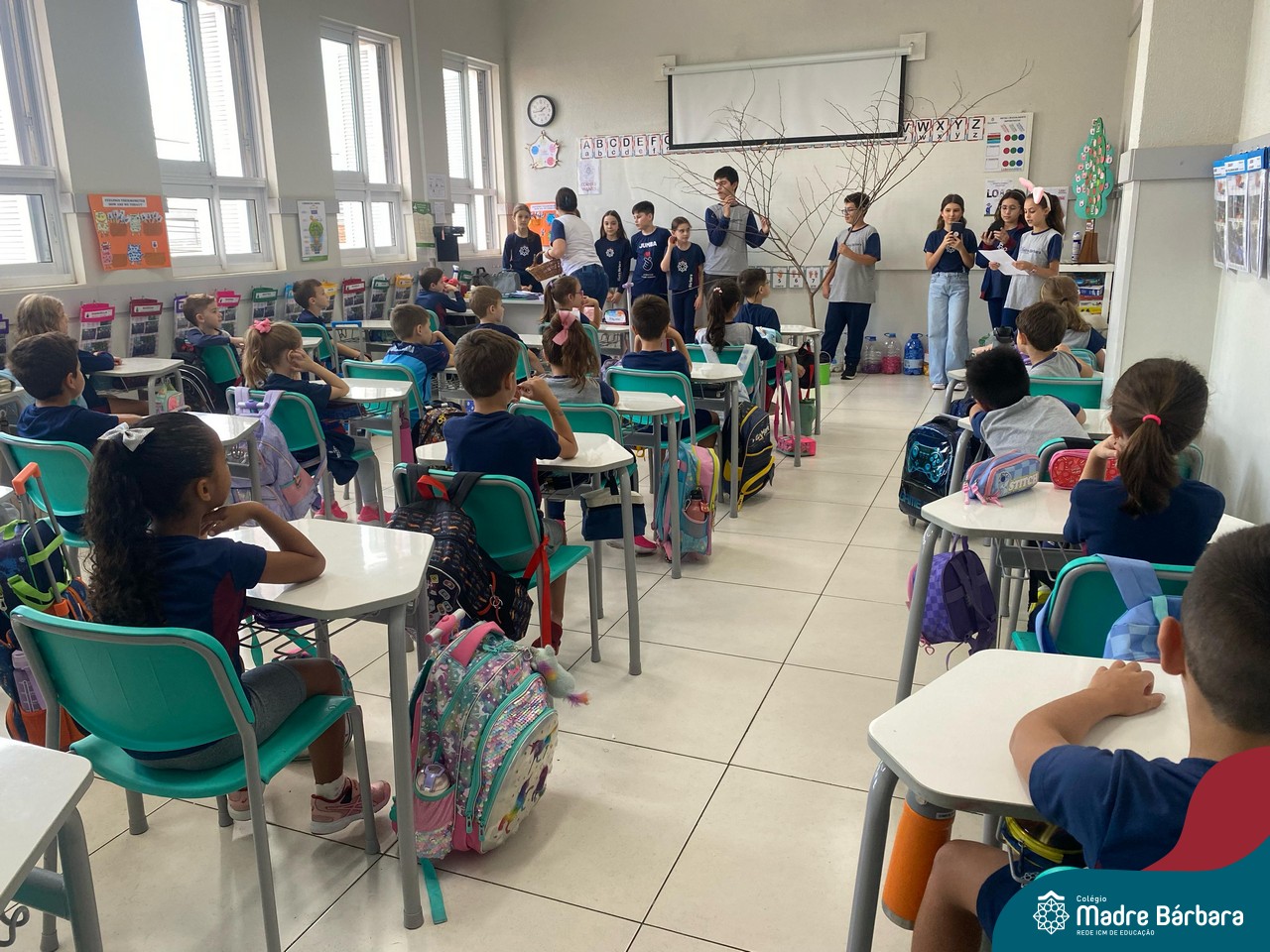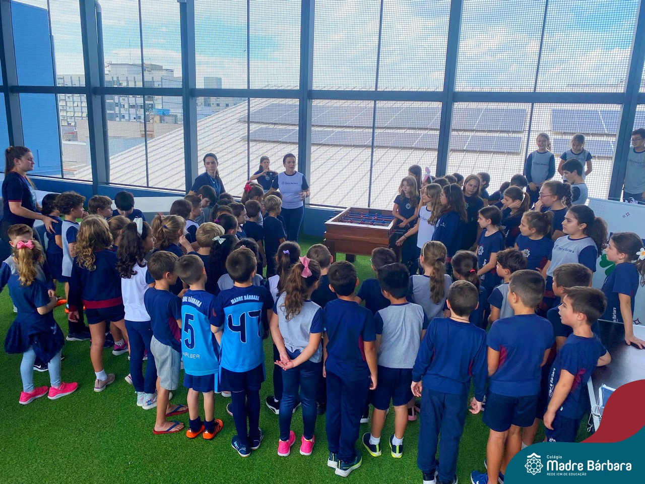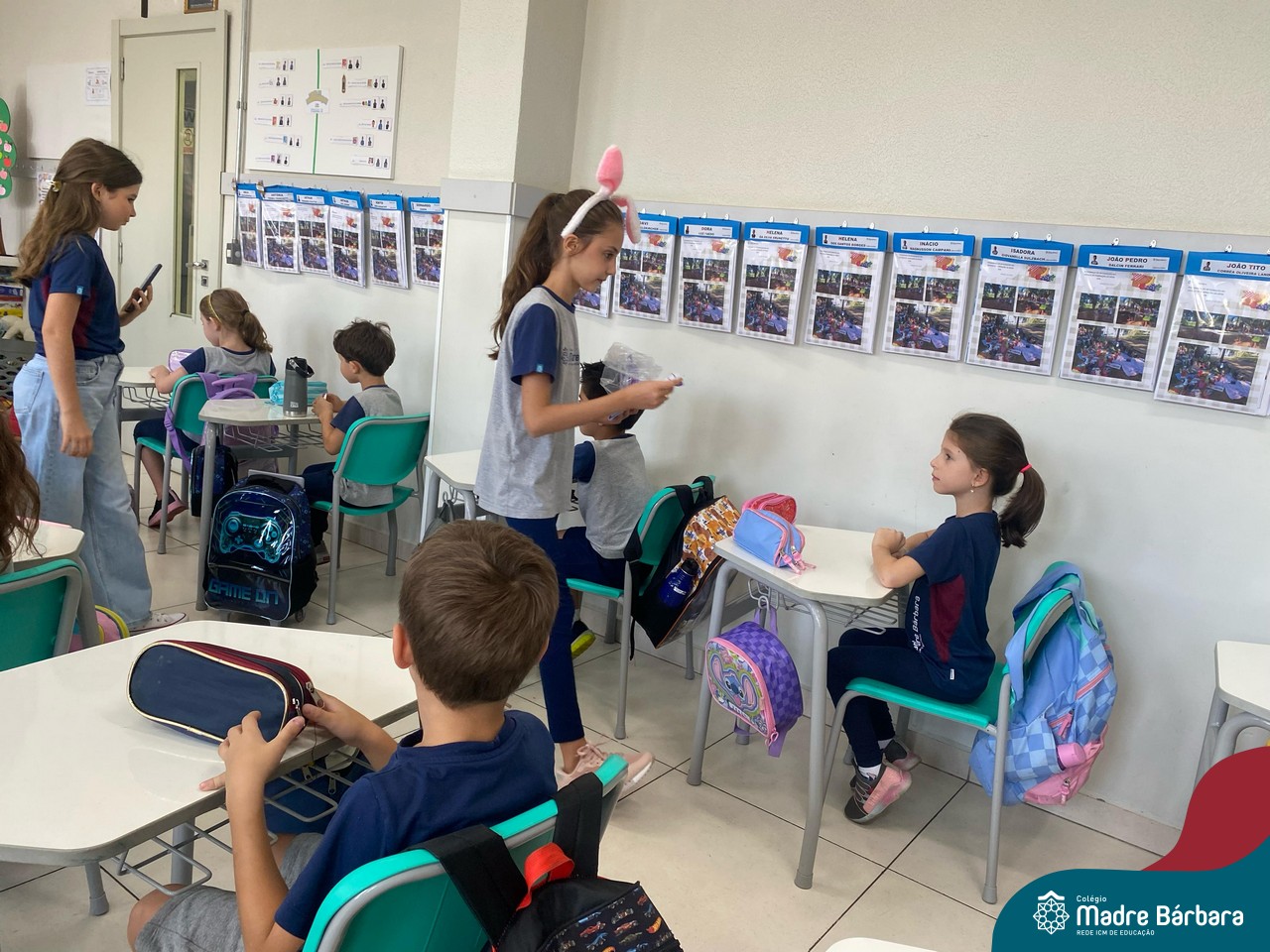 Nesta terça-feira (15.04) o Grupo de Jovens do Madre Bárbara (Jumba) realizou mais uma atividade de Páscoa. As turmas 14 e 15, dos Anos Iniciais ouviram a História da Páscoa contada pelos jovens e após coloriram ovos e enfeitaram a Osterbaum ofertada pelo grupo para cada turma. Logo mais, foram para o Espaço Verde, no quarto pavimento, onde foi feita a Caça aos Ovos. Feliz Páscoa!