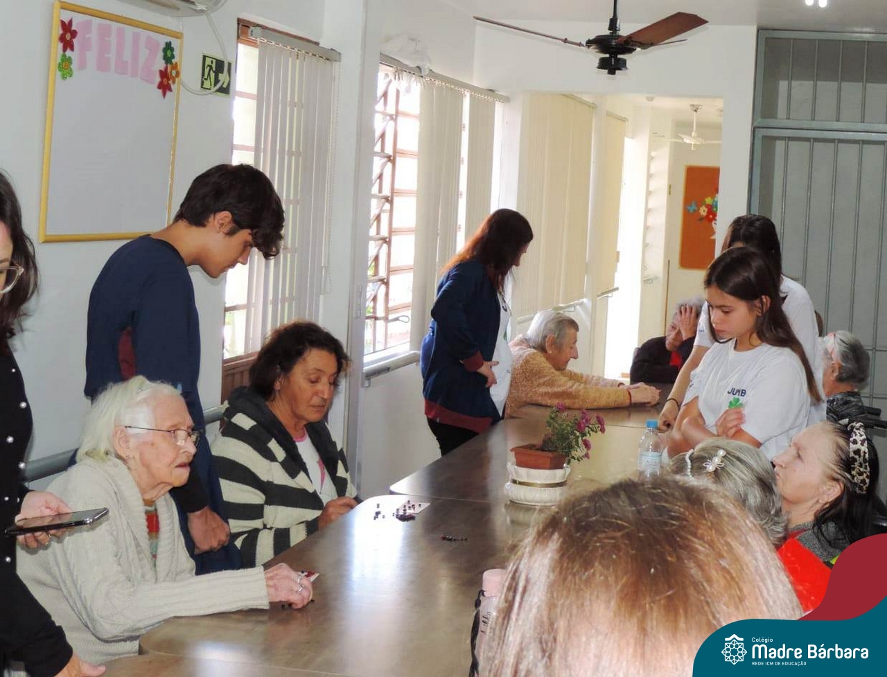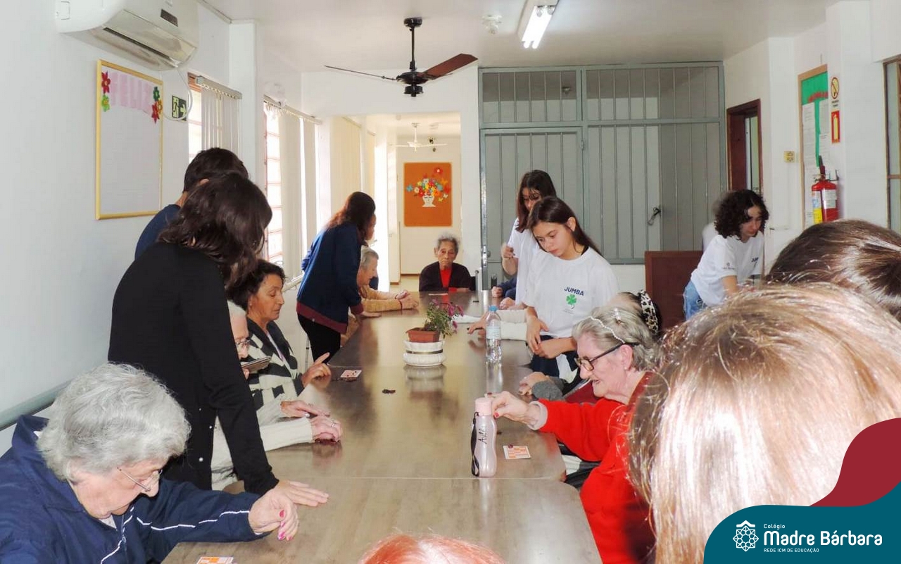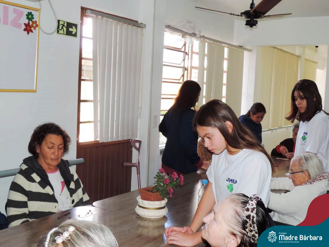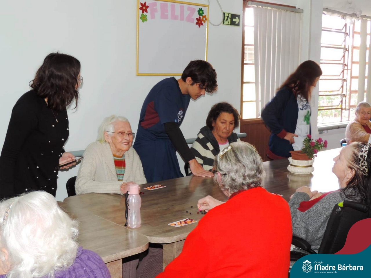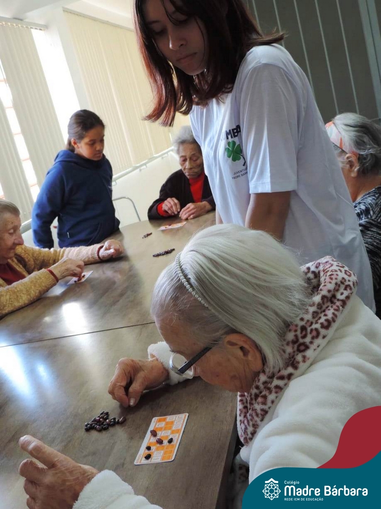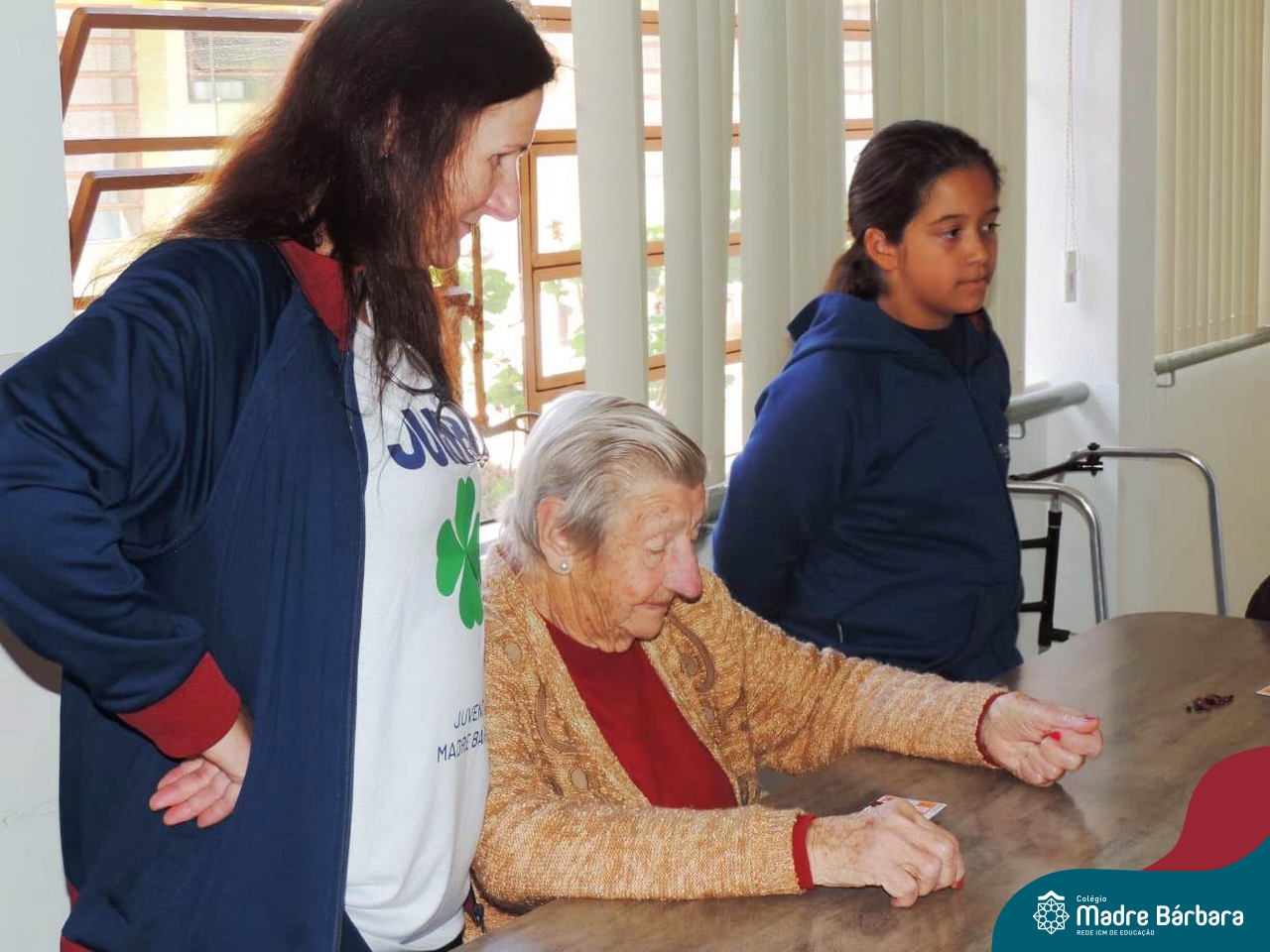 Na tarde de sexta-feira (12.05) o grupo da Juventude Madre Bárbara (Jumba) esteve visitando as senhoras da Vovólar para fazer o Bingo da Alegria. Foi momento de gratidão, carinho, de amor, também pela proximidade do Dia das Mães. Cada uma recebeu de presente um cachecol para que seja um inverno quentinho.