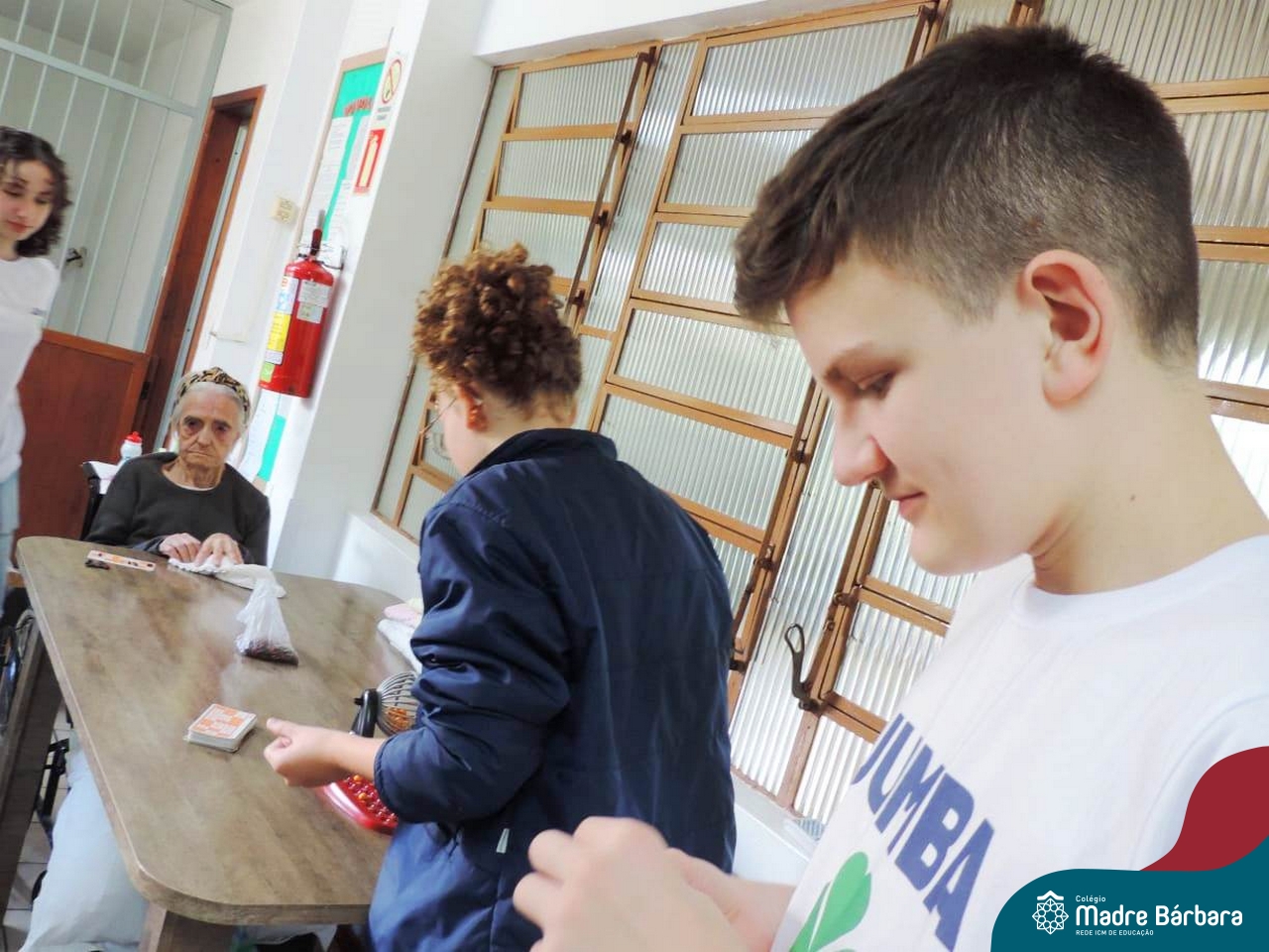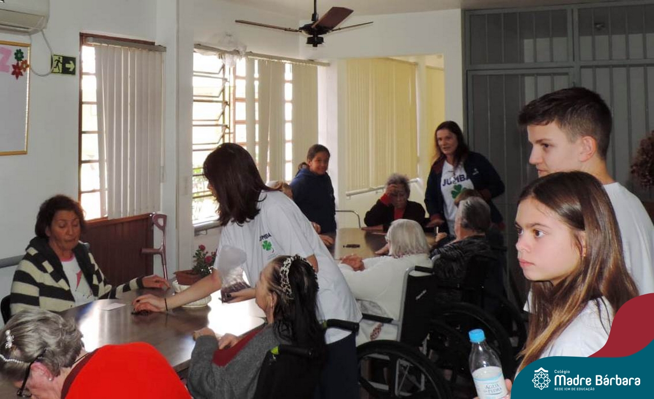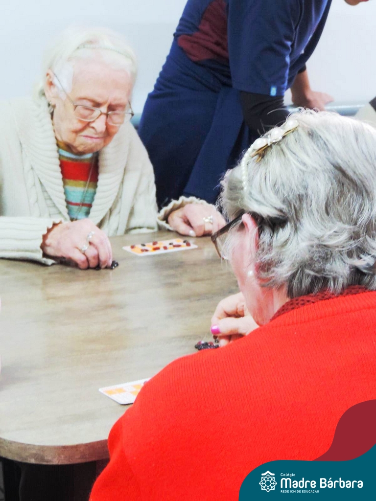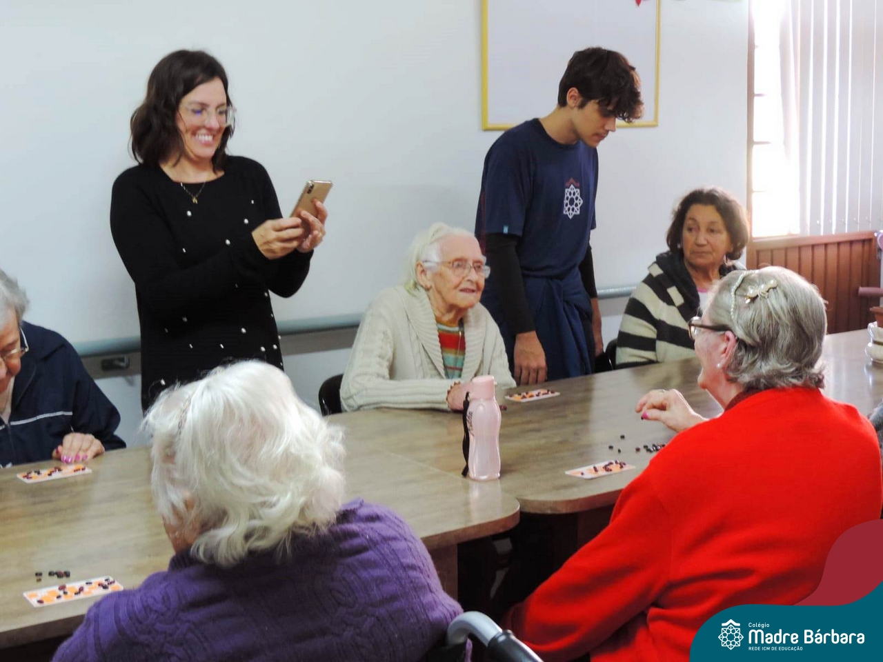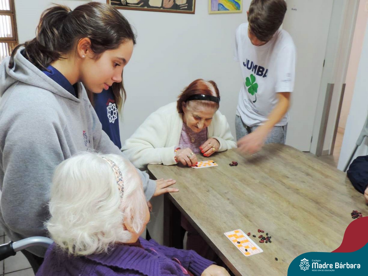 Na tarde de sexta-feira (12.05) o grupo da Juventude Madre Bárbara (Jumba) esteve visitando as senhoras da Vovólar para fazer o Bingo da Alegria. Foi momento de gratidão, carinho, de amor, também pela proximidade do Dia das Mães. Cada uma recebeu de presente um cachecol para que seja um inverno quentinho.