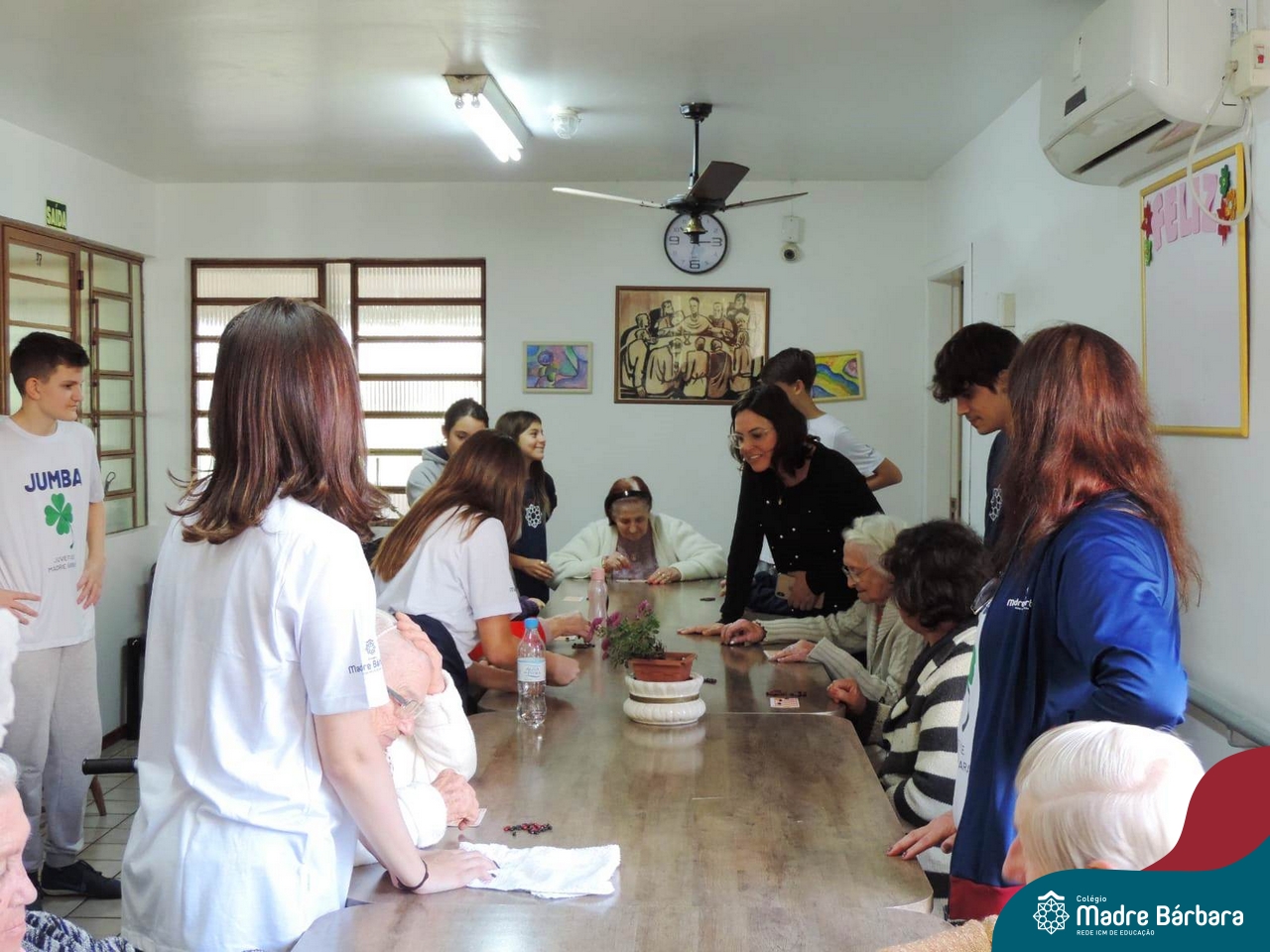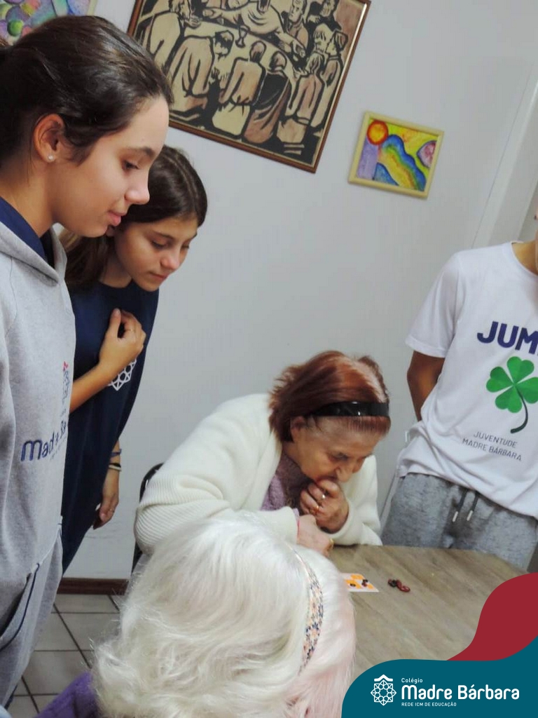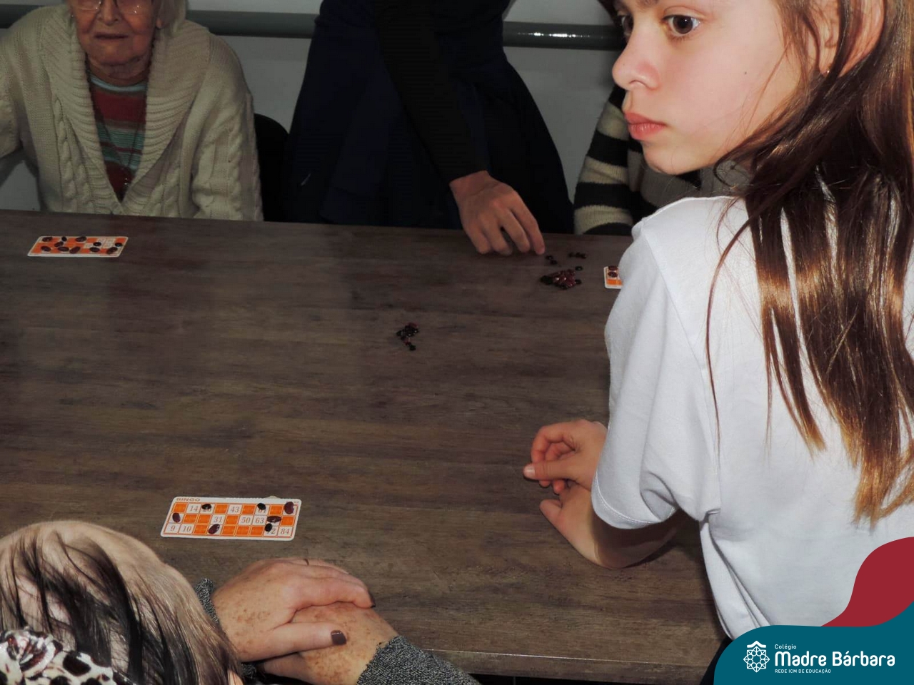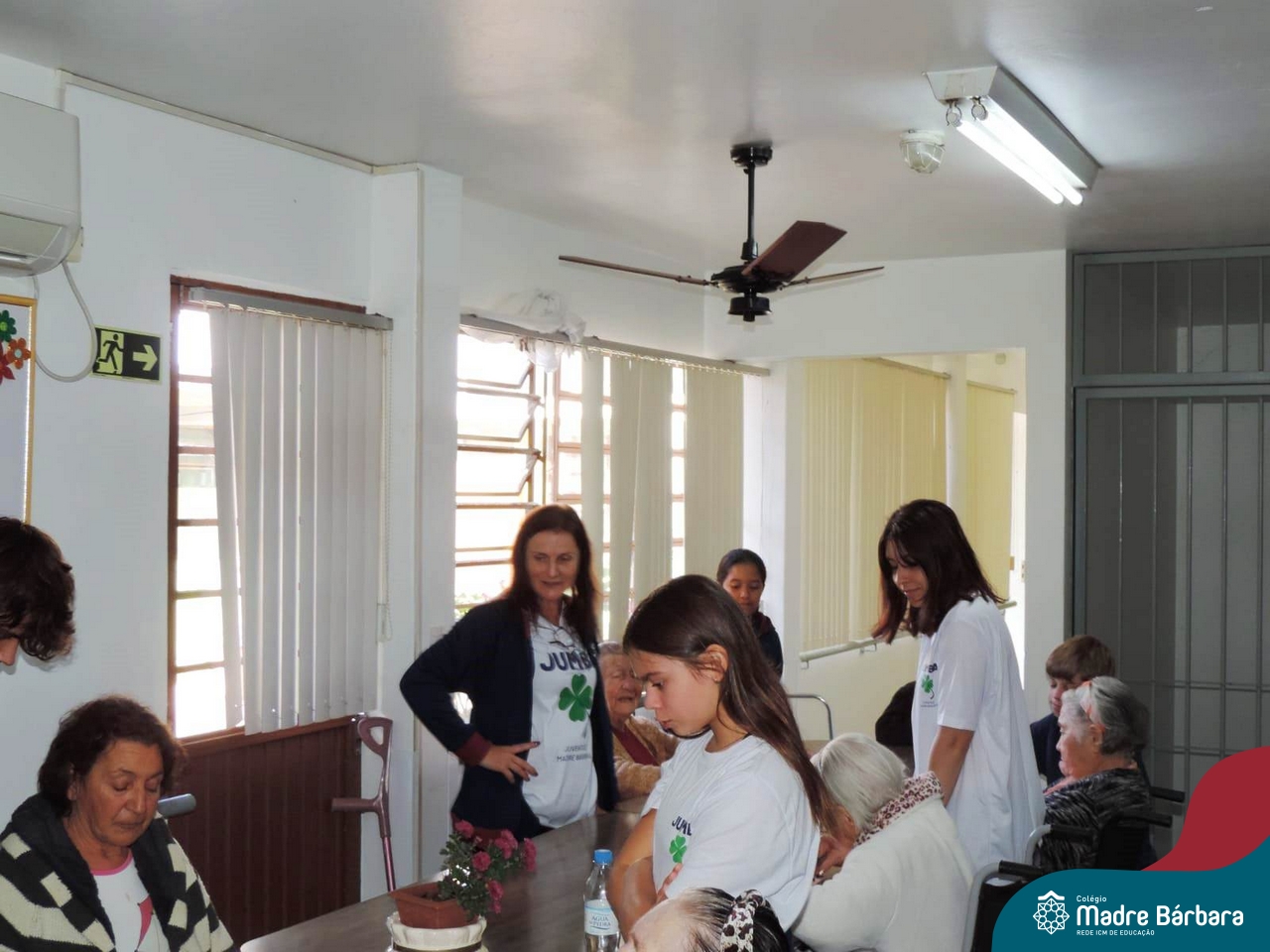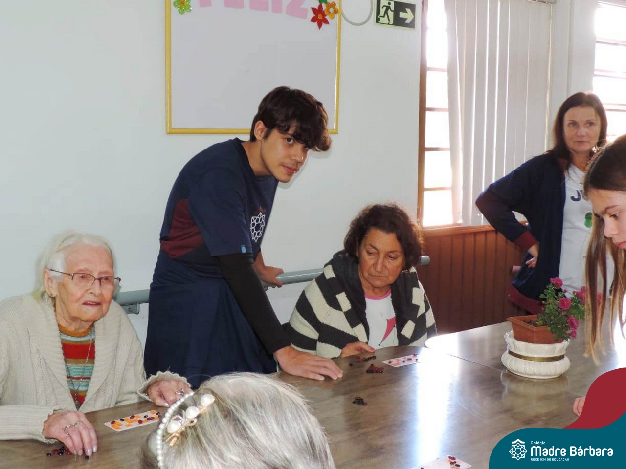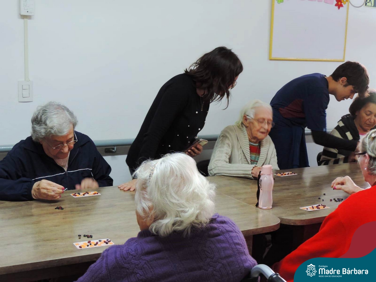 Na tarde de sexta-feira (12.05) o grupo da Juventude Madre Bárbara (Jumba) esteve visitando as senhoras da Vovólar para fazer o Bingo da Alegria. Foi momento de gratidão, carinho, de amor, também pela proximidade do Dia das Mães. Cada uma recebeu de presente um cachecol para que seja um inverno quentinho.