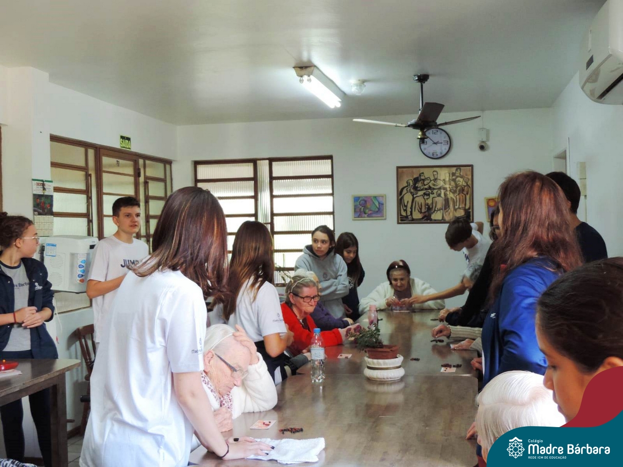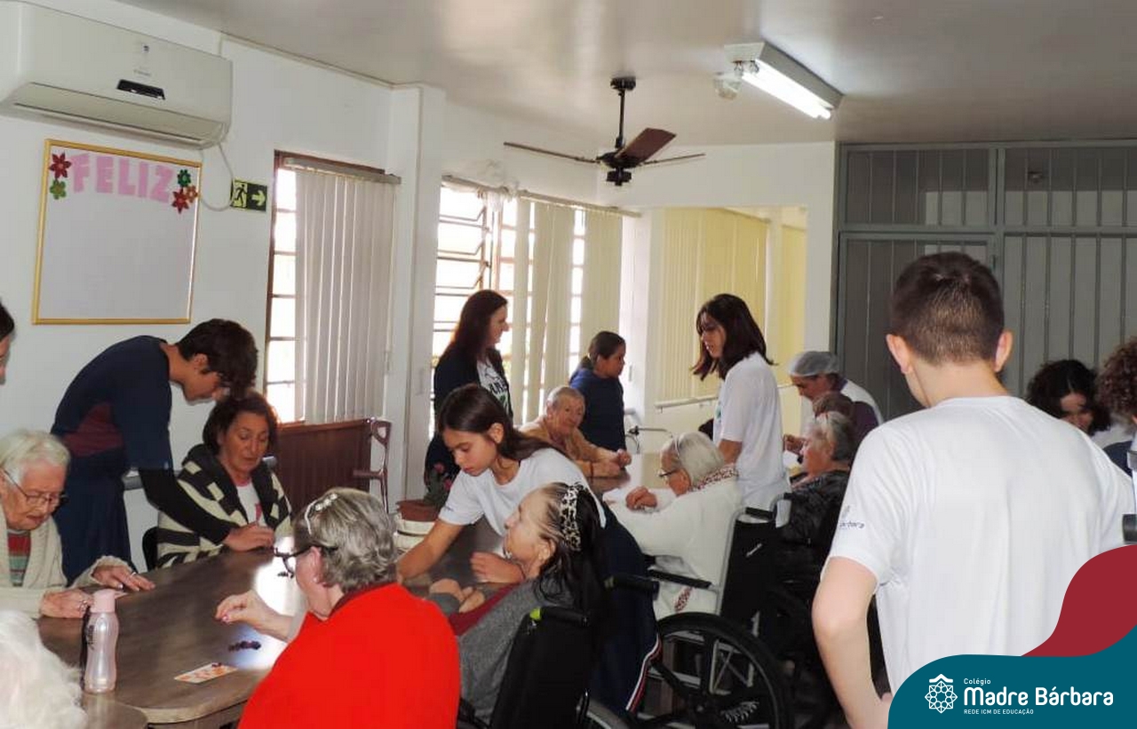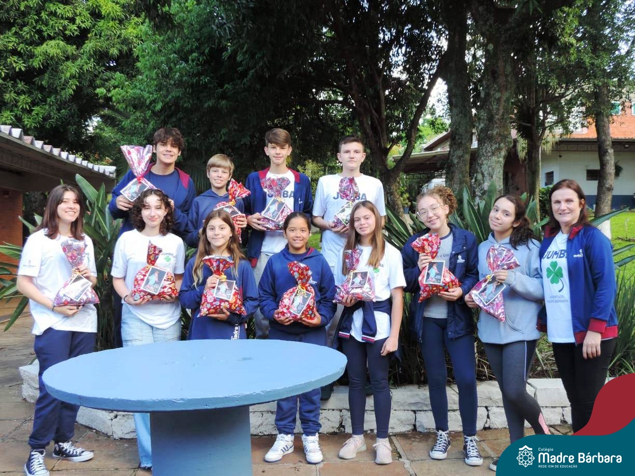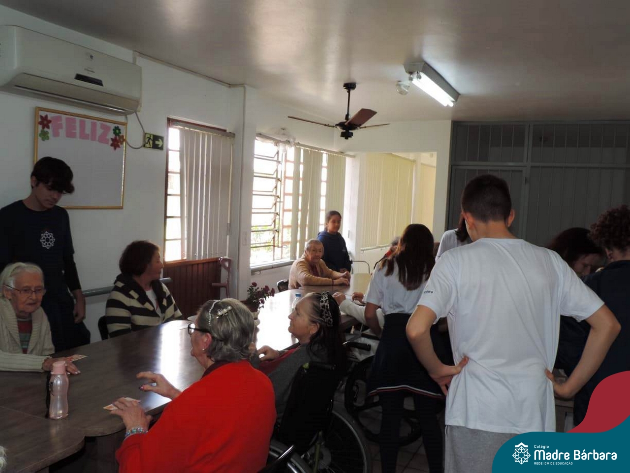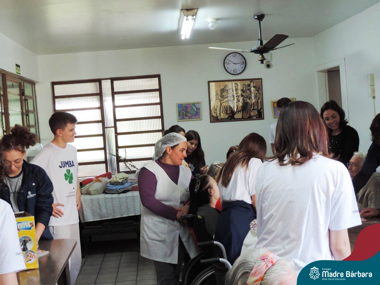 Na tarde de sexta-feira (12.05) o grupo da Juventude Madre Bárbara (Jumba) esteve visitando as senhoras da Vovólar para fazer o Bingo da Alegria. Foi momento de gratidão, carinho, de amor, também pela proximidade do Dia das Mães. Cada uma recebeu de presente um cachecol para que seja um inverno quentinho.