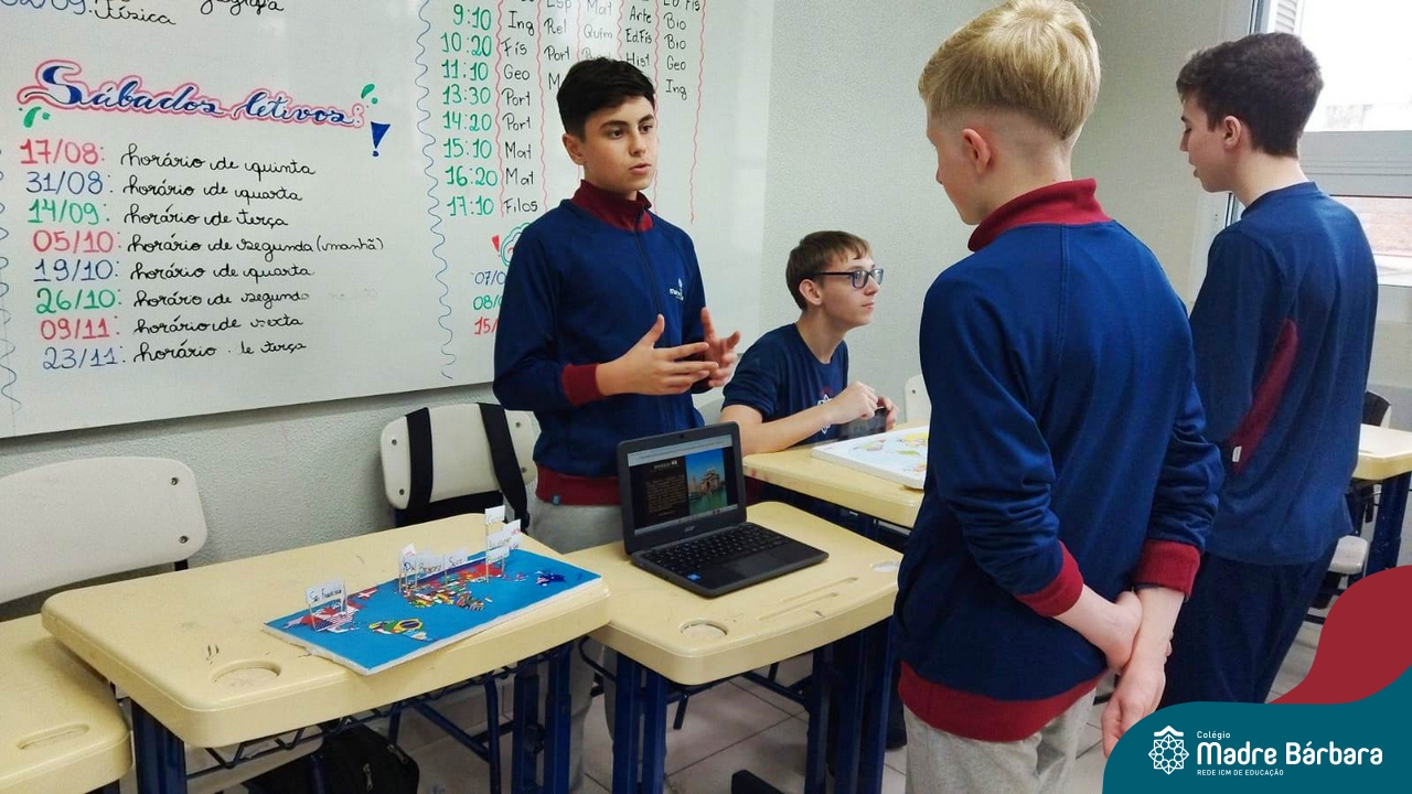 Os alunos das turmas 91 e 92 leram a obra literária “A volta ao mundo em 80 dias”, de Júlio Verne. Após a leitura, foram desafiados pela prof. Francieli Winck a reproduzirem a volta ao mundo através da elaboração de mapas. Em grupos, tiveram de explicar o caminho pelo qual Sr. Fogg e Passepartout passaram, bem como os principais acontecimentos em cada local. Os estudantes foram criativos e dedicados!