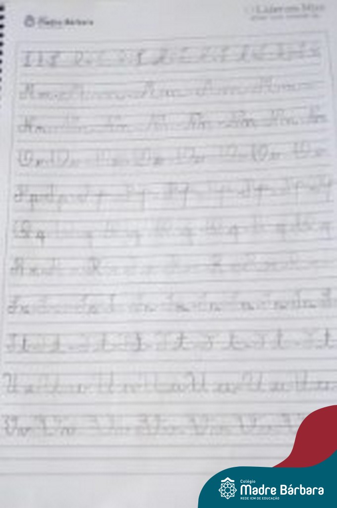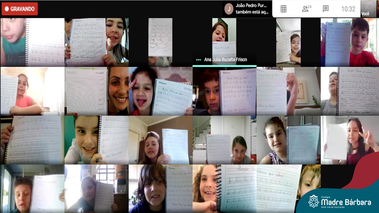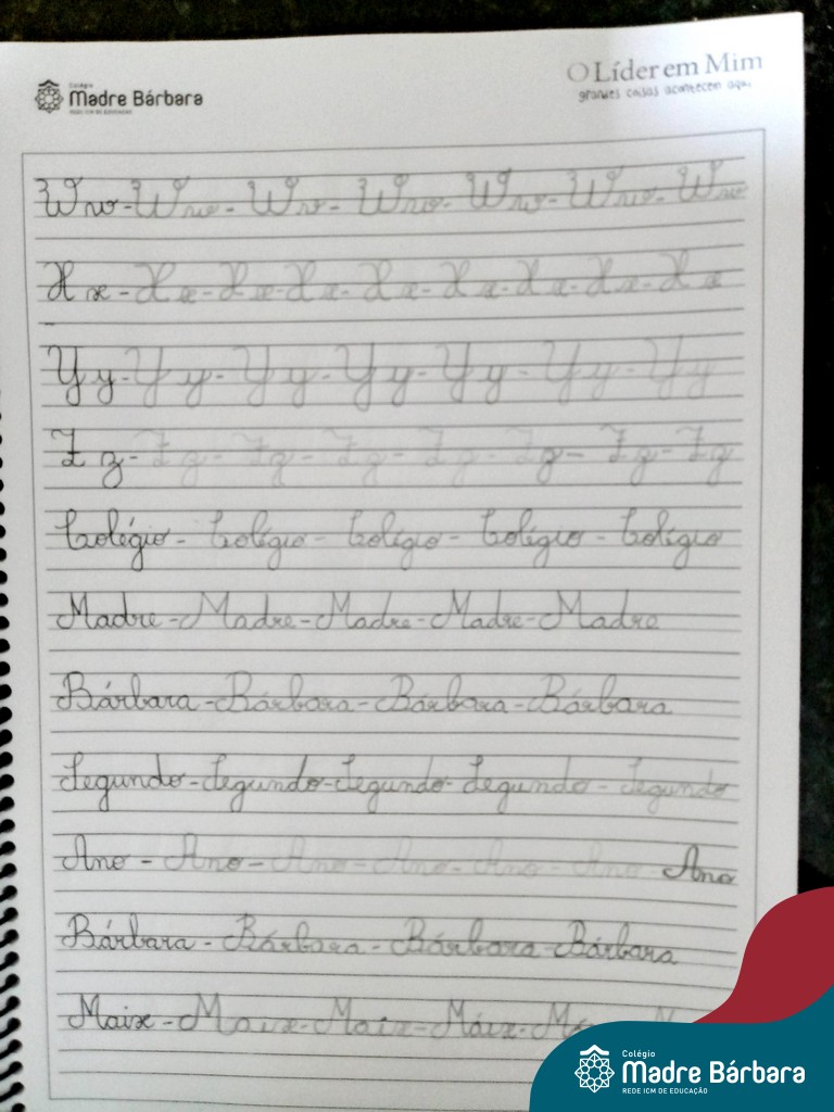 Durante o mês de setembro os alunos dos segundos anos do colégio Madre Bárbara iniciaram com o estudo sobre a letra cursiva, de forma online. Esse ano foi uma experiência marcante para os alunos e também para as professoras que tiveram que adaptar-se diante da necessidade do atual momento.