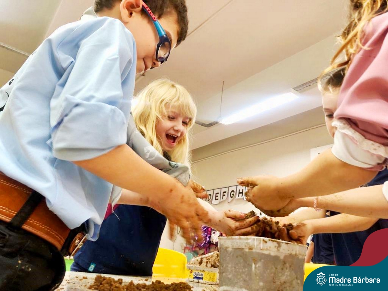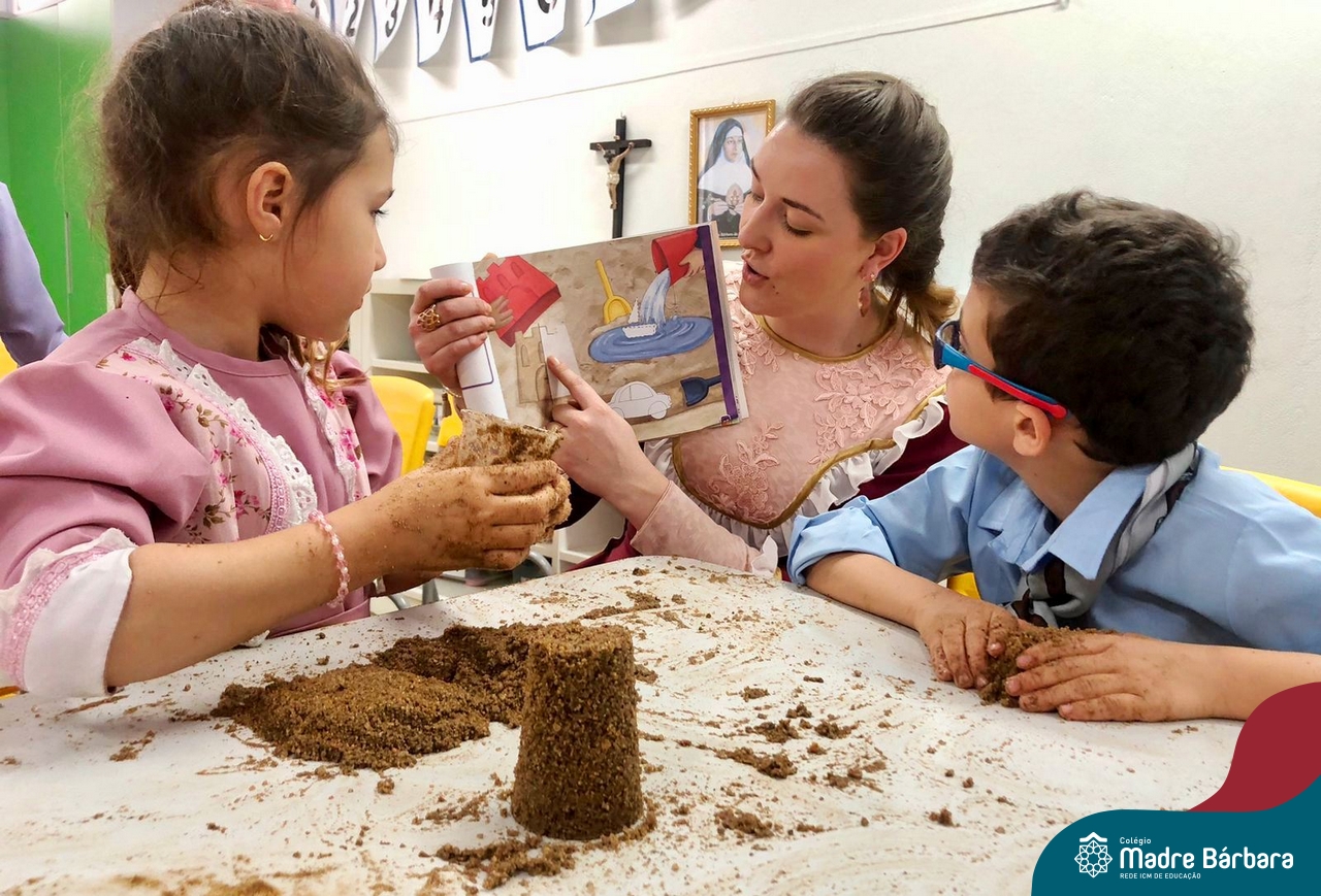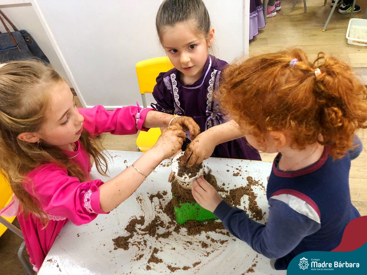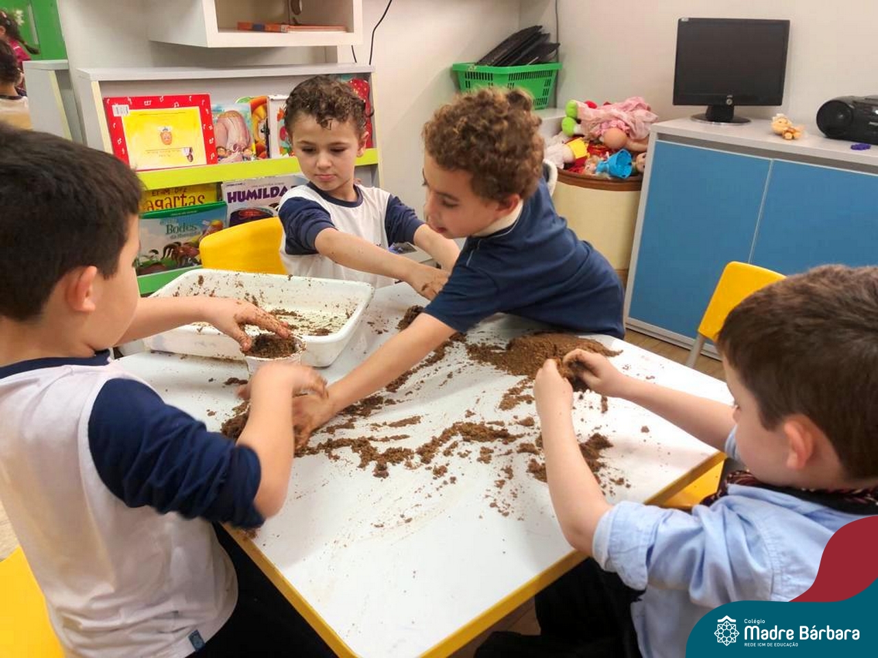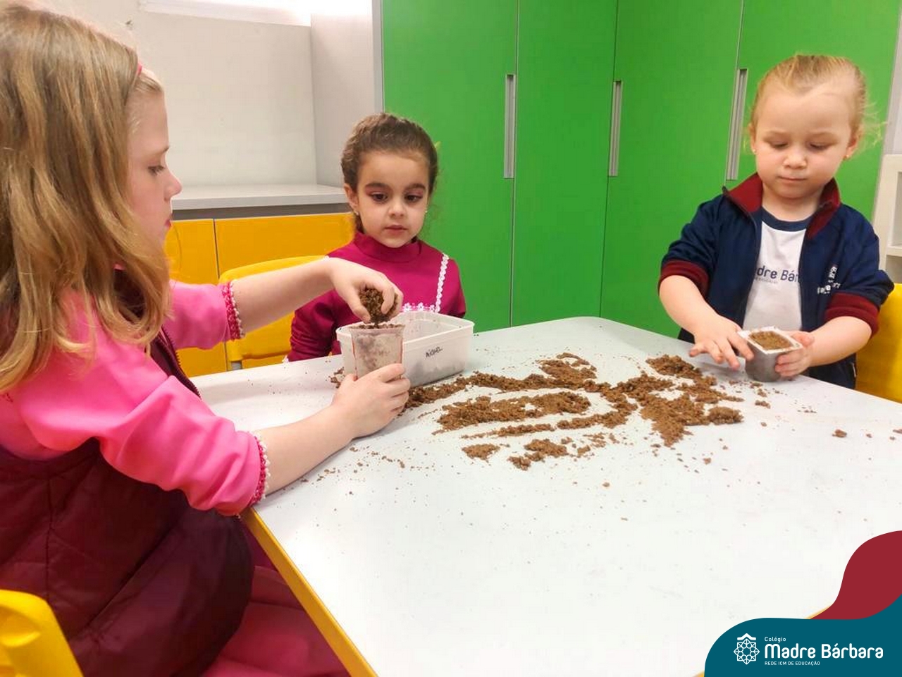 The sensations and experiences we can provide enrich the activities with our students! In the bilingual program classes, level 5D students were encouraged to explore the sand. The Teacher provided a moment for the children to play and build castles in the sand and other things they could imagine because the topics of the classes are being the beach, sand, sea, island and the animals that inhabit these places. It was a class full of discoveries and creativity!