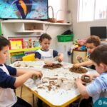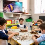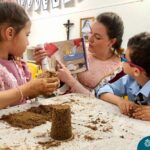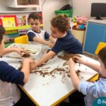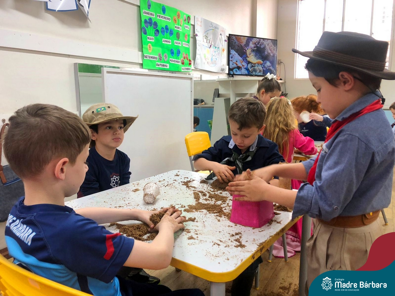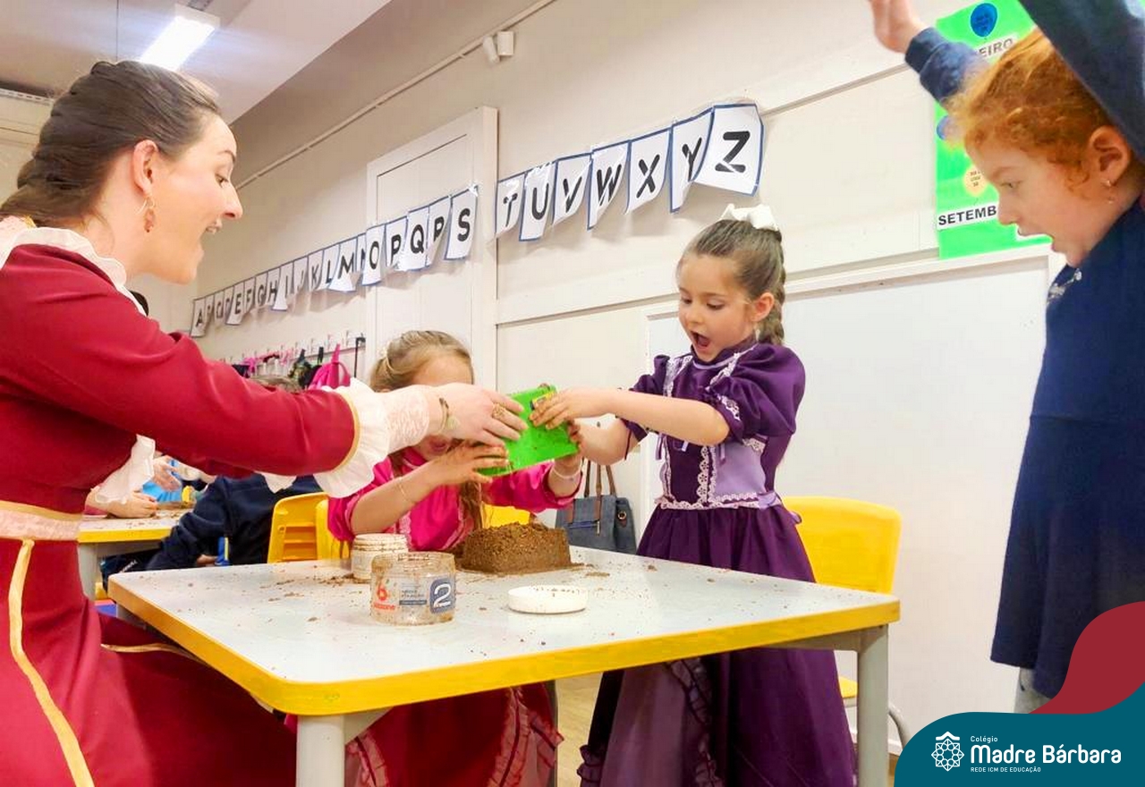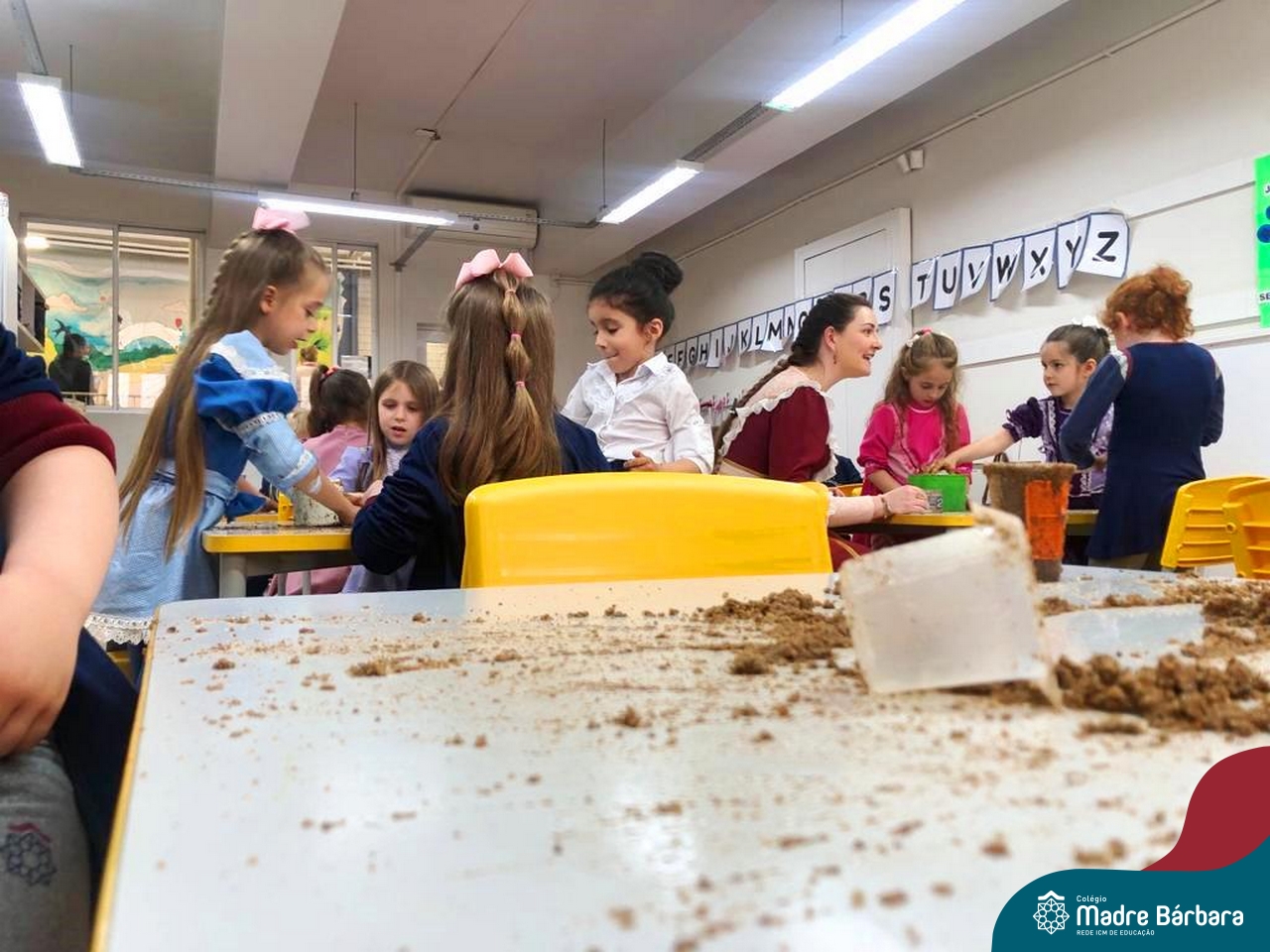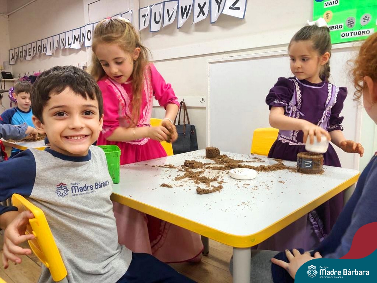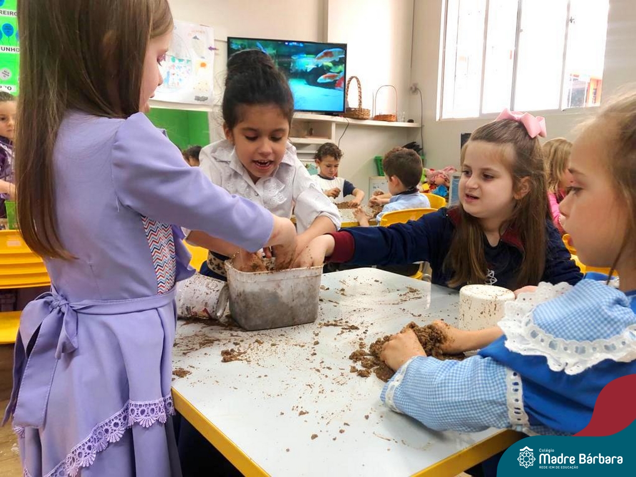 The sensations and experiences we can provide enrich the activities with our students! In the bilingual program classes, level 5D students were encouraged to explore the sand. The Teacher provided a moment for the children to play and build castles in the sand and other things they could imagine because the topics of the classes are being the beach, sand, sea, island and the animals that inhabit these places. It was a class full of discoveries and creativity!