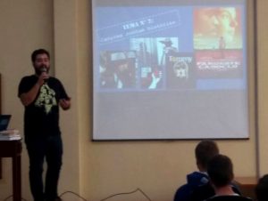 O palestrante Vinícius Rodrigues, que é professor de literatura e atua em projetos do Sesc, como palestrante, oficineiro e músico, discutiu sobre a relação do Rock e a Literatura, que é de influência mútua e diversificada desde primórdios do gênero musical. Há compositores roqueiros que se abastecem constantemente da tradição literária como referência para suas criações, assim como o rock é referenciado em obras e há canções que abastecem a própria literatura como influência.