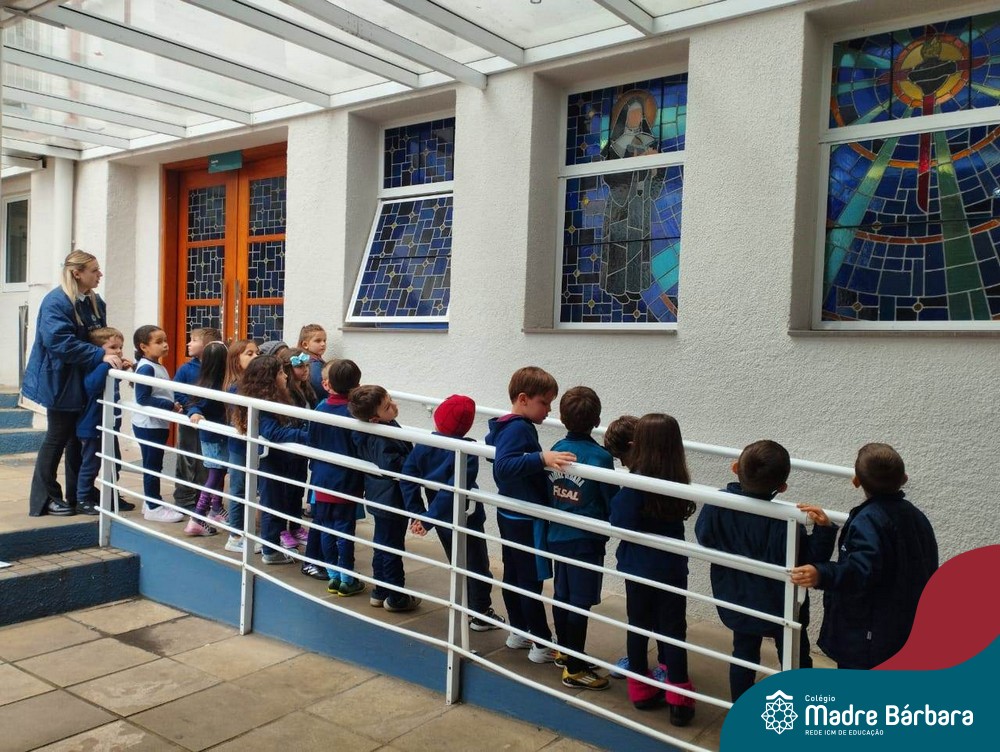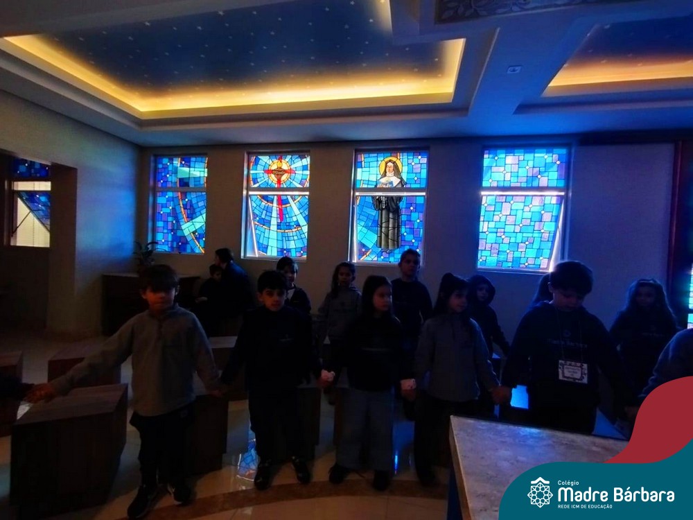 Foi em um momento de silêncio e encantamento que os olhos curiosos das crianças se voltaram para os vitrais da capela do colégio. As cores refletiam com a luz do sol, fascinadas observaram imaginaram, perguntaram e sentiram.
