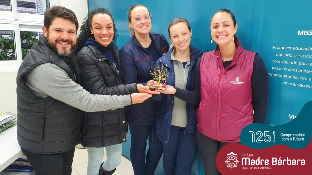 Nos dia 09 e 10.06 ocorreu em São Paulo, a Convenção Líder em Mim, em comemoração aos 10 anos do programa no Brasil. O encontro reuniu palestras sobre o programa com experts da área com temas sobre o futuro da educação e também contou com premiações das escolas parceiras. O Colégio Madre Bárbara – Rede ICM orgulha-se de ter recebido a premiação como escola Referência do Portal Líder em Mim, entre 530 escolas brasileiras. O troféu foi entregue para a Equipe Farol no dia 21.06, pelo assessor Ênio Junior. Esta foi mais uma forma de reconhecer o empenho e sinergia de toda a equipe de professores dos Anos Iniciais do CMB.