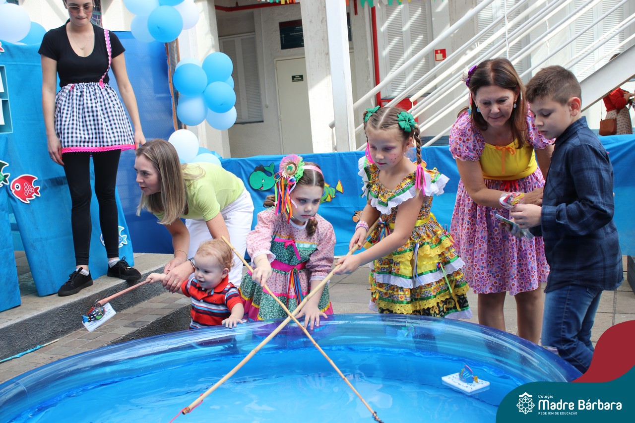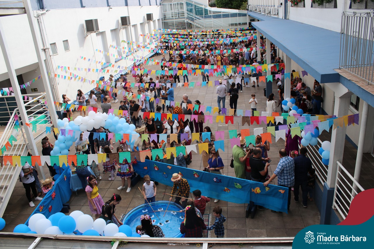 A previsão de instabilidade no tempo não impediu a realização do Arraiá do Colégio Madre Bárbara – Rede ICM, neste sábado (10.06) e todos puderam aproveitar um lindo dia! O evento iniciou às 9h30min e se estendeu até às 18h30min, contando com apresentações dos nossos lindos caipiras dos Níveis 4 da Educação Infantil até o 5º ano do Ensino Fundamental – Anos Iniciais. O Arraiá contou as brincadeiras: forno de bruxa, pescaria e brinquedos infláveis. Além disso, as comidas típicas de São João estavam deliciosas. Agradecemos a presença das famílias e de toda a comunidade escolar. Foi um dia especial de Arraiá e alegria!