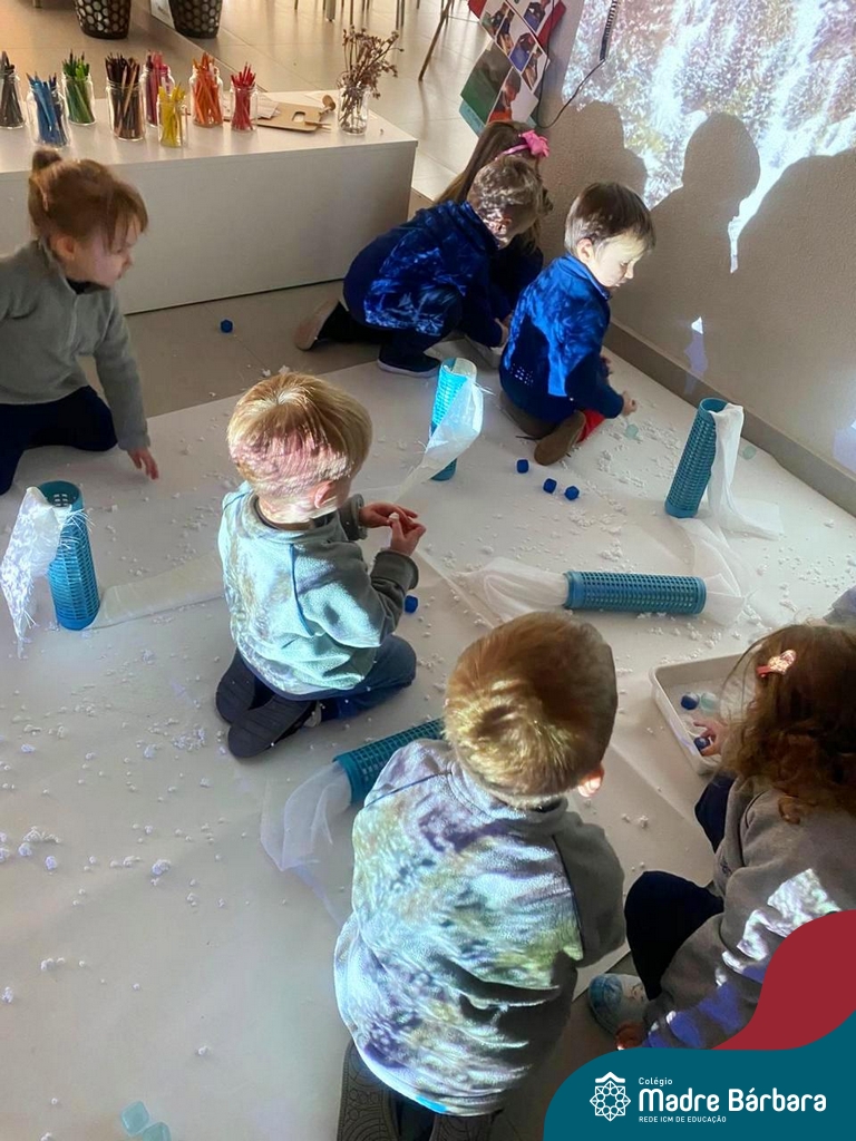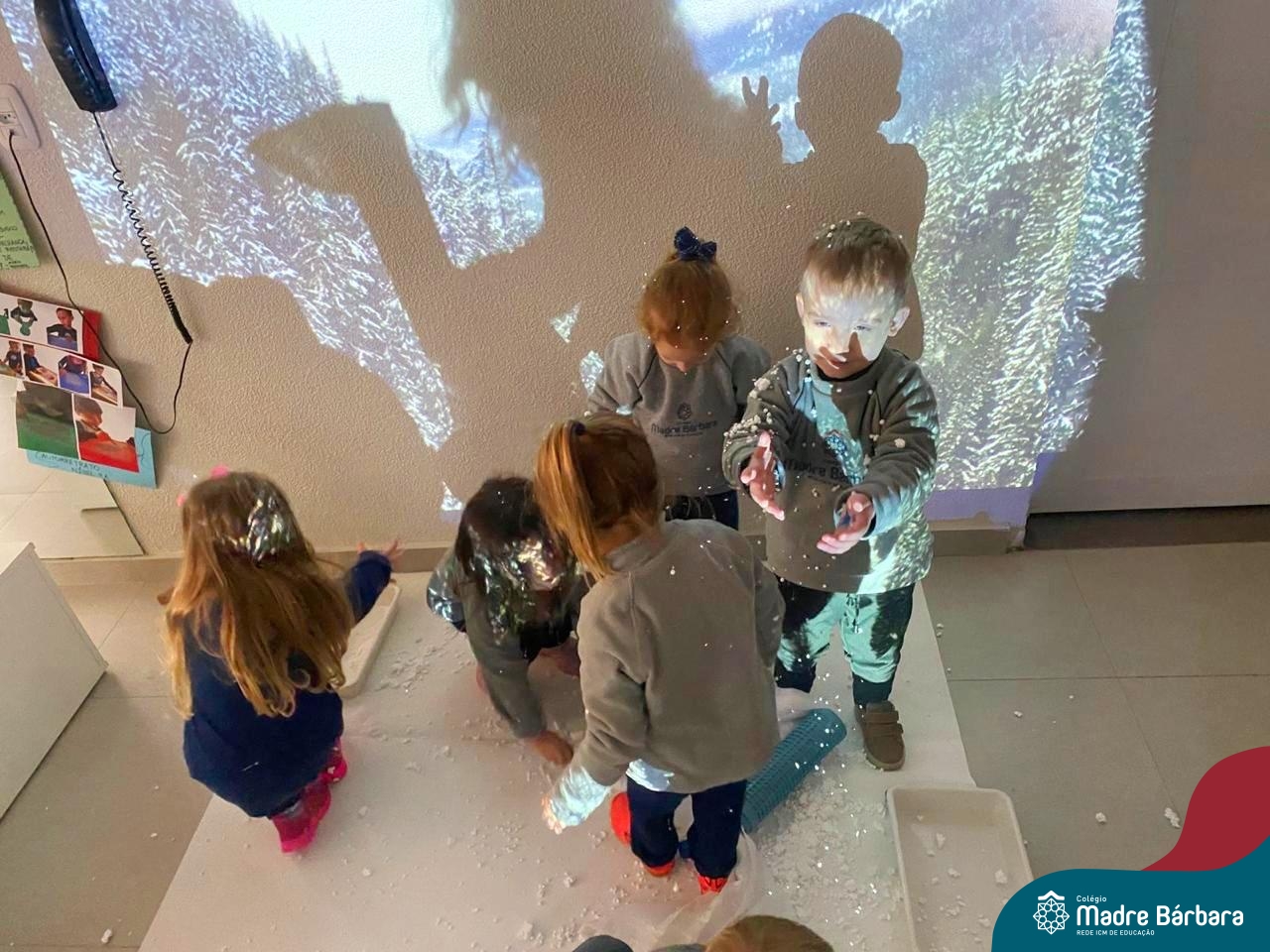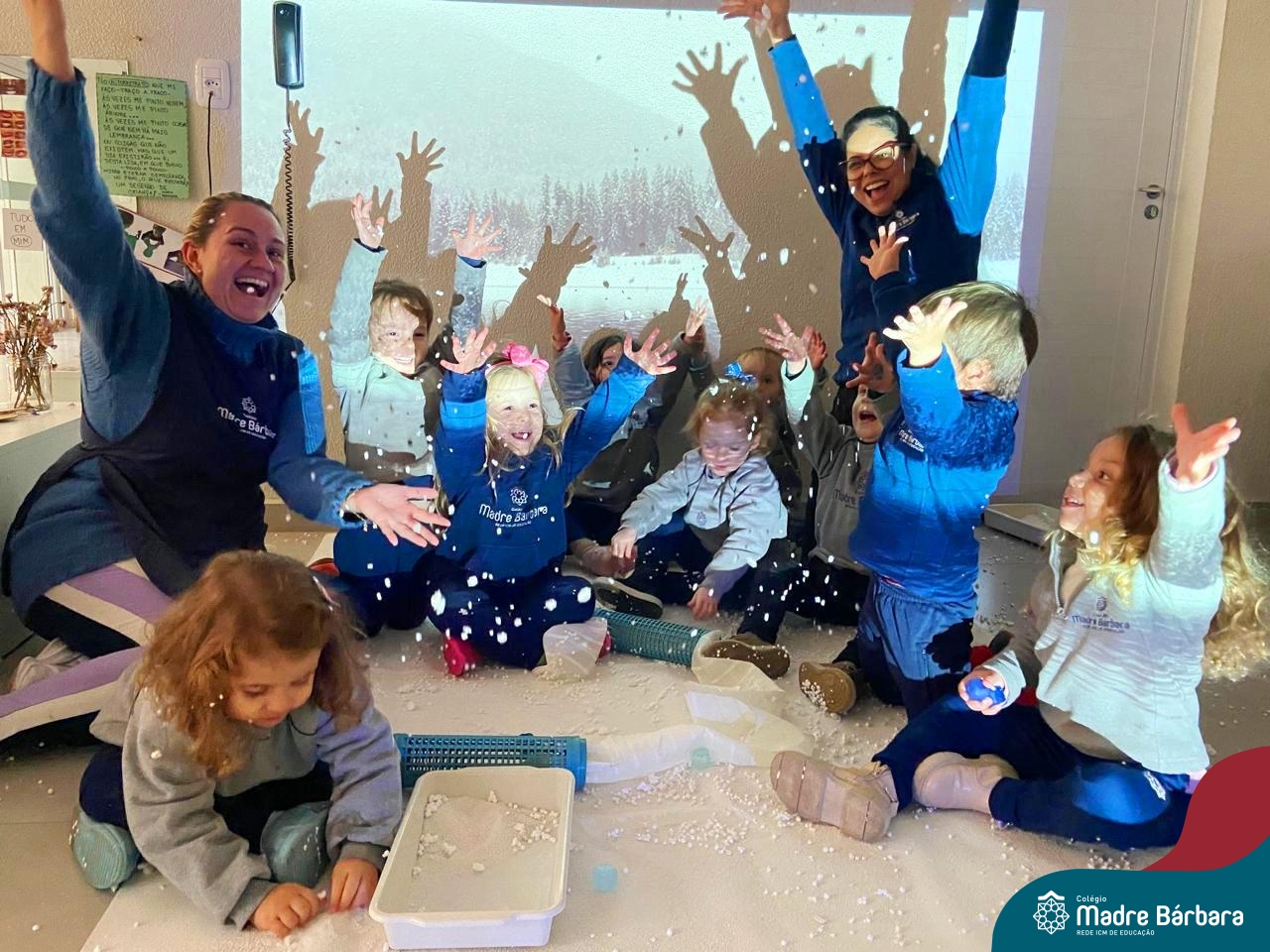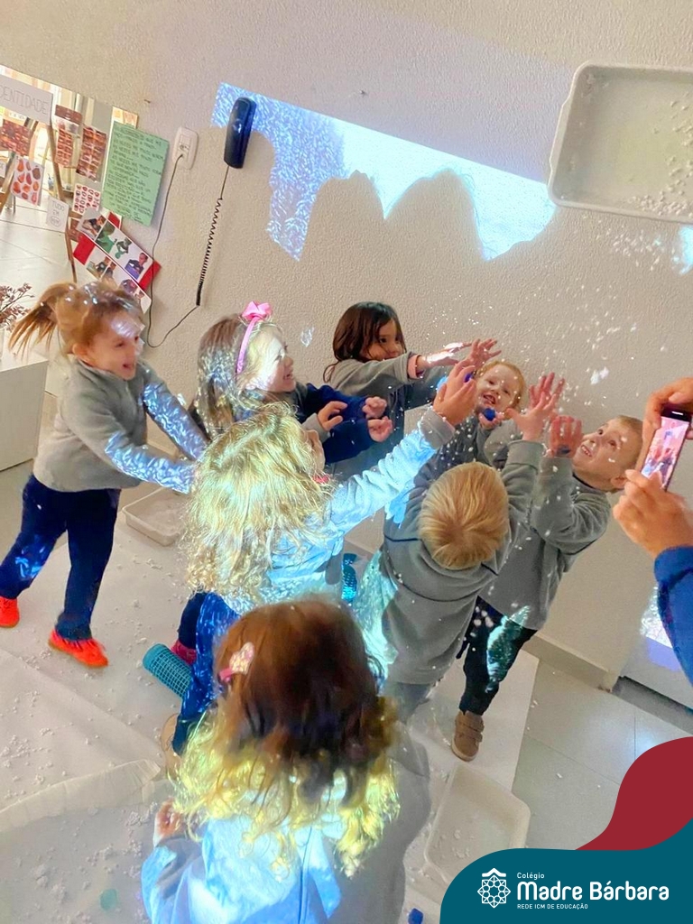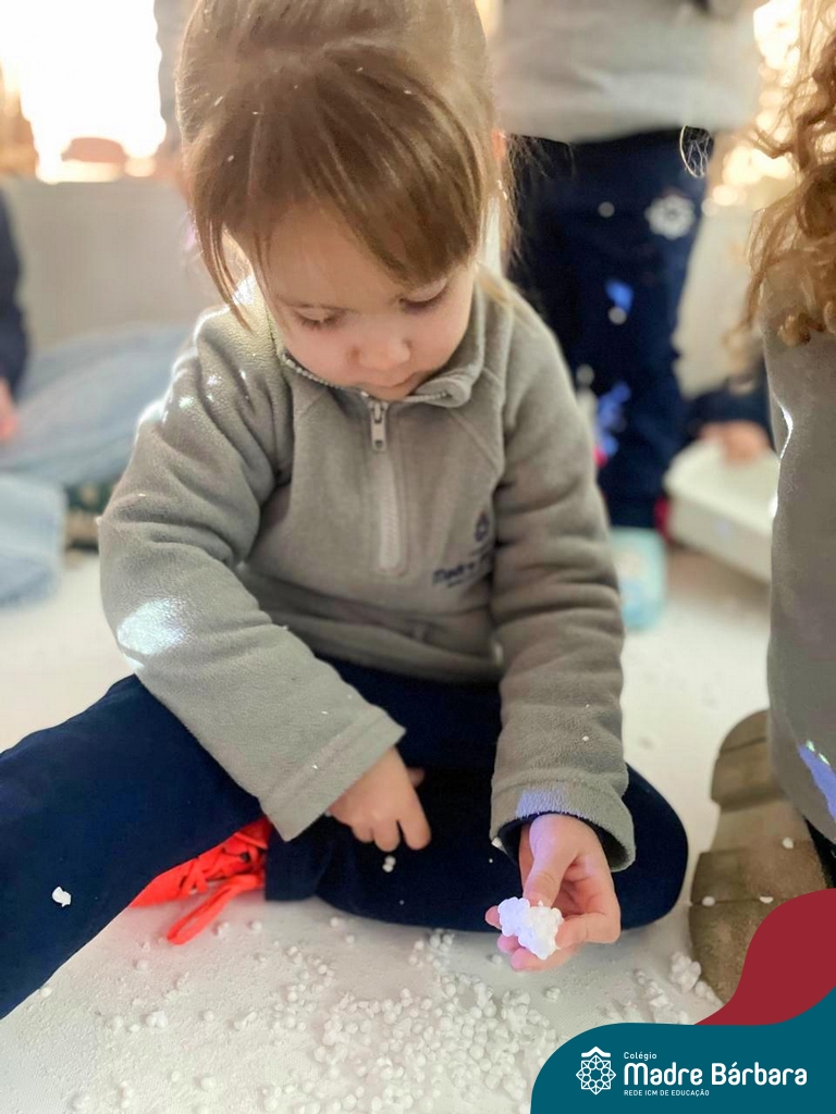 As professoras aproveitaram esse entusiasmo para investigar: como a neve é feita? Onde ela acontece? E, com muita curiosidade, descobrimos que aqui no Rio Grande do Sul, a nossa “neve” se chama… geada! 🧊❤ Aprender pode (e deve!) ser mágico!