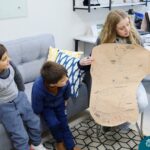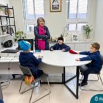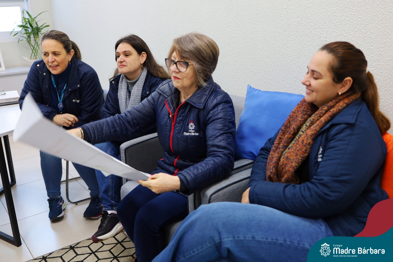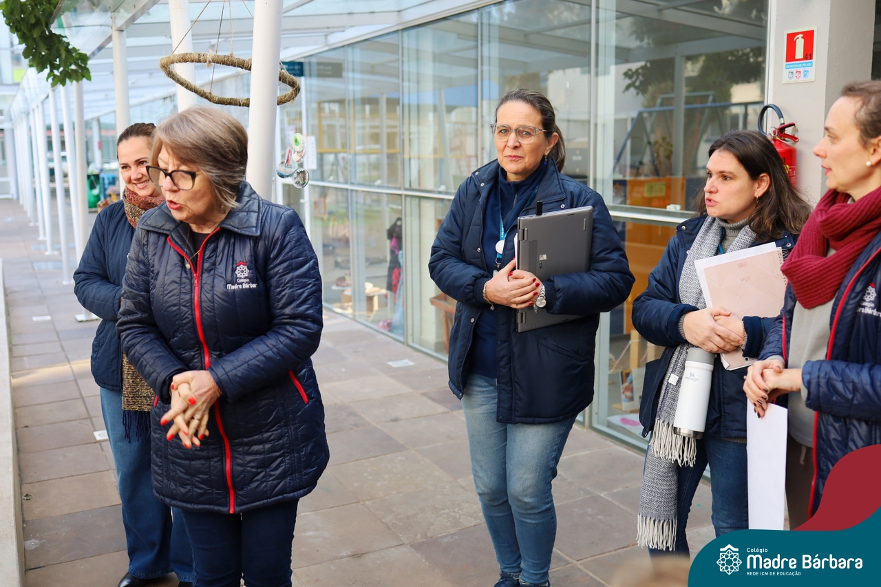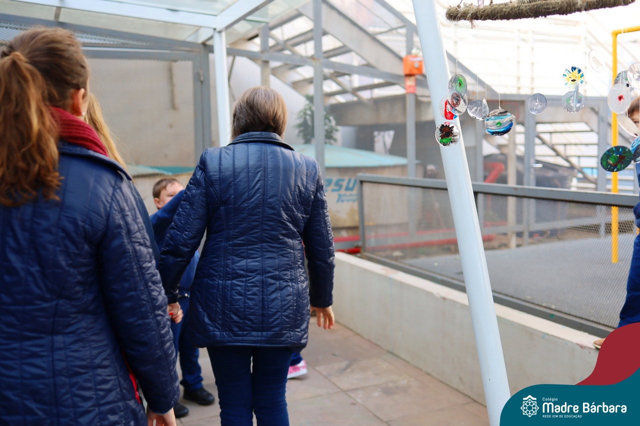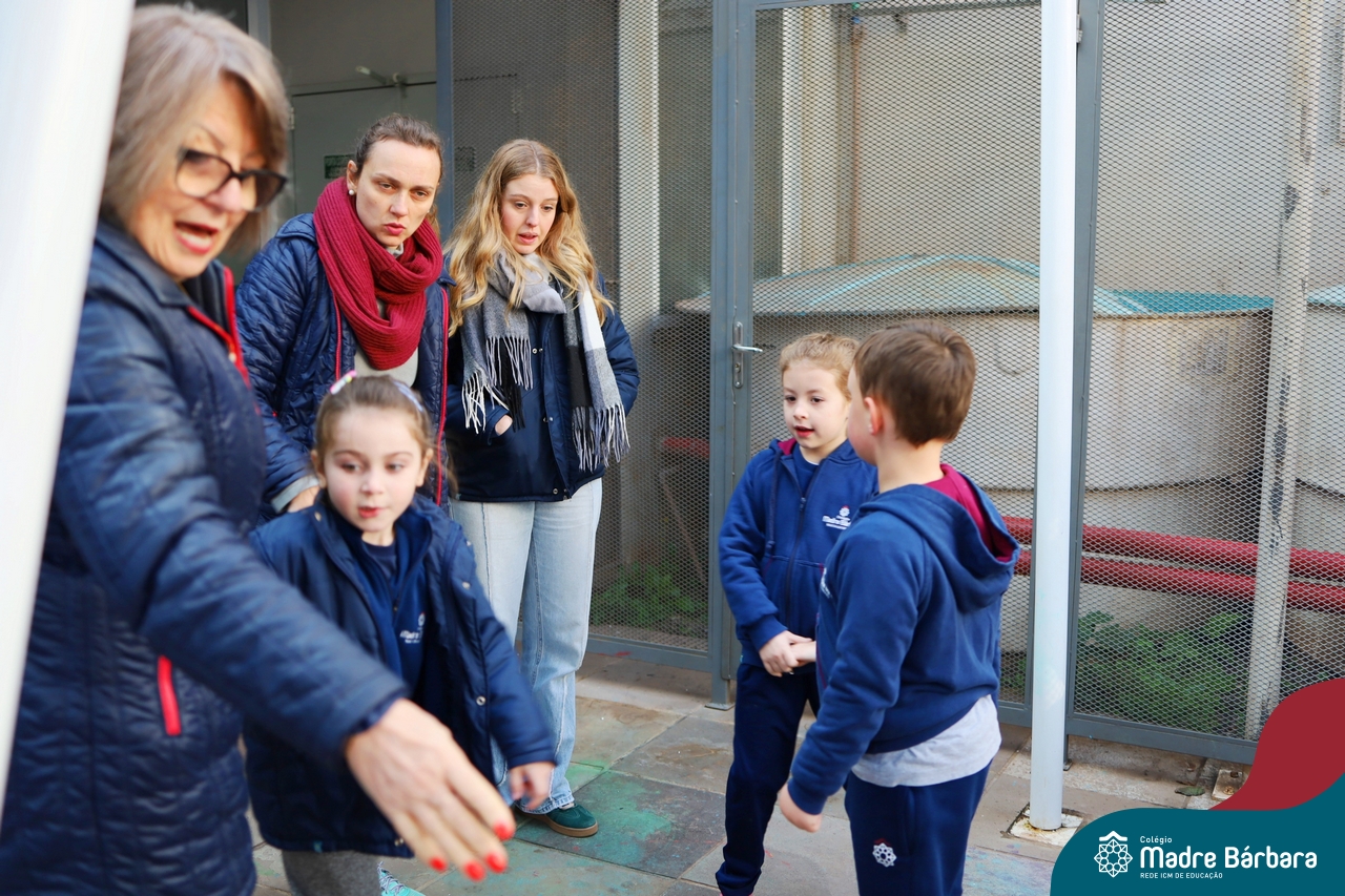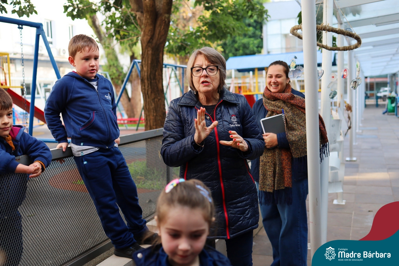 As crianças do 5B se reuniram com a diretora Maria Elena Jacques para apresentar o “Projeto Mãos à Obra: Cantinho Molhado” da Educação Infantil. Uma ideia cheia de pesquisa e propósito, pensada por elas no ateliê. Foi um momento de muitas trocas e escuta. Porque aqui no Madre a criança tem vez e voz!