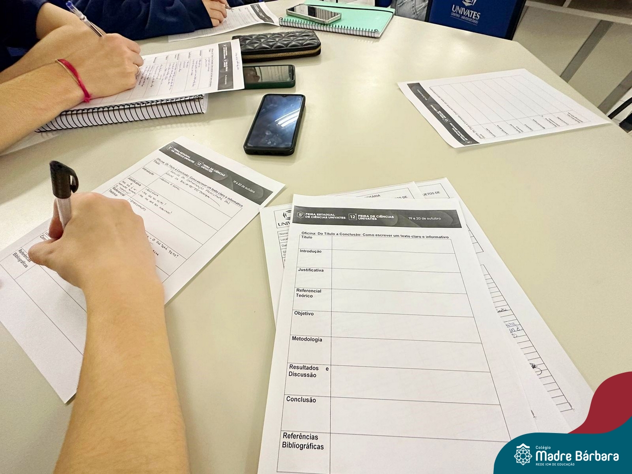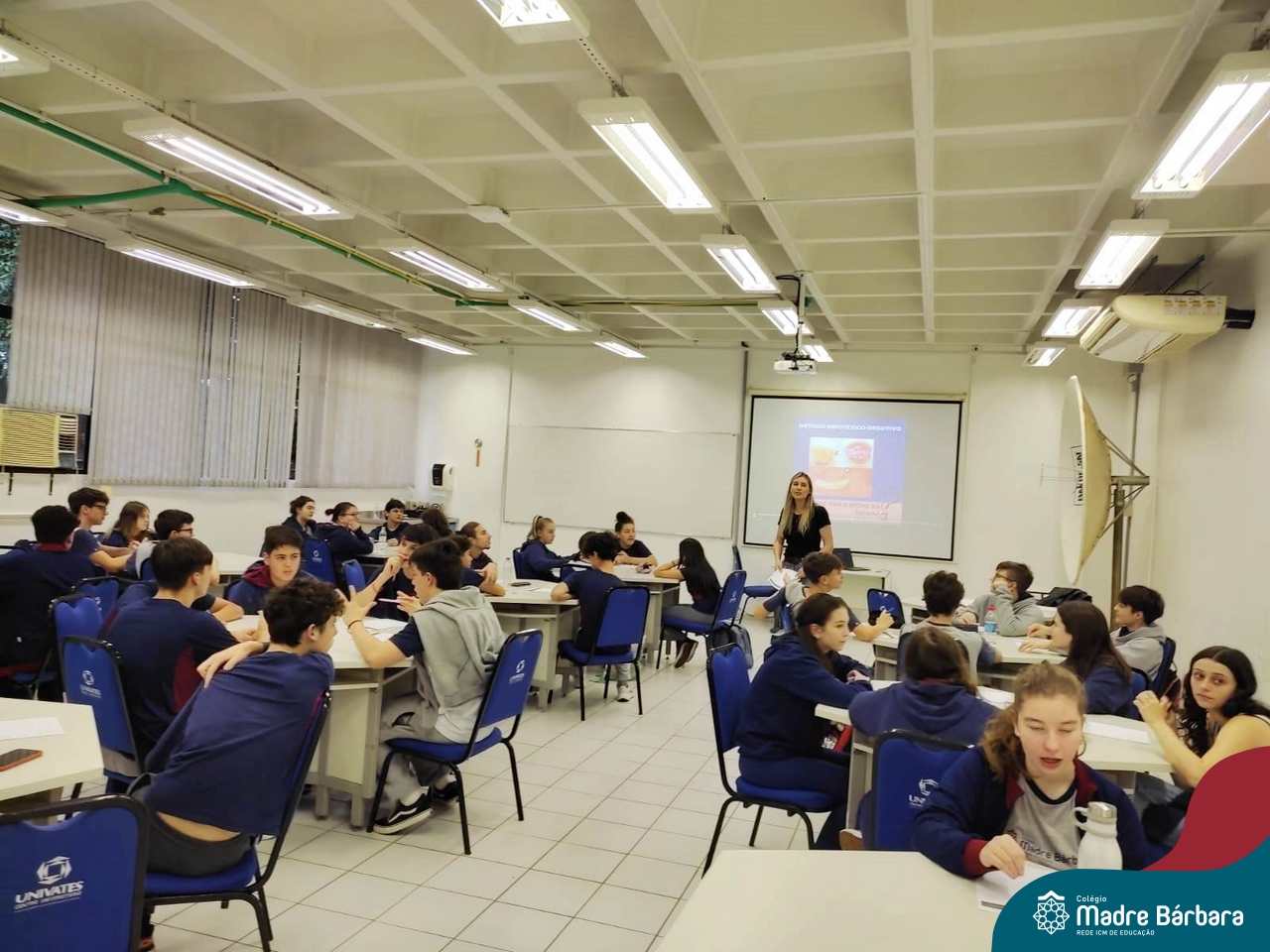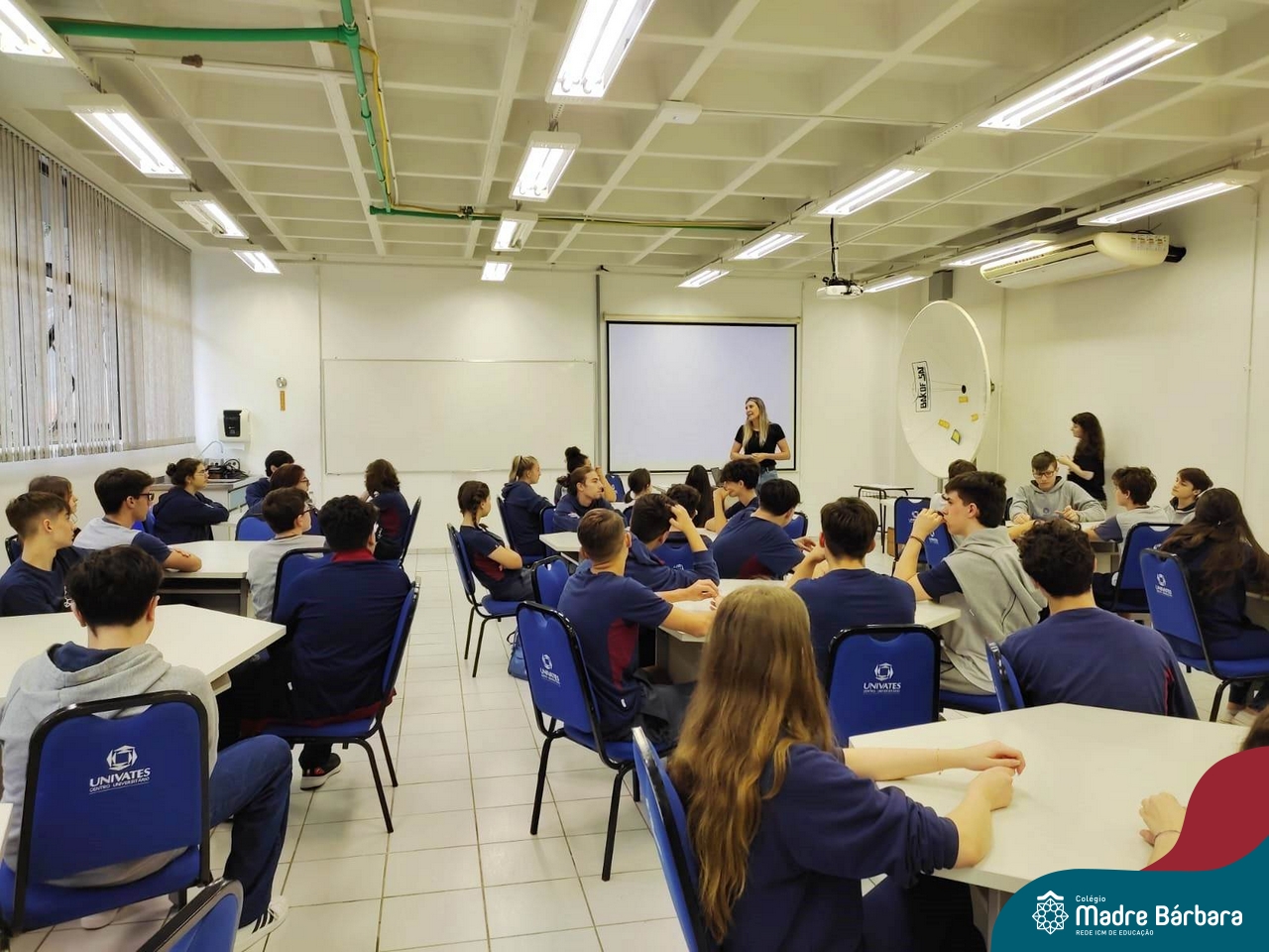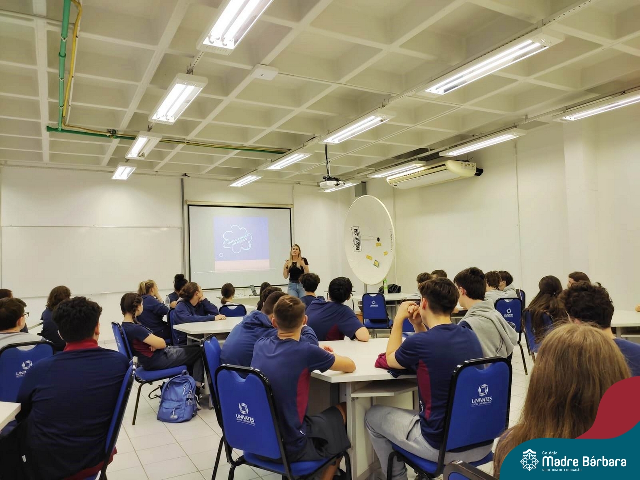 Os estudantes dos 1ºs e 3ºs anos do Ensino Médio participaram de uma oficina de escrita científica promovida pela Univates. A ação buscou aprimorar os conhecimentos dos estudantes sobre o método hipotético-dedutivo, bem como, empoderá-los das técnicas para escrita de textos científicos claros e informativos. Além de discutirem sobre o método científico, os estudantes aplicaram as técnicas, debatendo sobre o futuro da ciência e o impacto da comunicação científica para o bem estar da sociedade. A visita de estudos faz parte de um conjunto de ações desenvolvidas pela área da Ciência da Natureza do Colégio Madre Bárbara – Rede ICM e foi coordenada pelos professores Ângela Lenz e Aliar Jung.