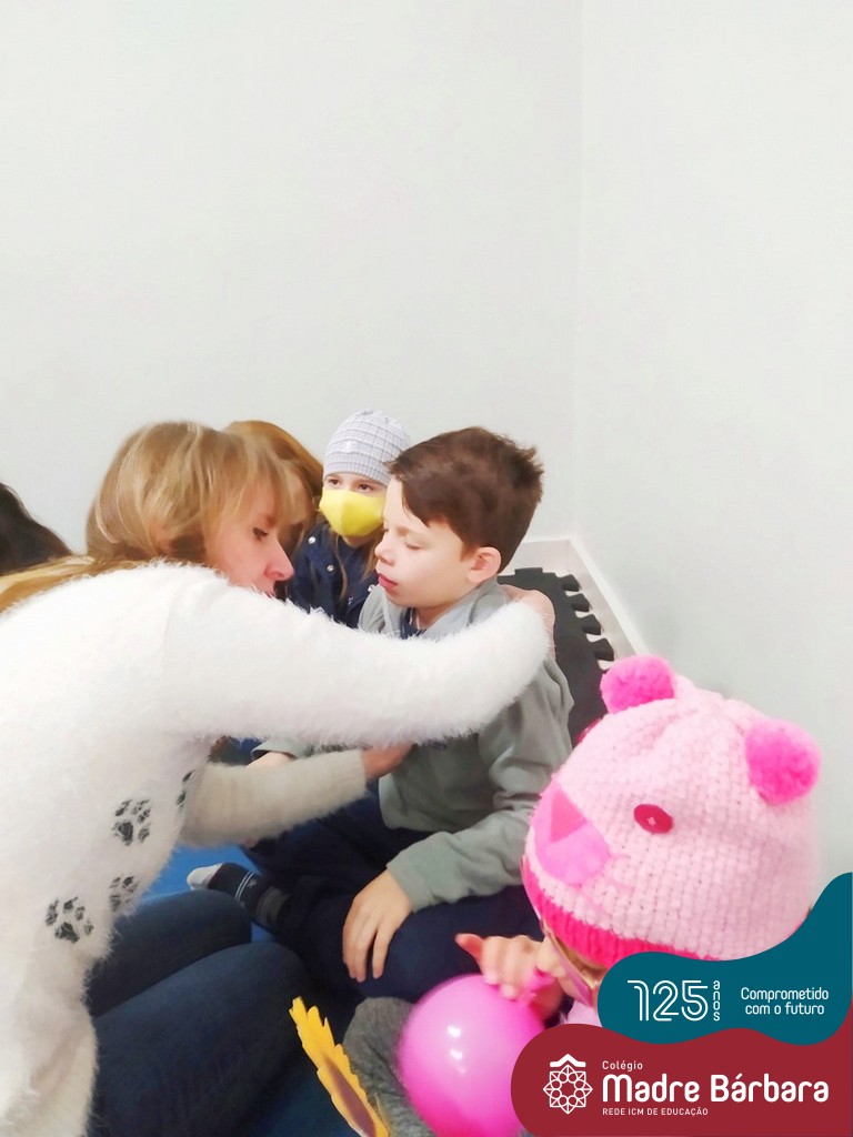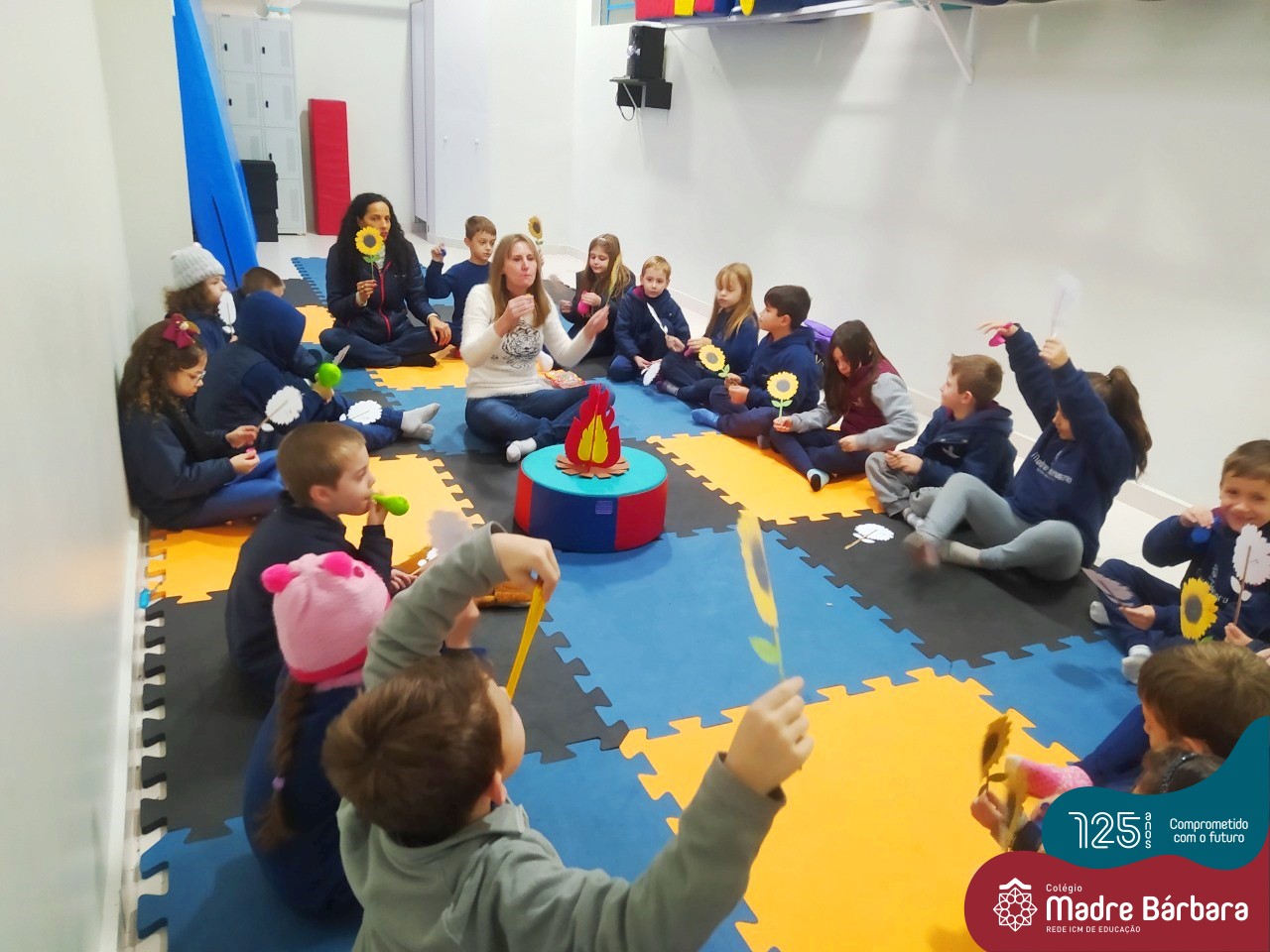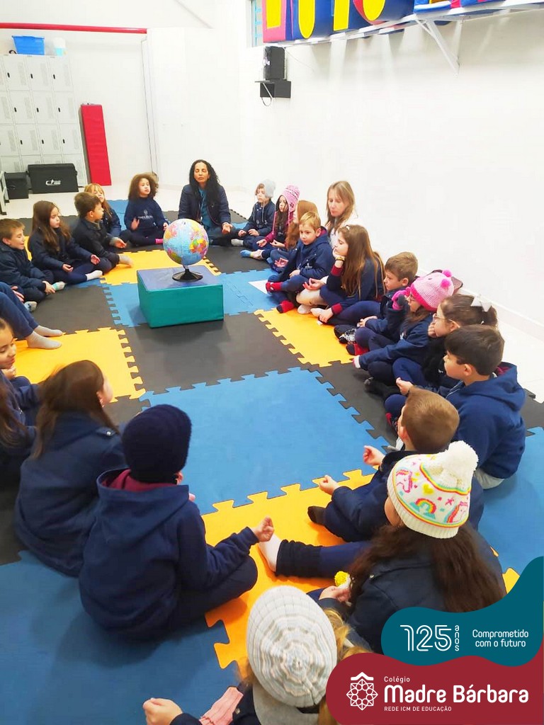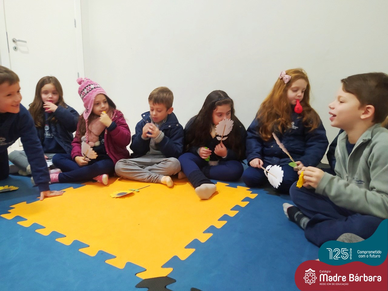 As crianças da turma 11 estão experienciando vivências de meditação com a terapeuta Cristina Scheibel. A Cris como é chamada pelas crianças é mãe do colega Iuri, e está oportunizando a meditação como prática para o contato com o equilíbrio interno desde pequenos. No primeiro encontro, as crianças experienciaram práticas de respiração e de emanar bons sentimentos através das cores para o Planeta Terra.