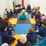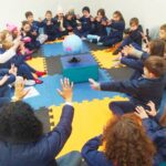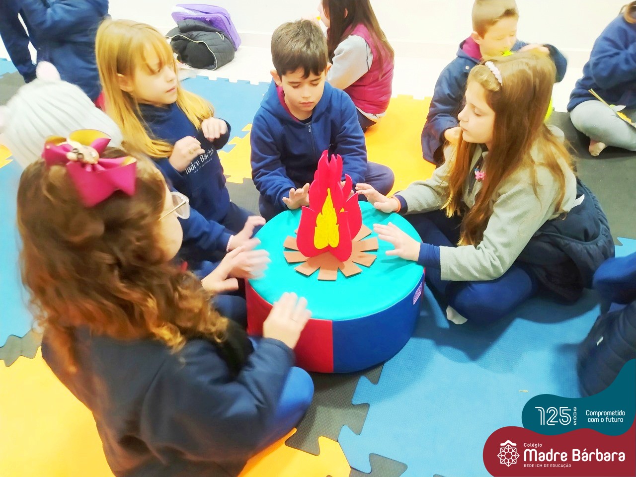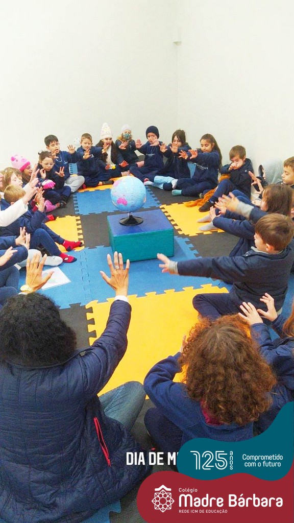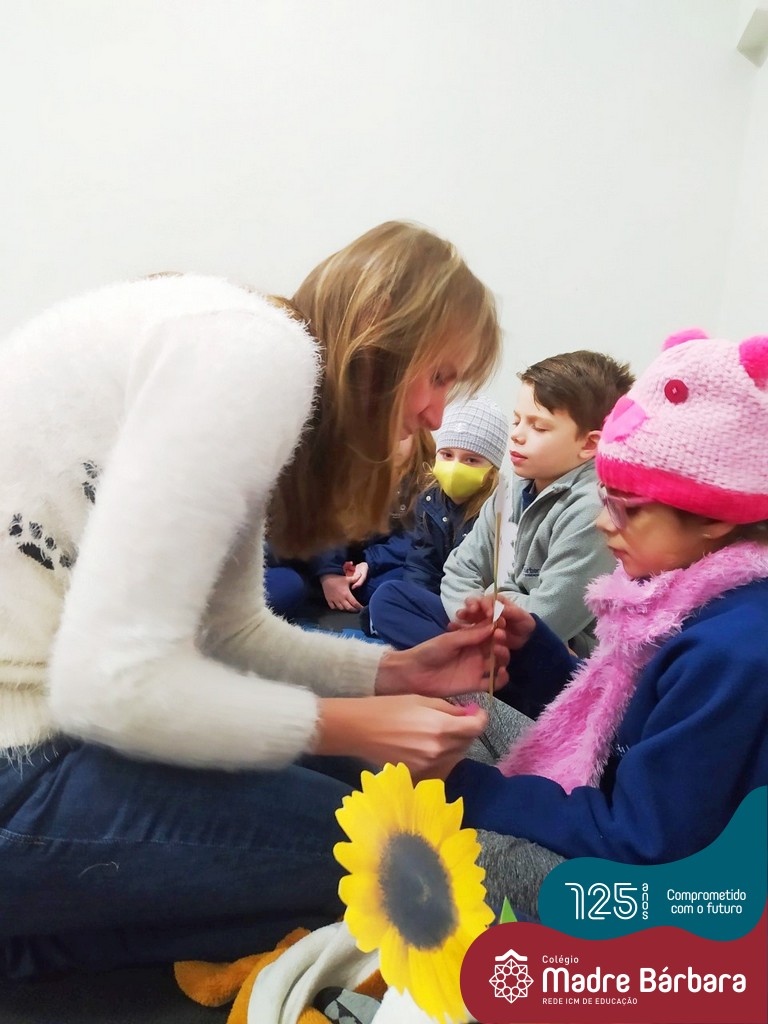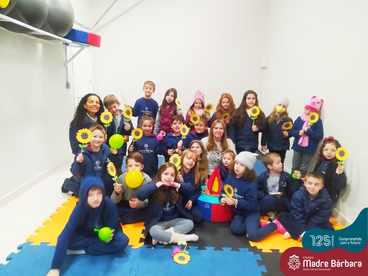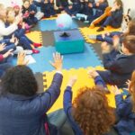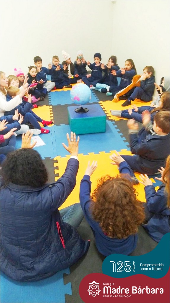As crianças da turma 11 estão experienciando vivências de meditação com a terapeuta Cristina Scheibel. A Cris como é chamada pelas crianças é mãe do colega Iuri, e está oportunizando a meditação como prática para o contato com o equilíbrio interno desde pequenos. No primeiro encontro, as crianças experienciaram práticas de respiração e de emanar bons sentimentos através das cores para o Planeta Terra.
