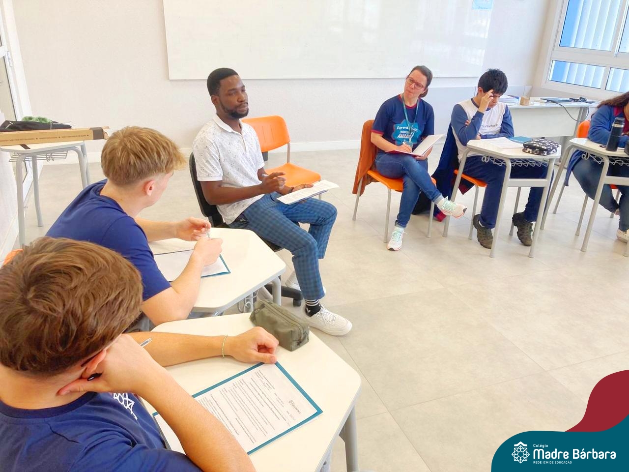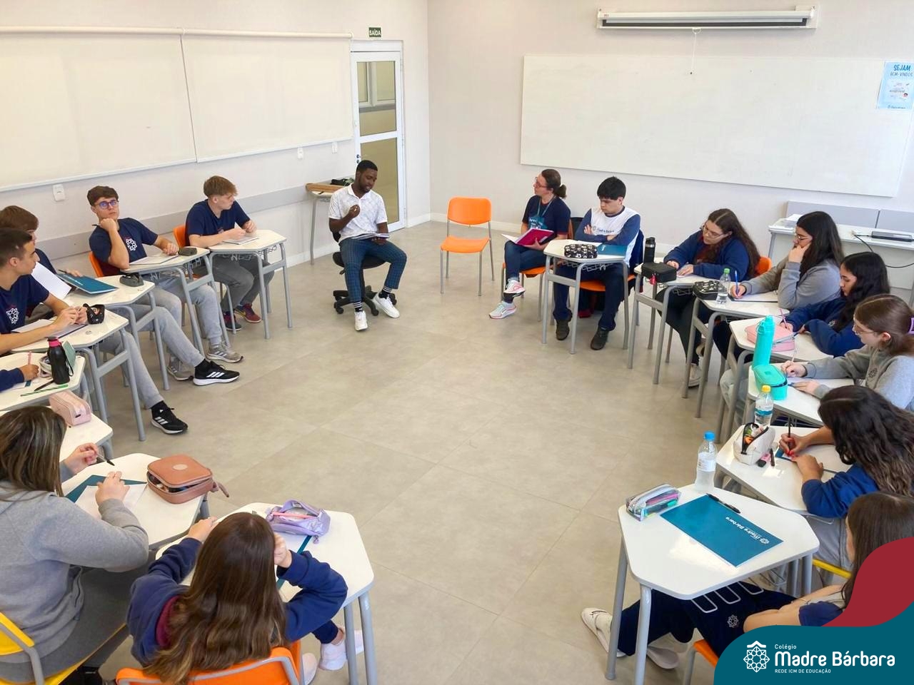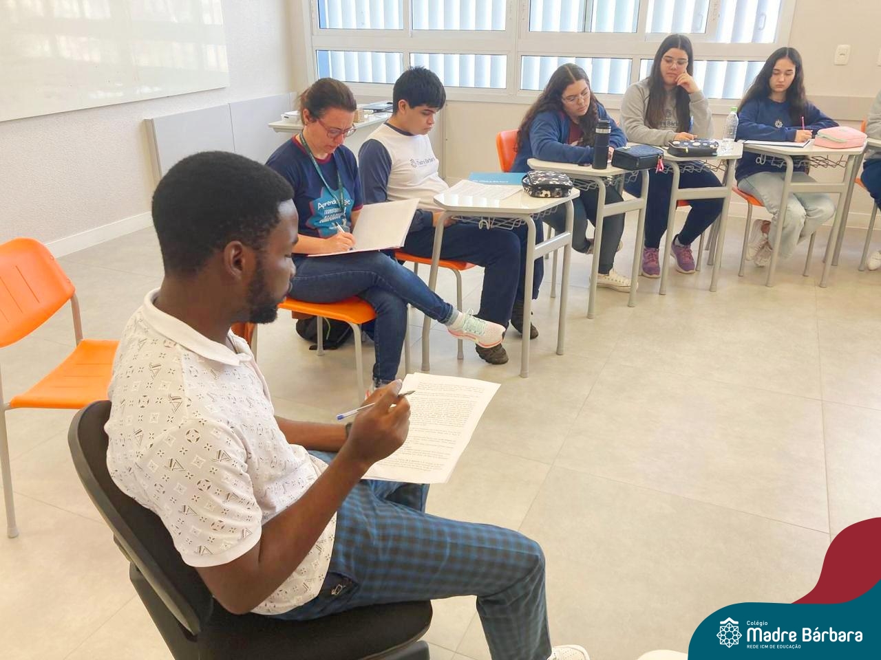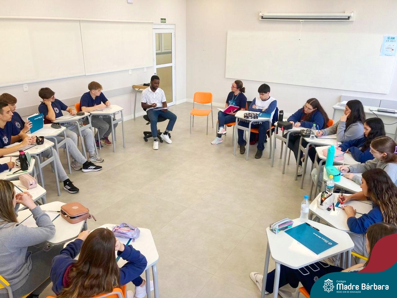 Proposta no Itinerário Direitos Humanos e Ética, a roda de conversa com o intercambista moçambicano Custódio Daniel teve por objetivo provocar a reflexão crítica dos estudantes da 2ª série do Ensino Médio sobre a realidade dos direitos humanos em contextos internacionais e compreender os desafios atuais da governança global da imigração. A atividade foi proposta e mediada pela professora Juciane Beatriz Sehn e pelo monitor Uarlley Santana Santos. A roda de conversa foi uma rica oportunidade de aprendizagem interdisciplinar, a partir do olhar de dentro, sob uma perspectiva da experiência de pessoa deslocada, de conhecimentos ancestrais compartilhados e de um olhar crítico sobre a realidade interna, levando em consideração as interferências externas.