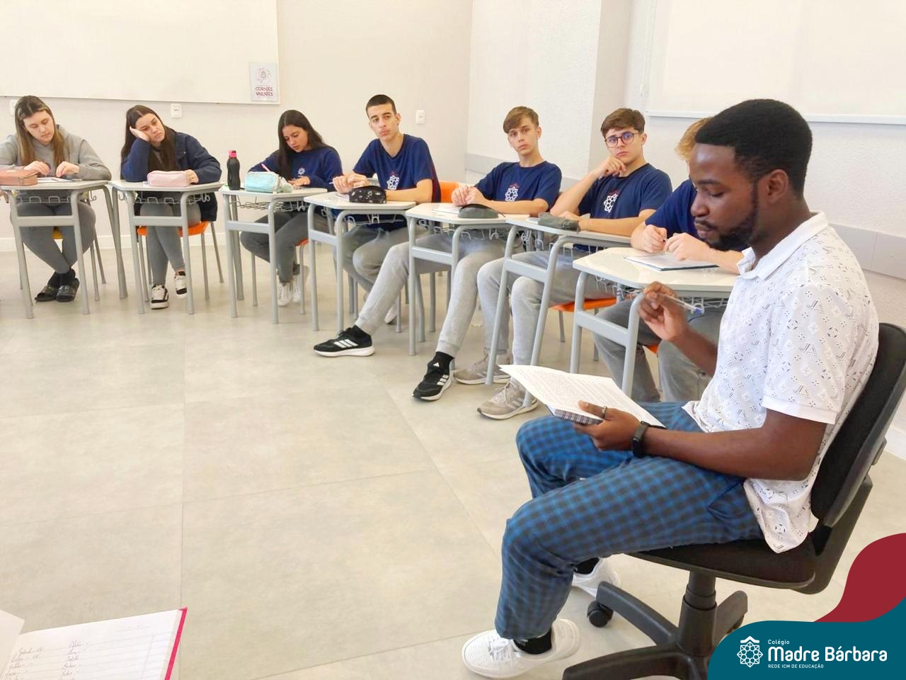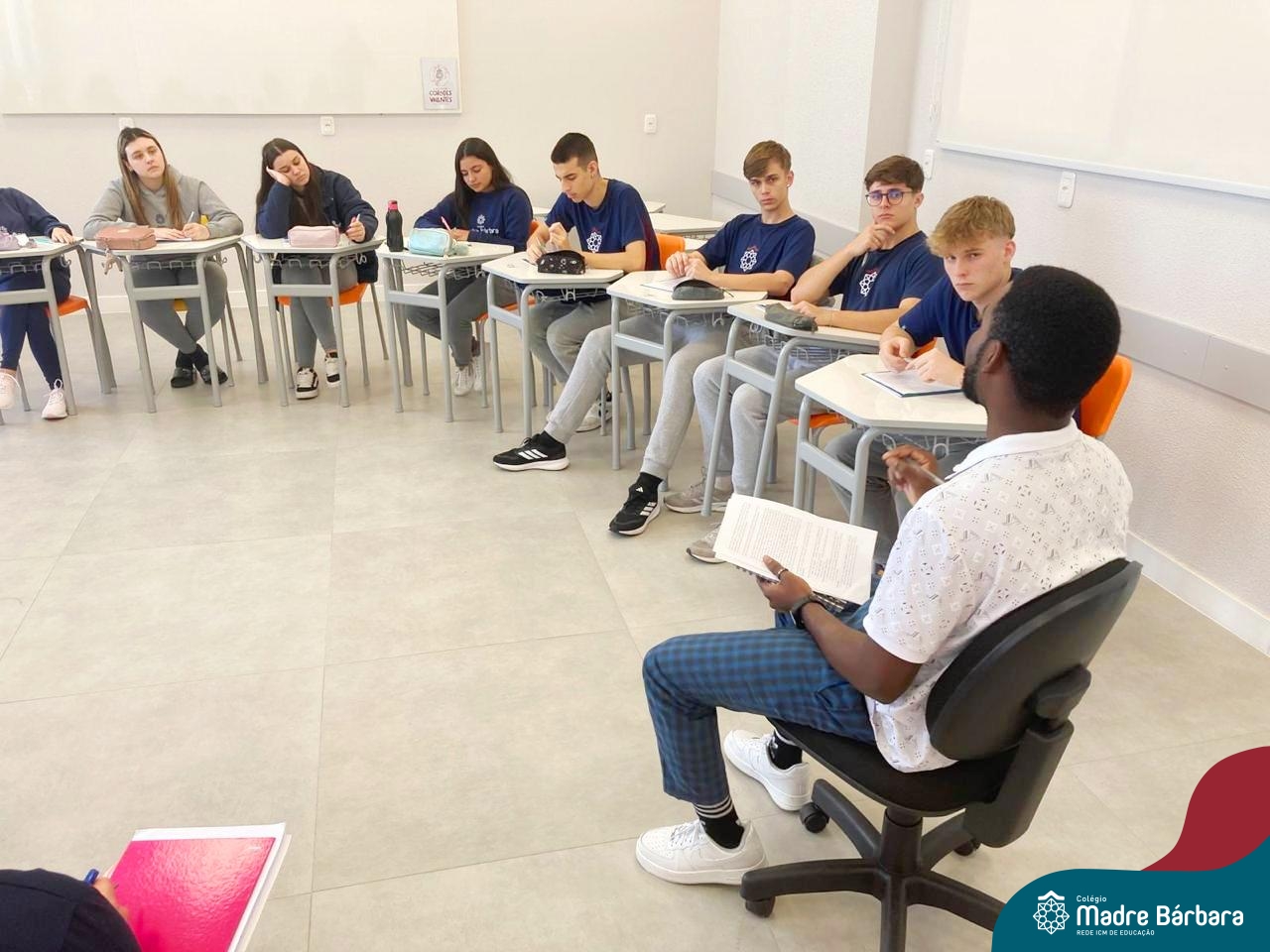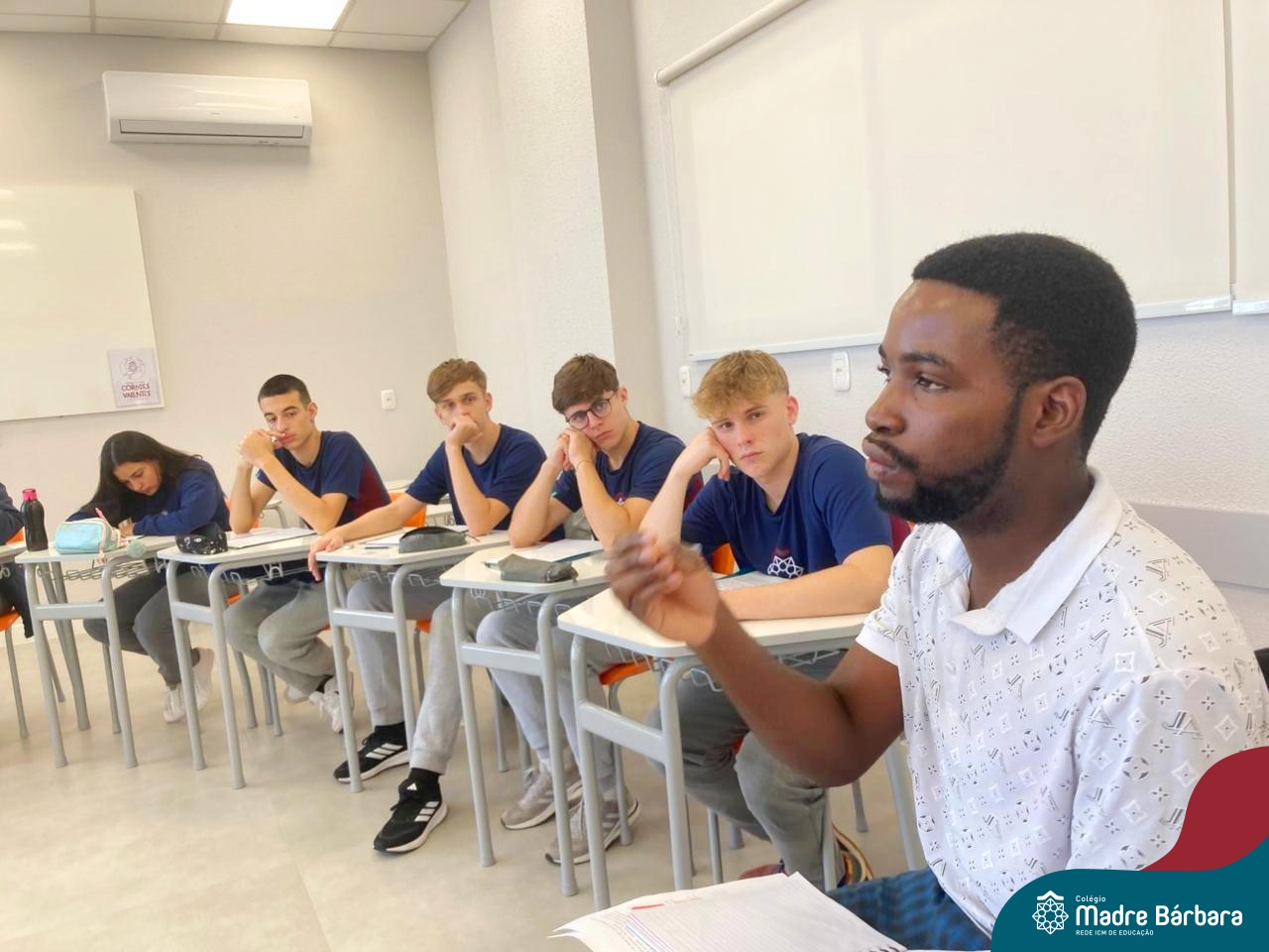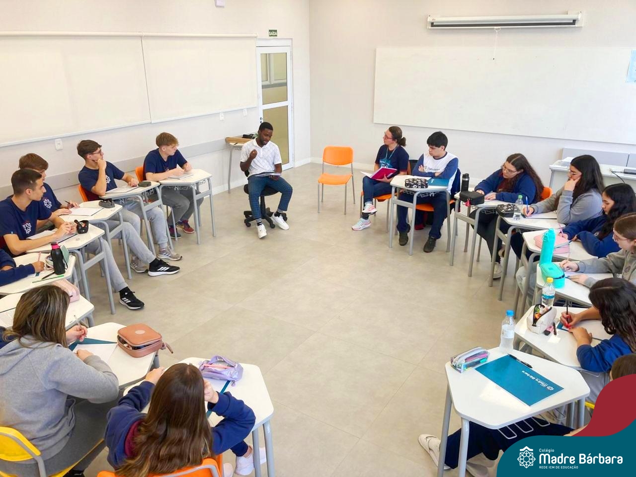 Proposta no Itinerário Direitos Humanos e Ética, a roda de conversa com o intercambista moçambicano Custódio Daniel teve por objetivo provocar a reflexão crítica dos estudantes da 2ª série do Ensino Médio sobre a realidade dos direitos humanos em contextos internacionais e compreender os desafios atuais da governança global da imigração. A atividade foi proposta e mediada pela professora Juciane Beatriz Sehn e pelo monitor Uarlley Santana Santos. A roda de conversa foi uma rica oportunidade de aprendizagem interdisciplinar, a partir do olhar de dentro, sob uma perspectiva da experiência de pessoa deslocada, de conhecimentos ancestrais compartilhados e de um olhar crítico sobre a realidade interna, levando em consideração as interferências externas.